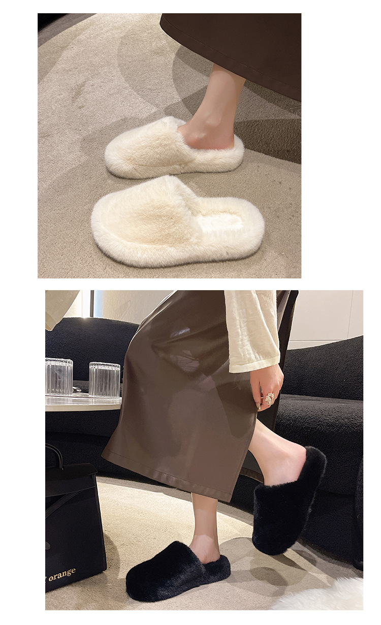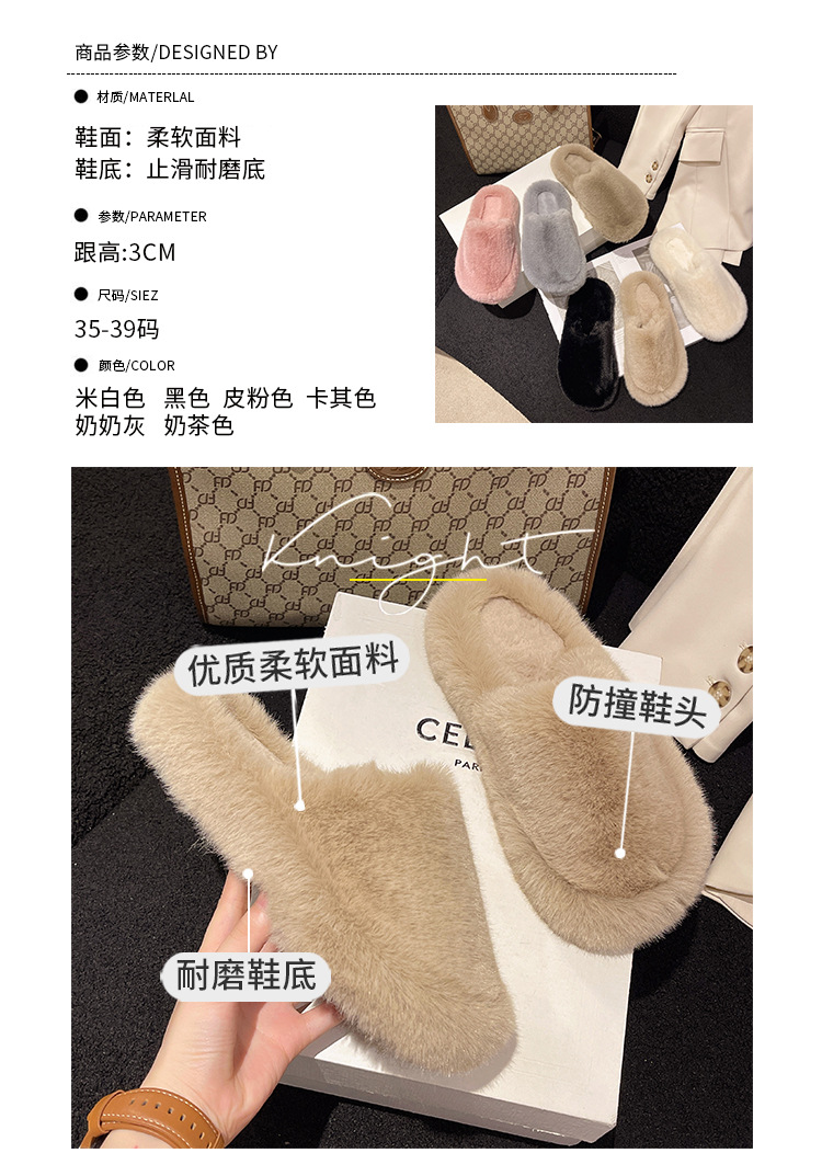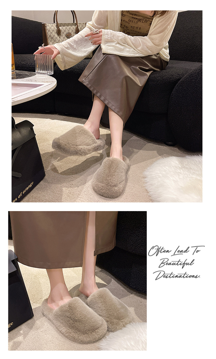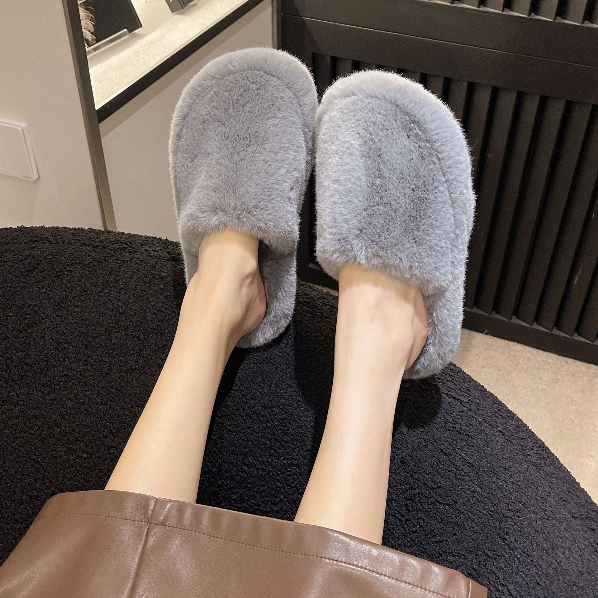 2023秋冬新款舒适软底内里加绒居家外穿保暖时尚百搭毛毛拖鞋批发