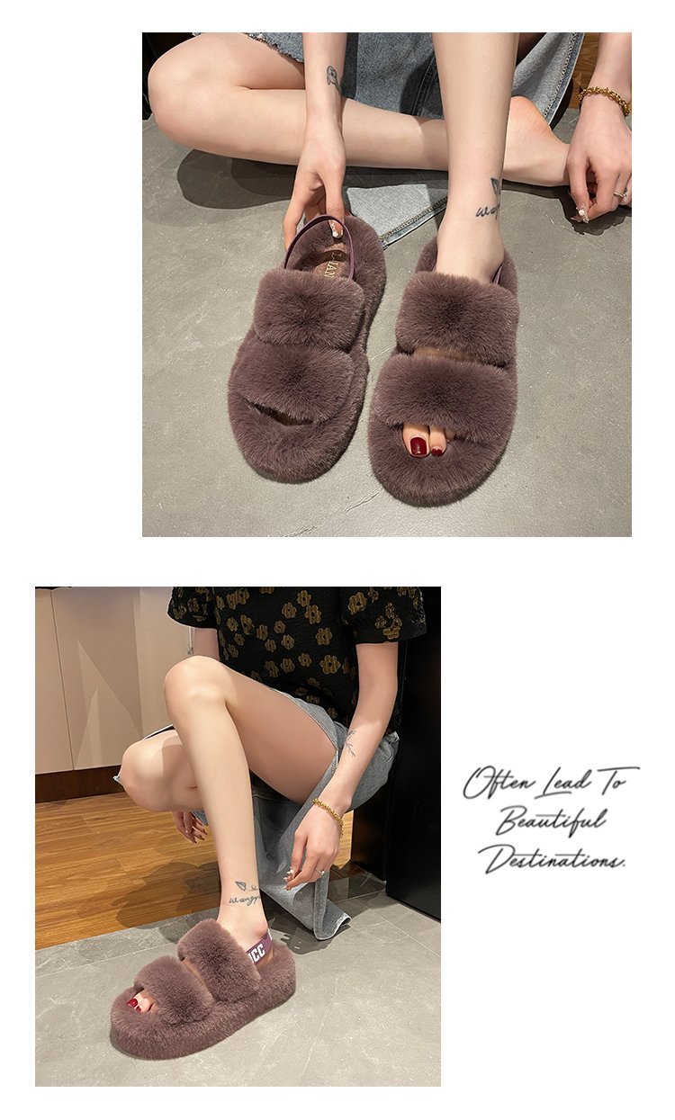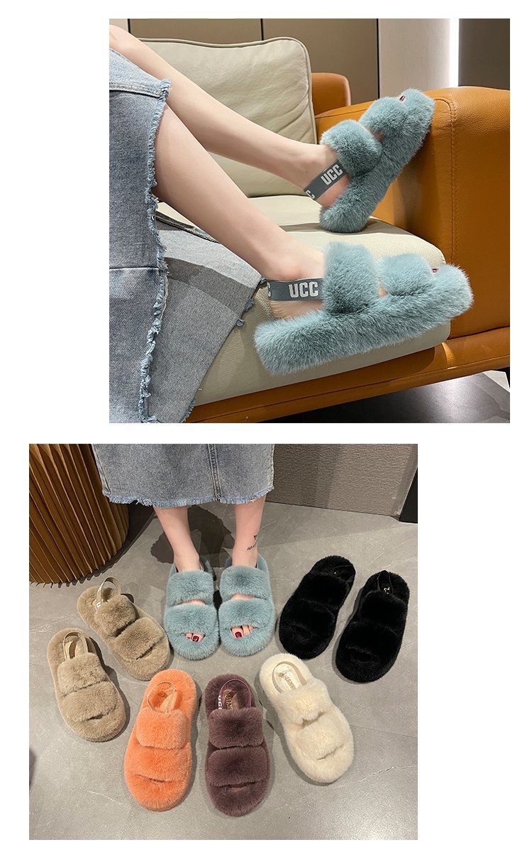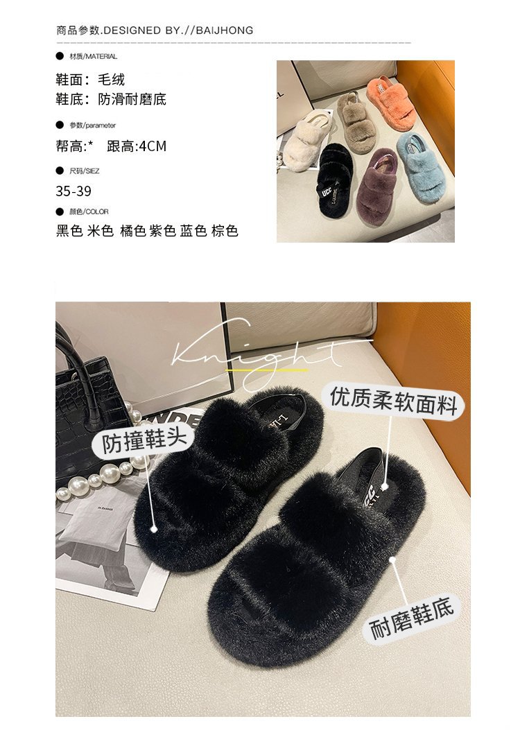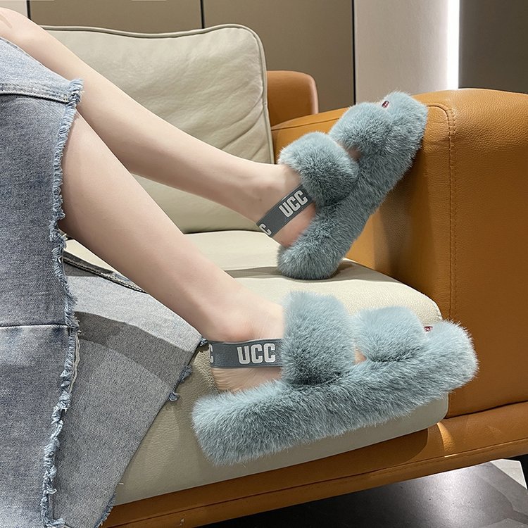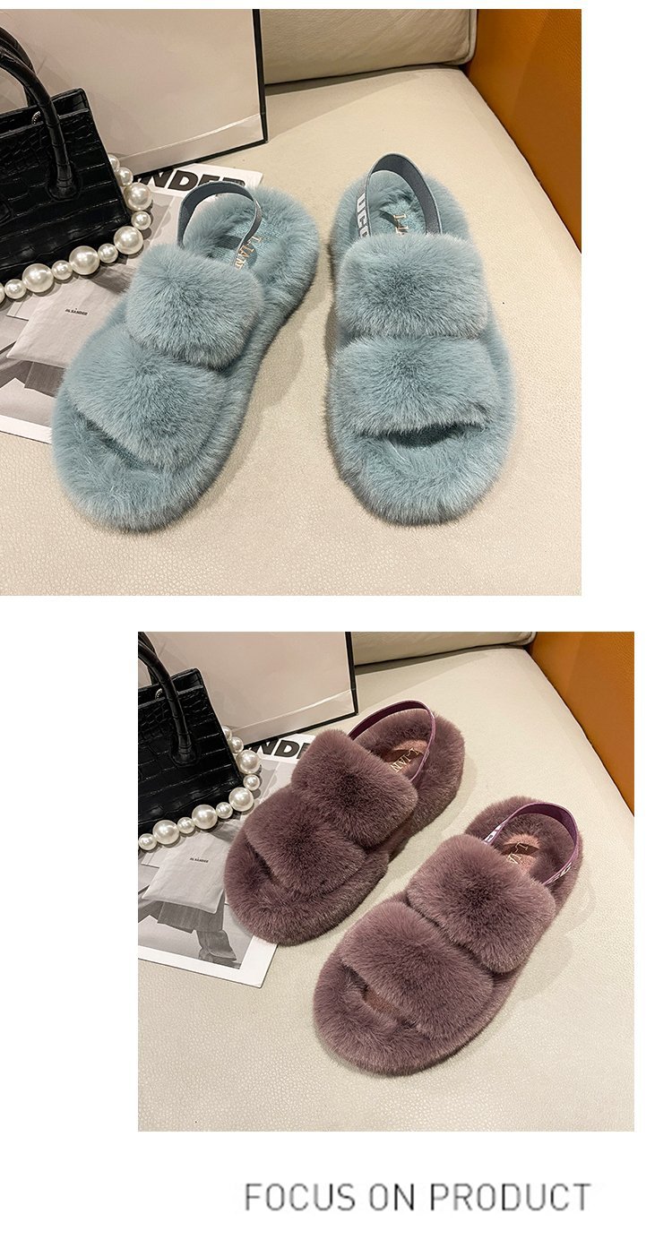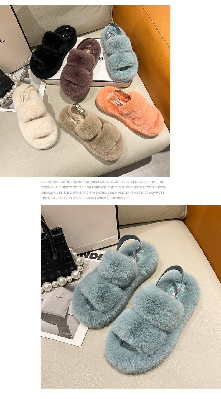 外贸新款毛毛拖鞋欧美大码女鞋跨境货源后绑带外穿居家厂家批发