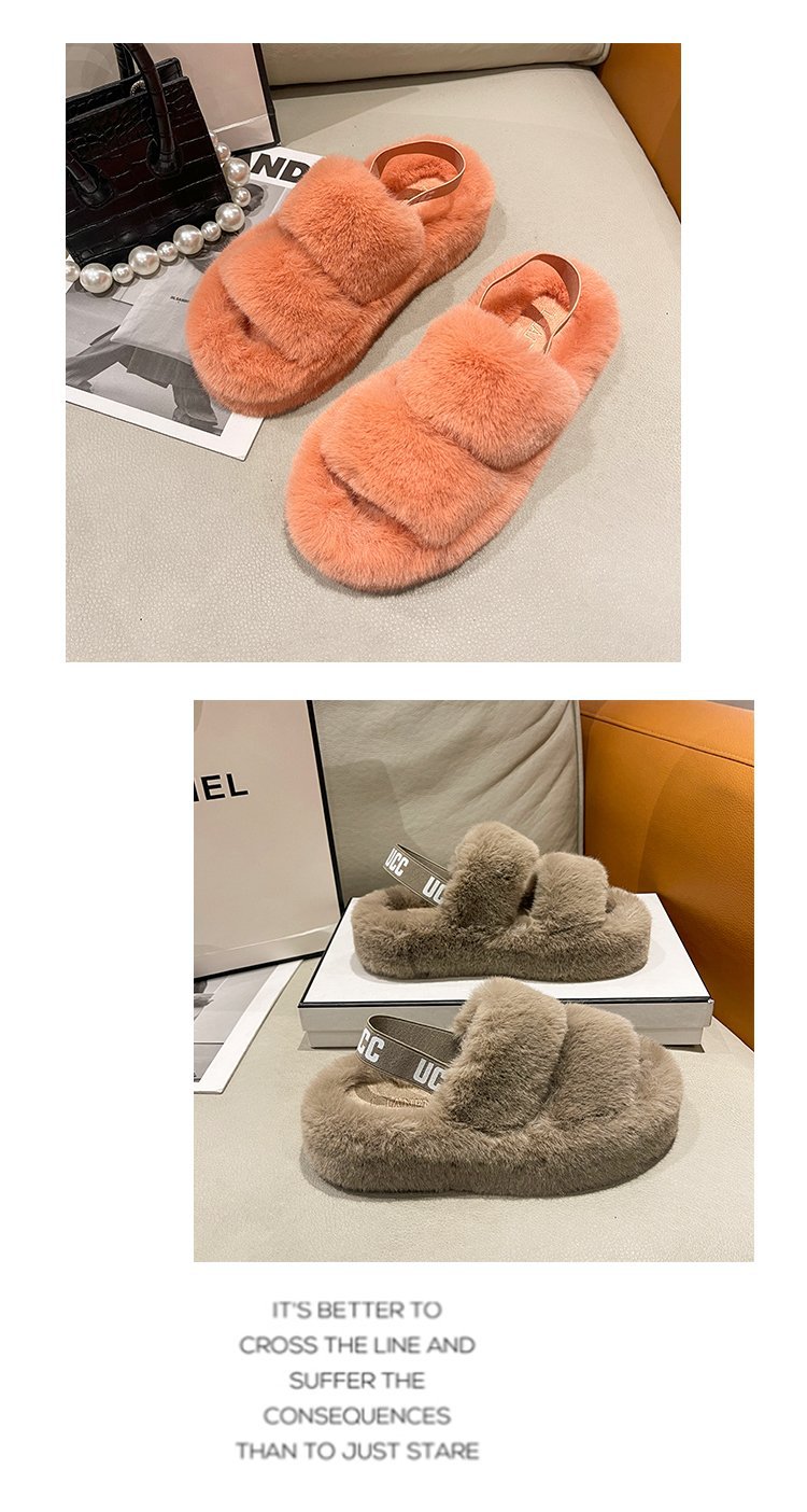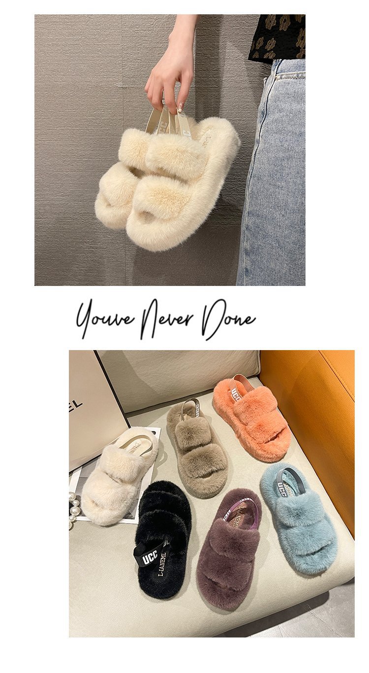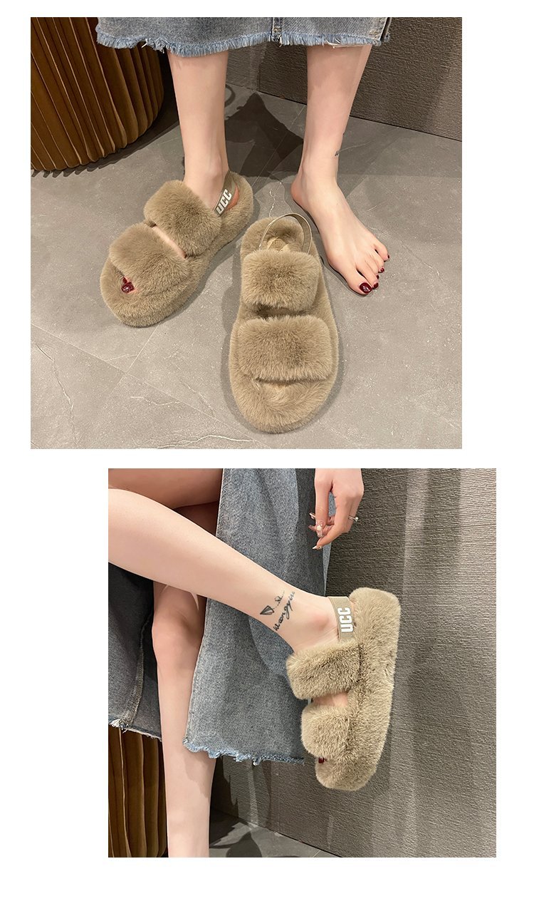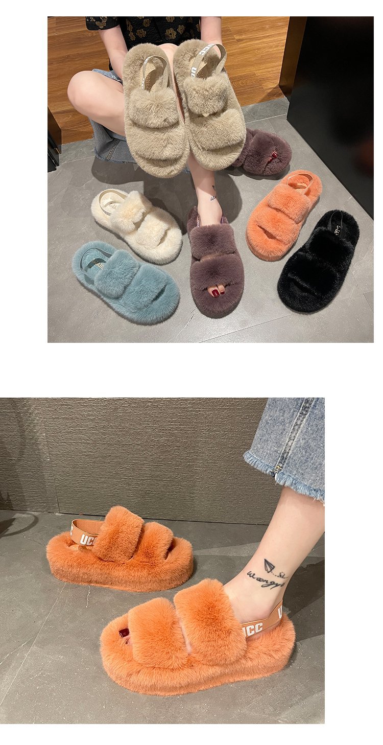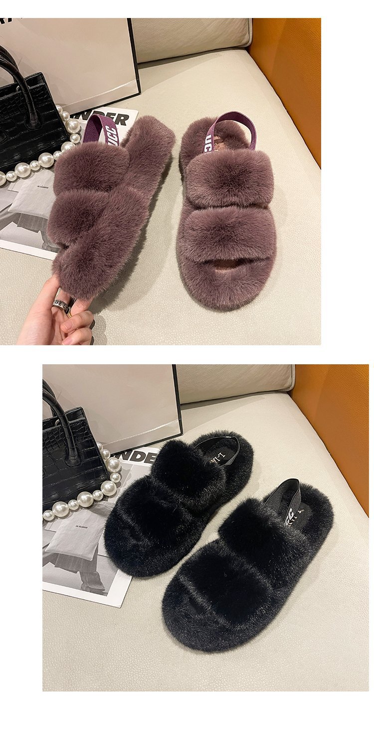 外贸新款毛毛拖鞋欧美大码女鞋跨境货源后绑带外穿居家厂家批发