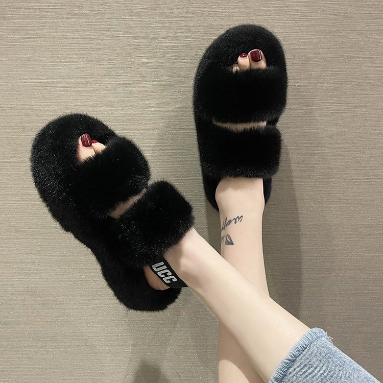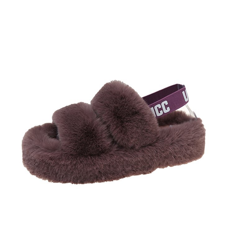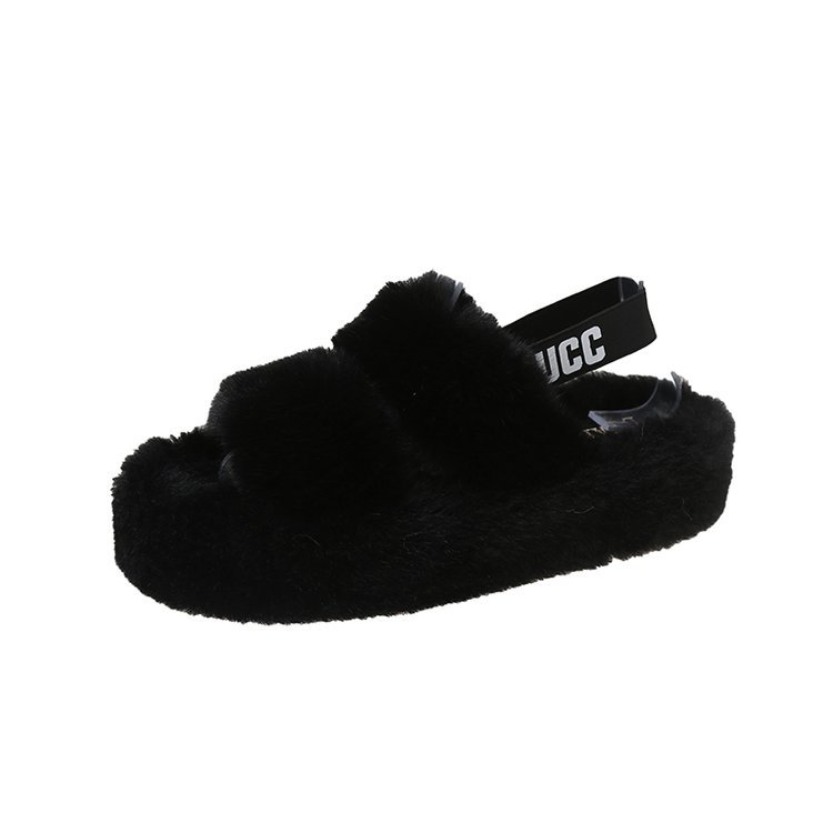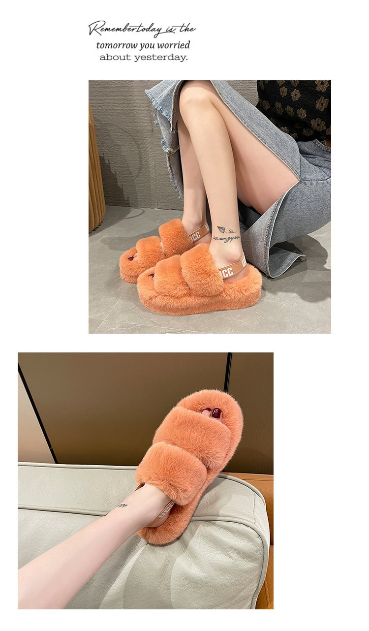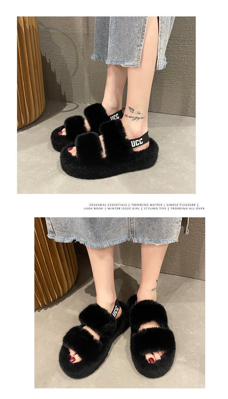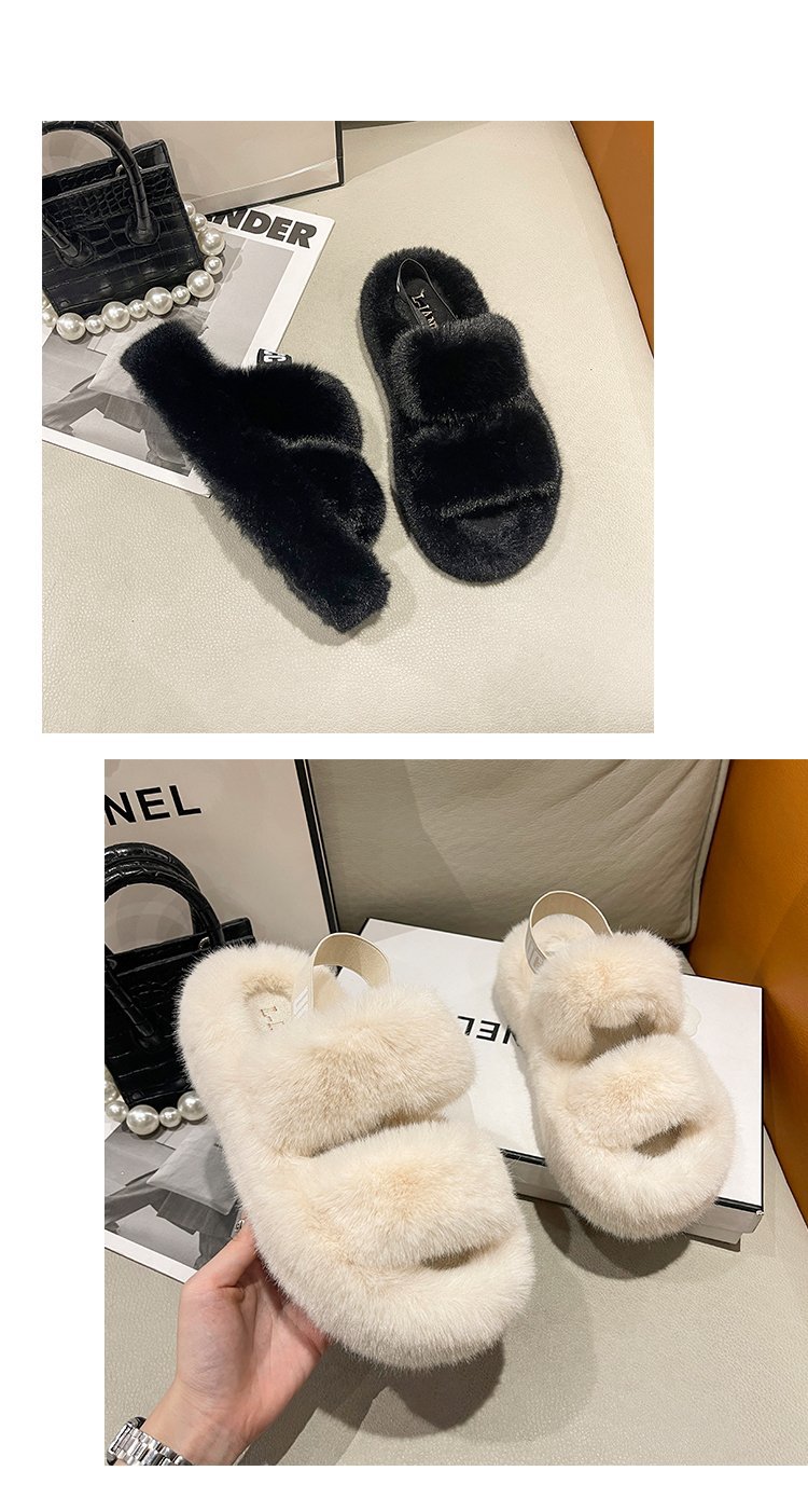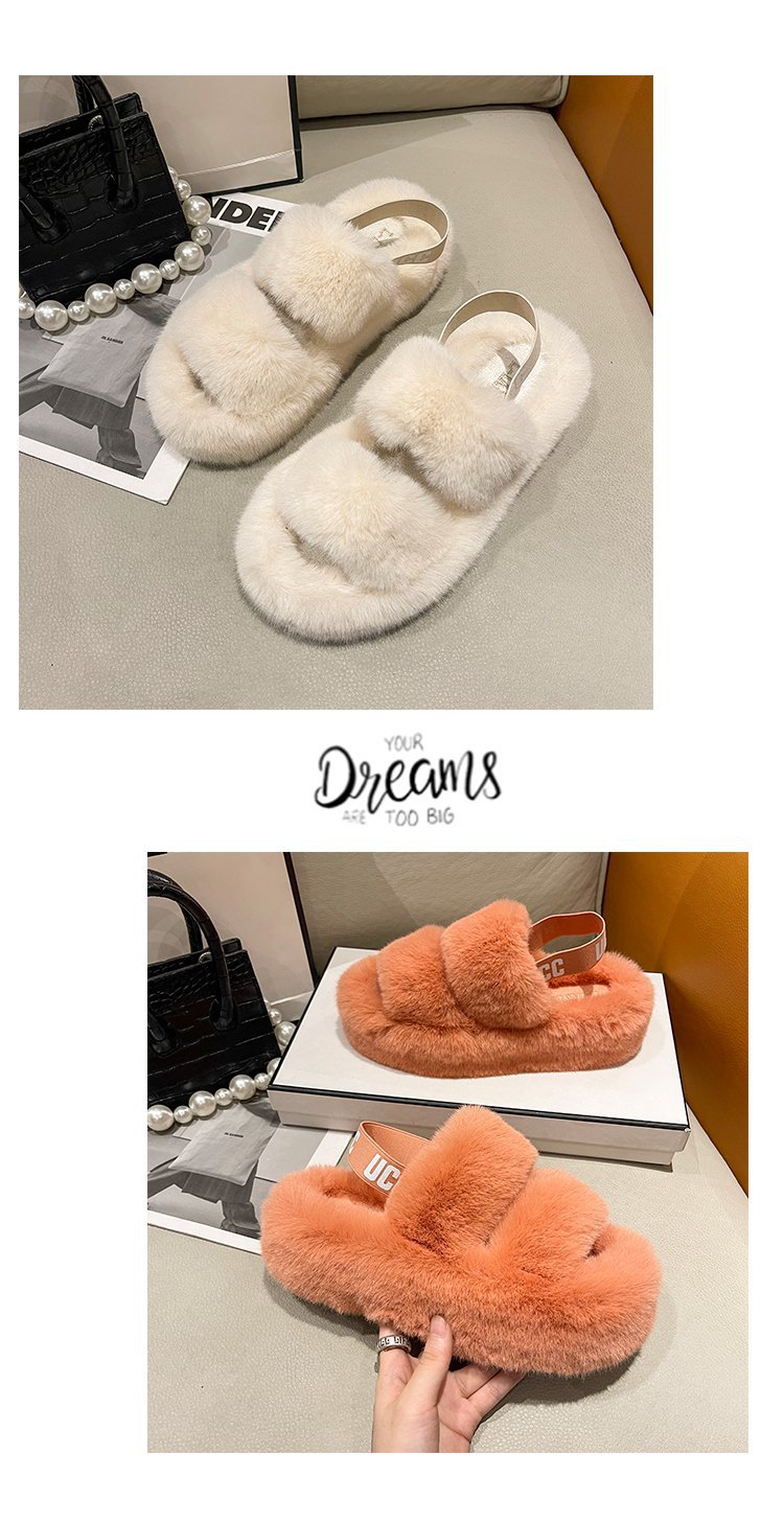外贸新款毛毛拖鞋欧美大码女鞋跨境货源后绑带外穿居家厂家批发
