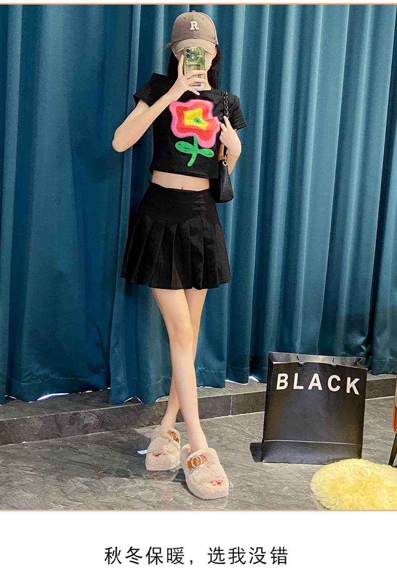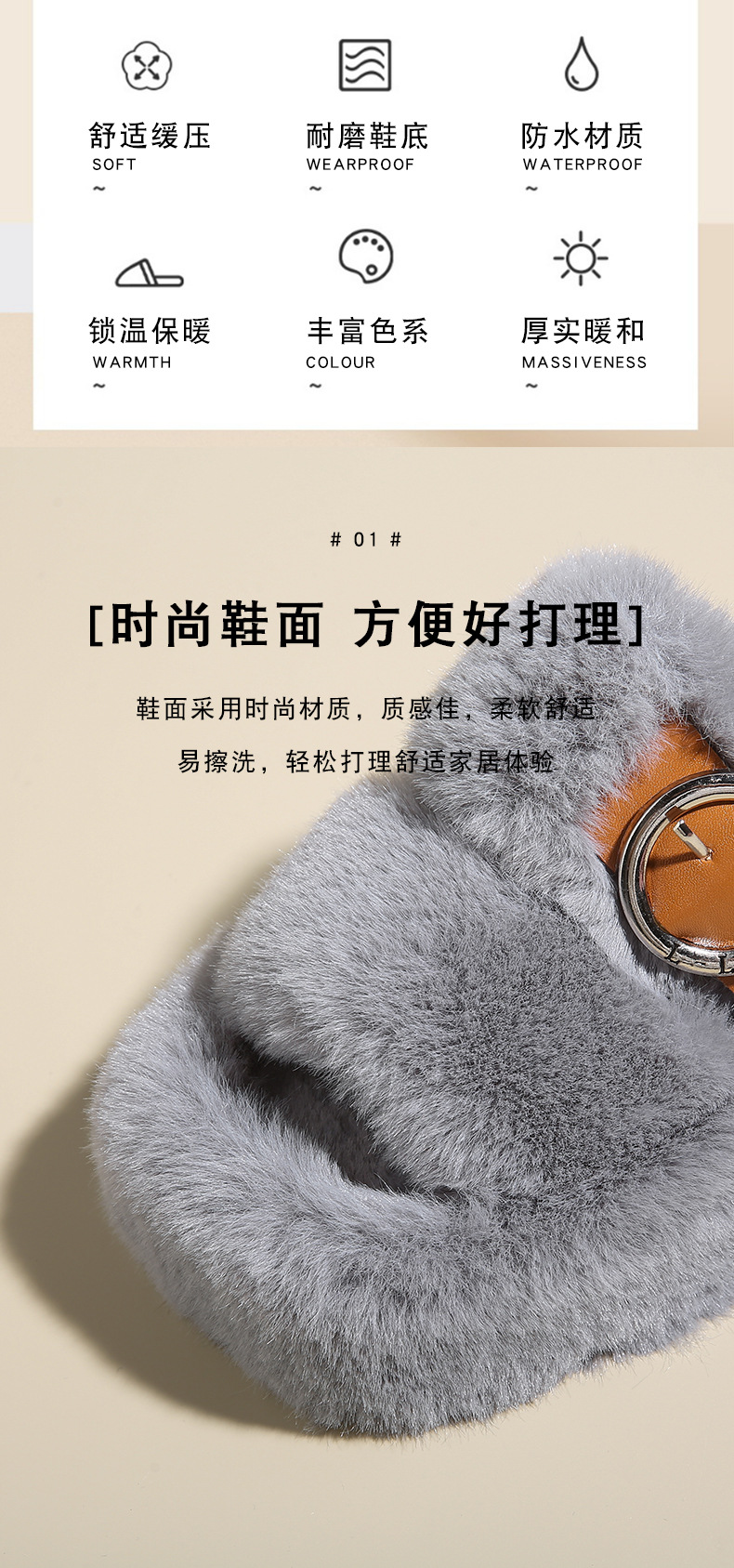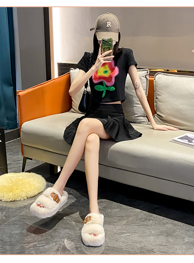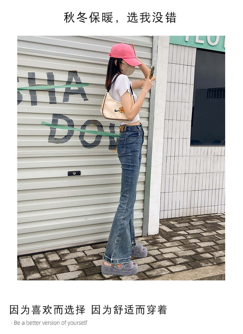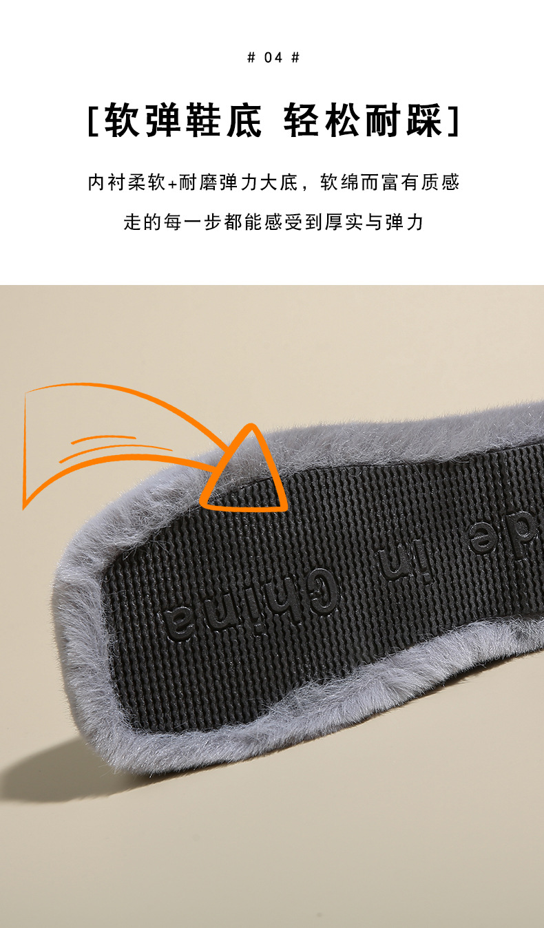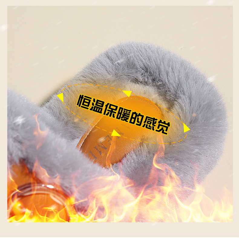 2023秋冬新款厚底方头内里加绒皮带扣舒适休闲时尚网红女毛毛拖鞋