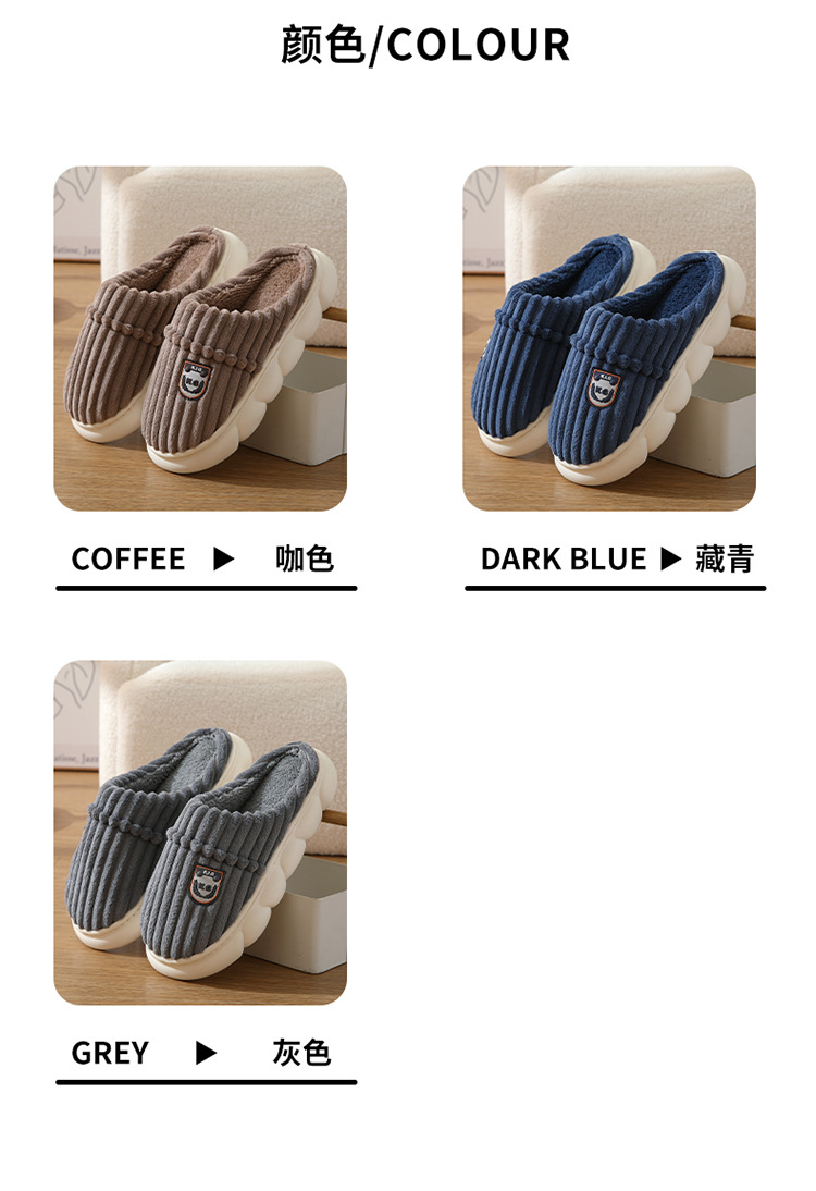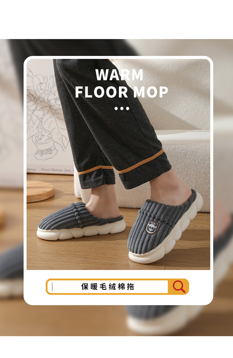 棉拖鞋男款大码家居厚底踩屎感加绒毛拖鞋冬季男士棉拖鞋现货批发