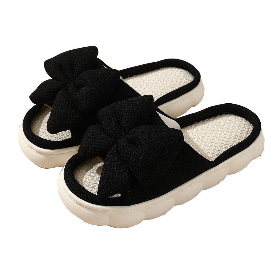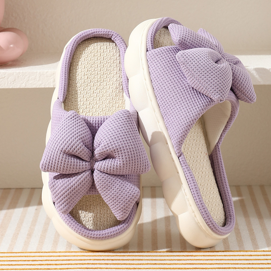 2024新款棉麻拖鞋女式大码蝴蝶结纯色居家地板开口露趾亚麻拖跨境