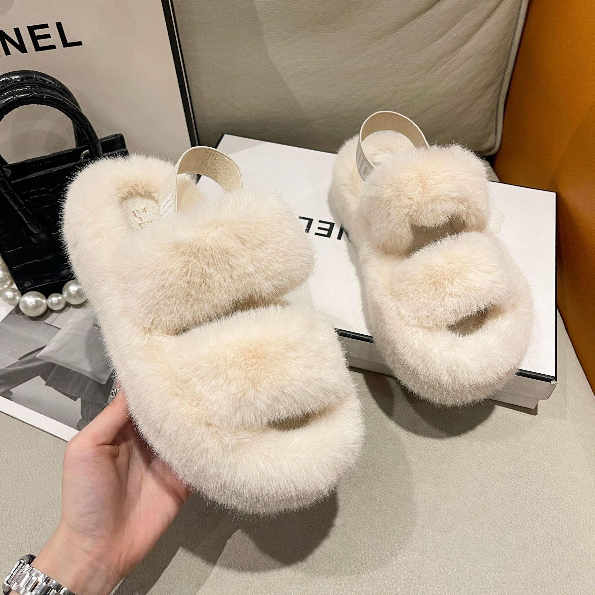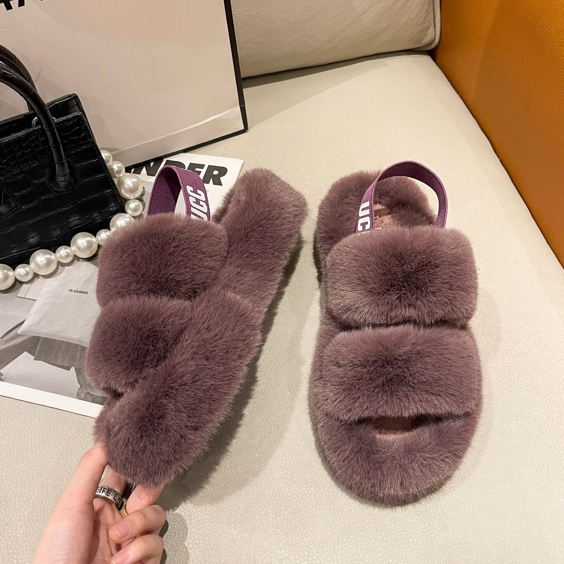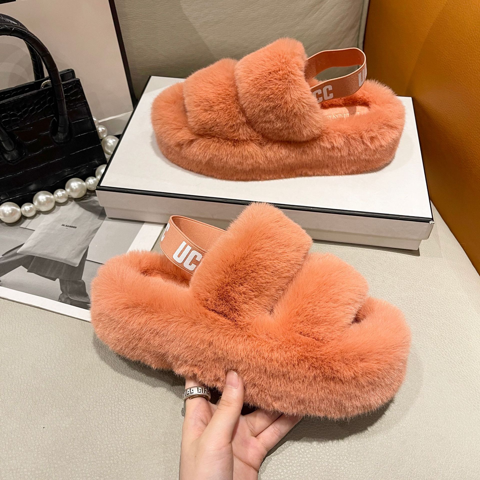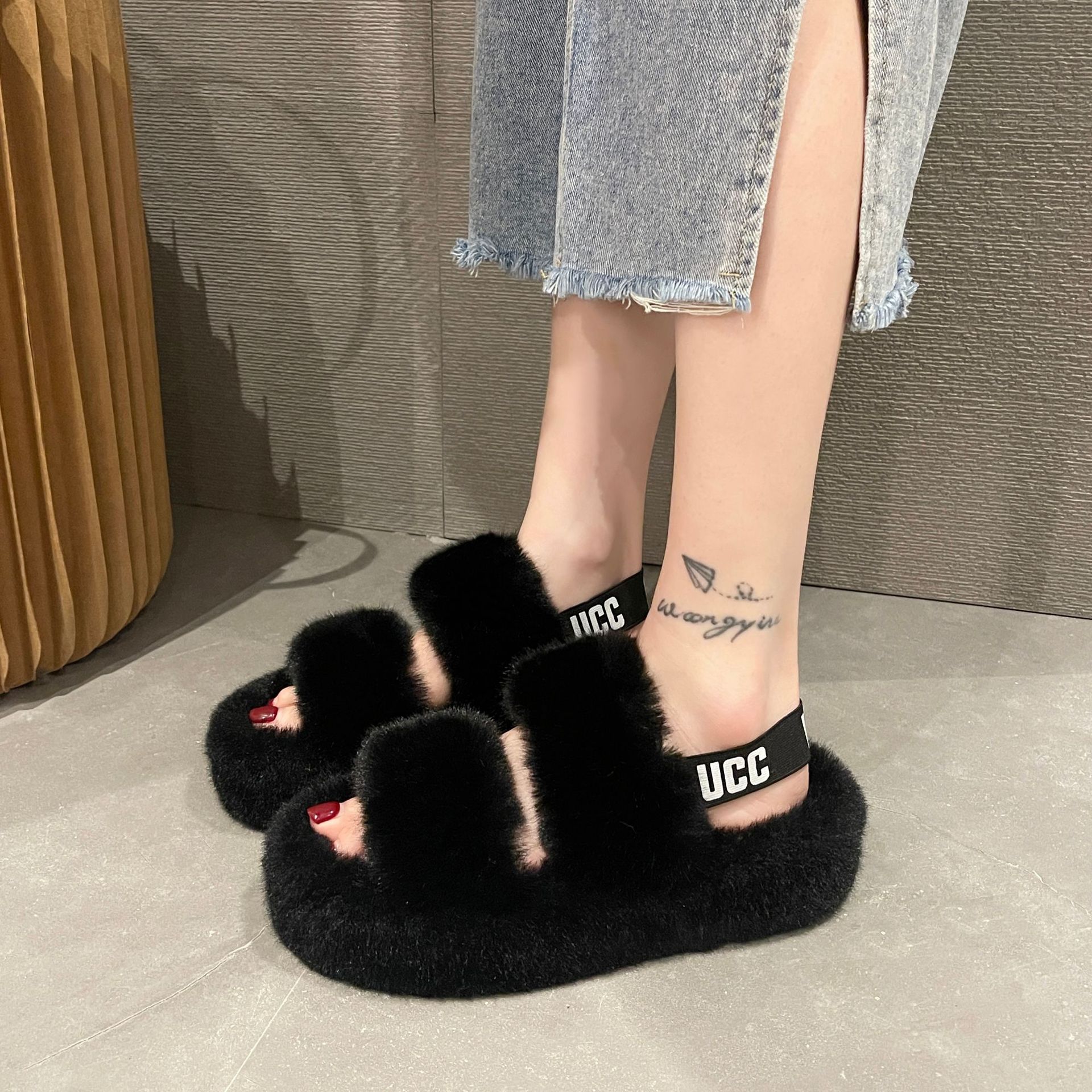 2023新款毛毛拖鞋女跨境外贸大码后跟带外穿韩版时尚外穿拖鞋厂家