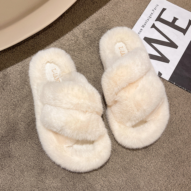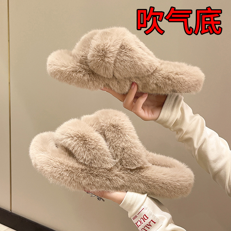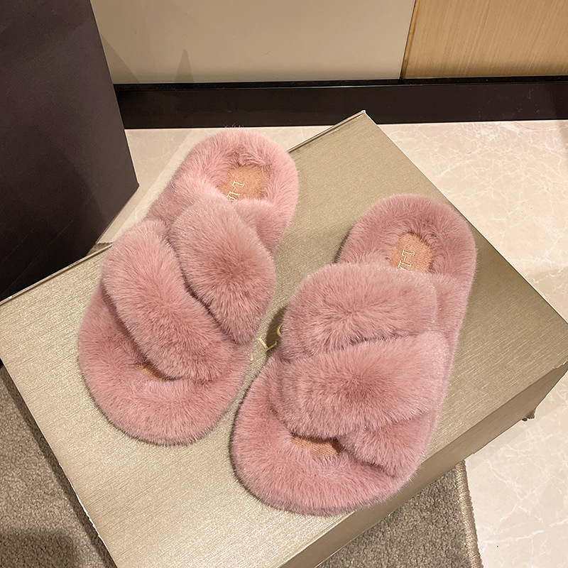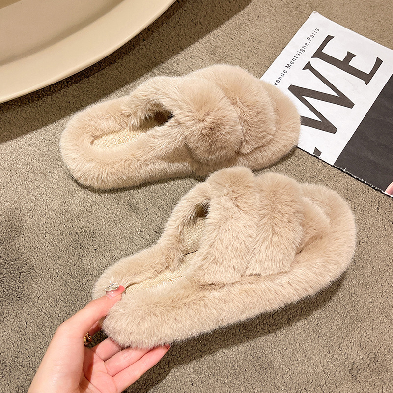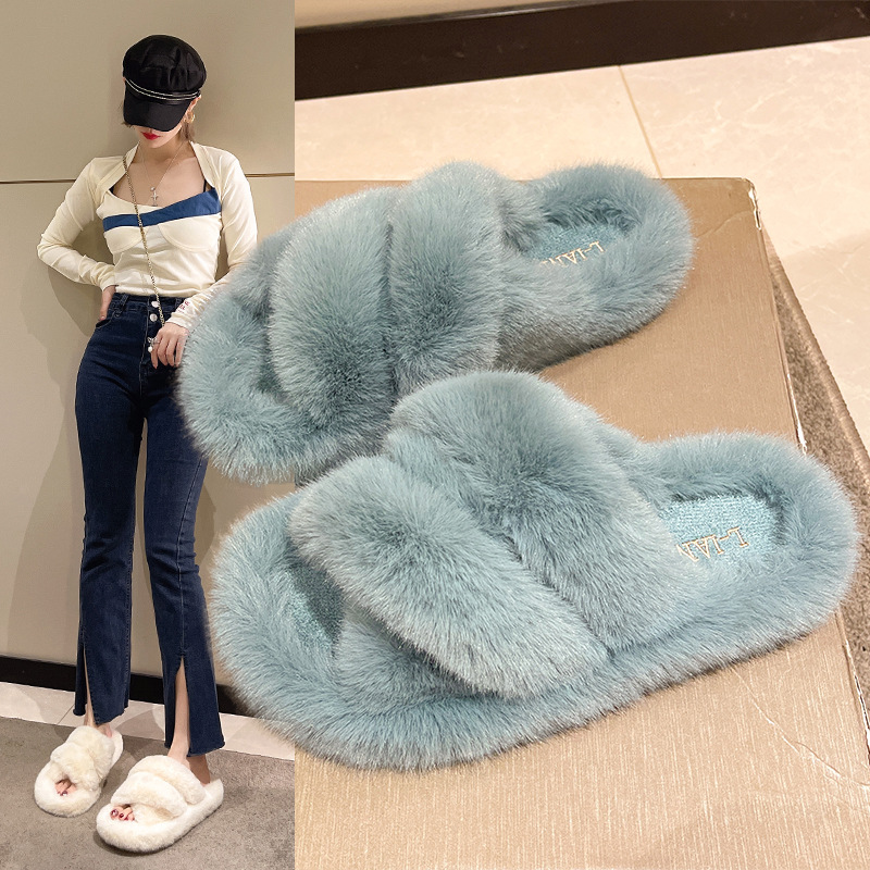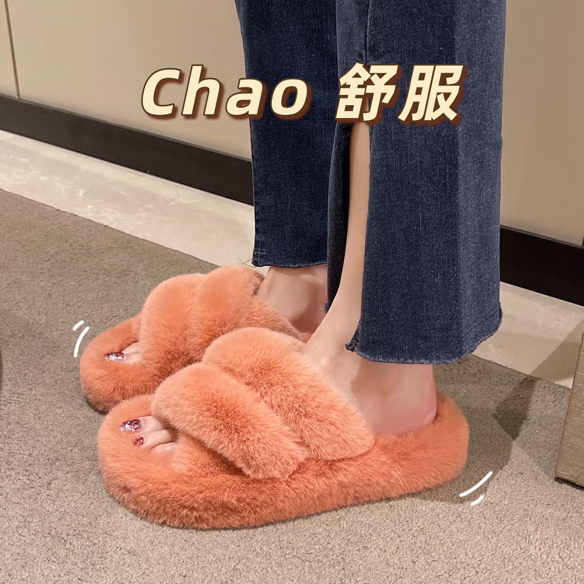 2023新款毛毛拖鞋女外穿时尚厚底露趾交叉多条网红一字拖鞋批发