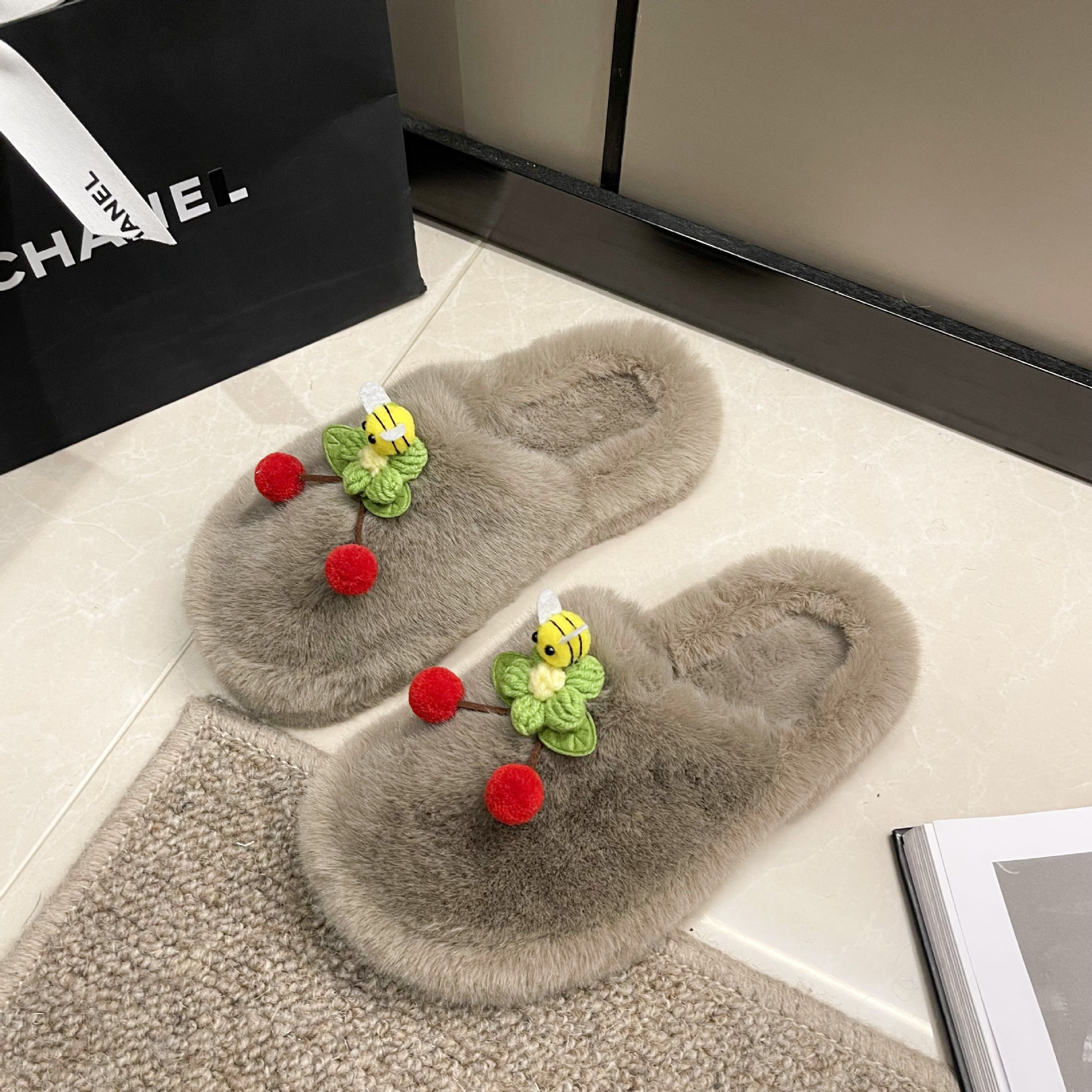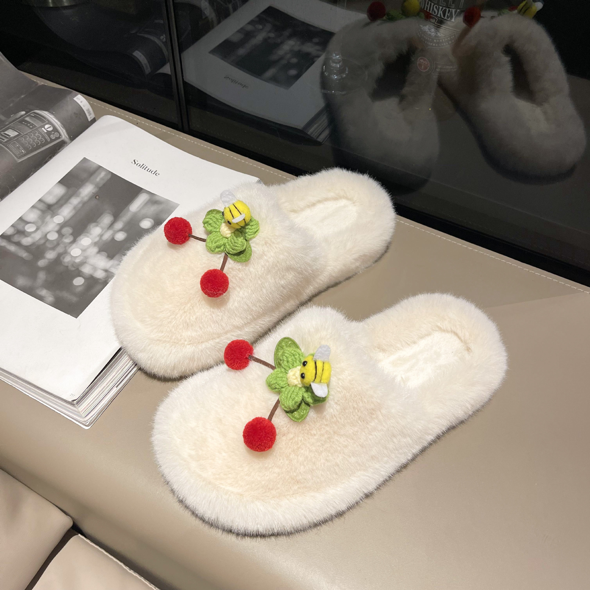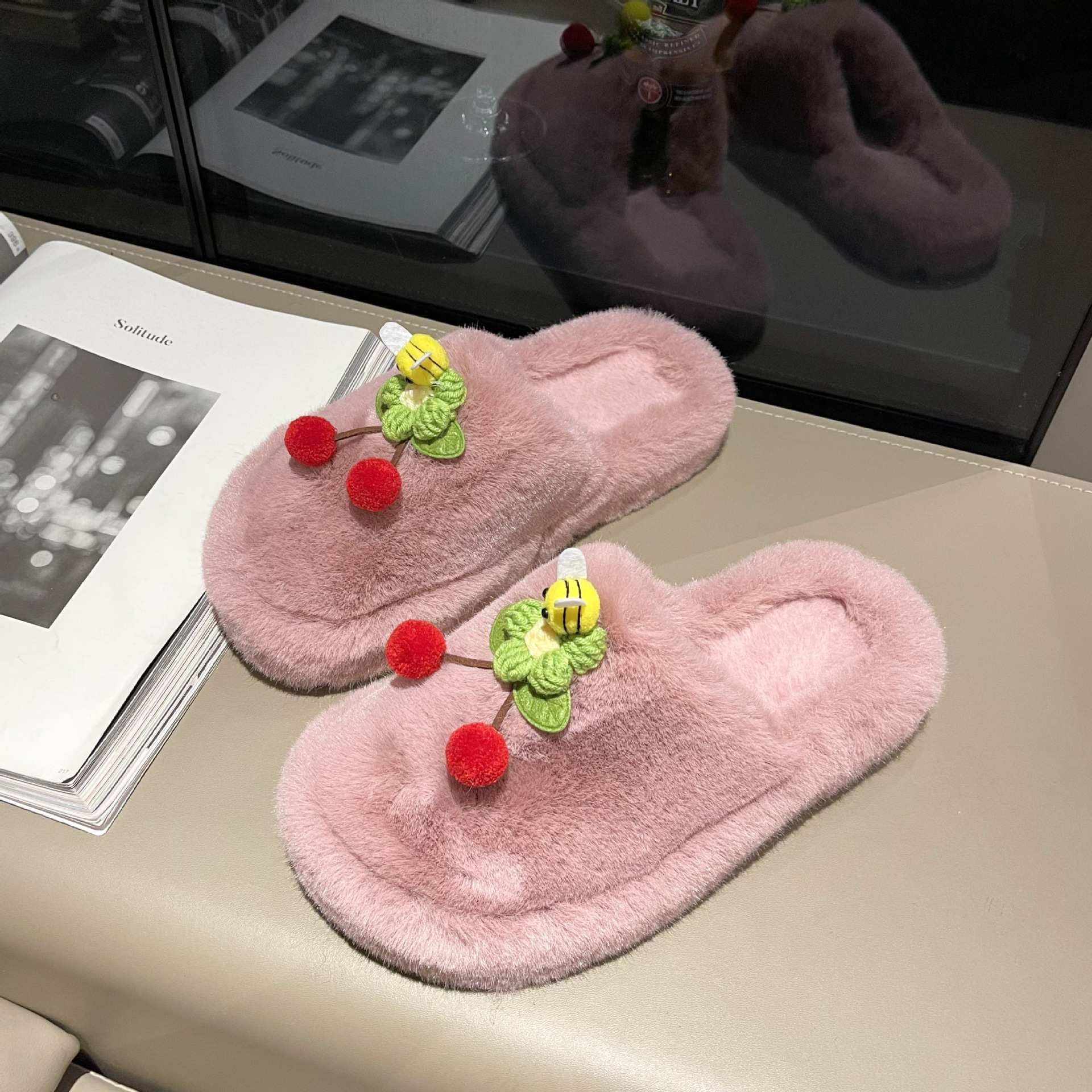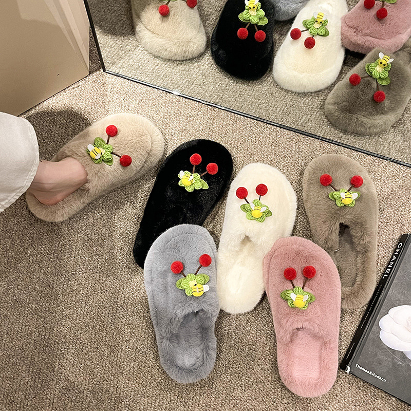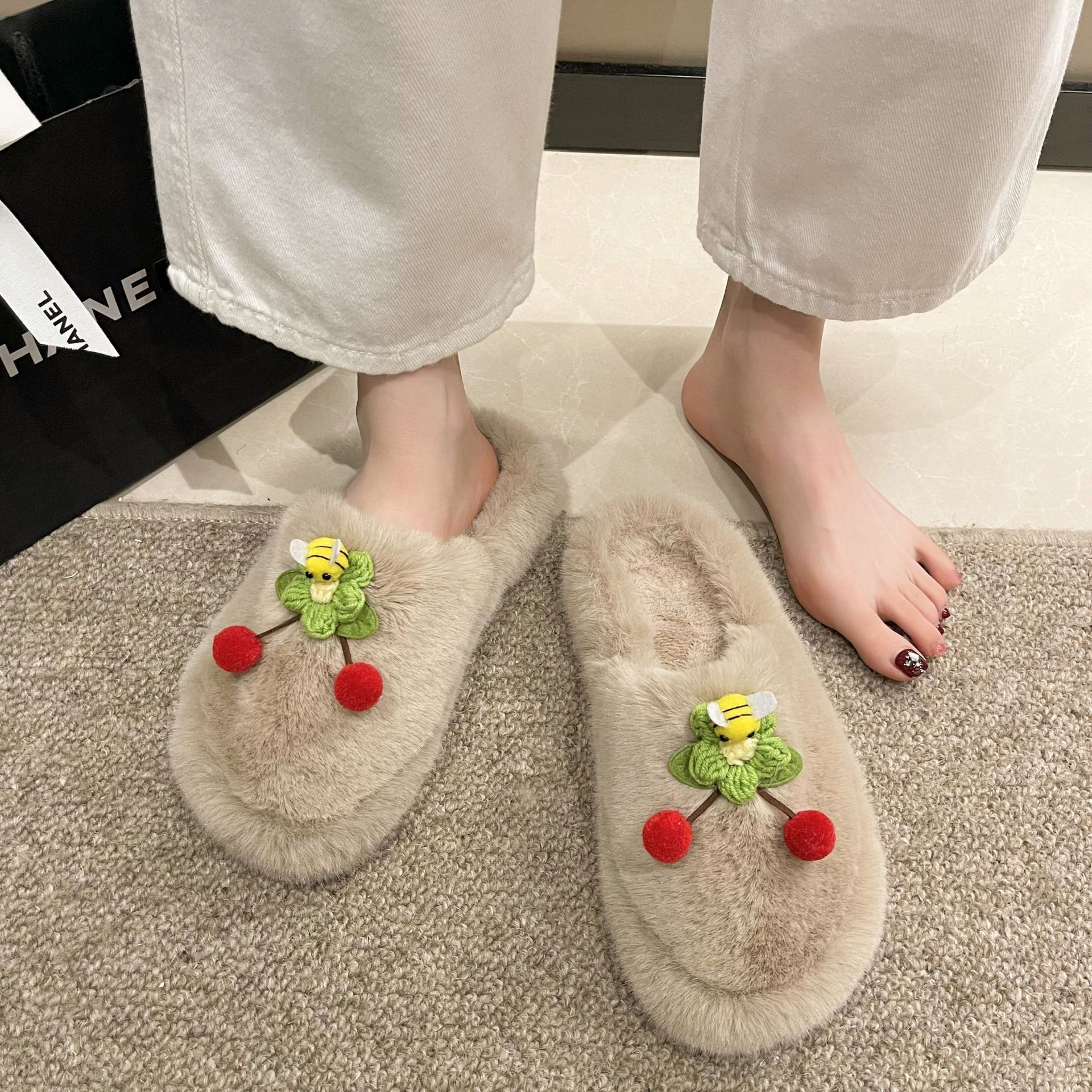 新款包头居家用外贸拖鞋女冬季可爱毛毛绒加厚棉拖鞋保暖拖鞋批发