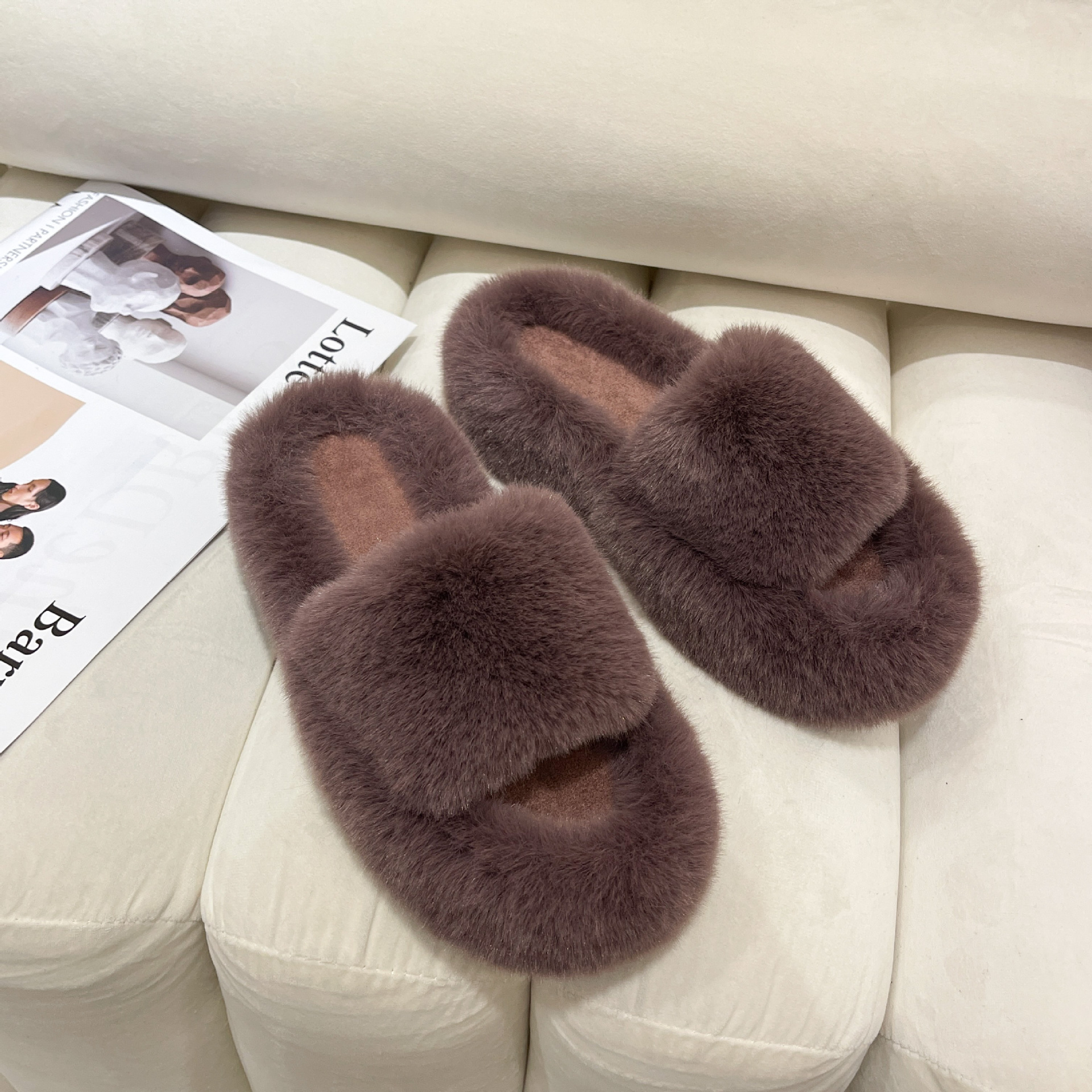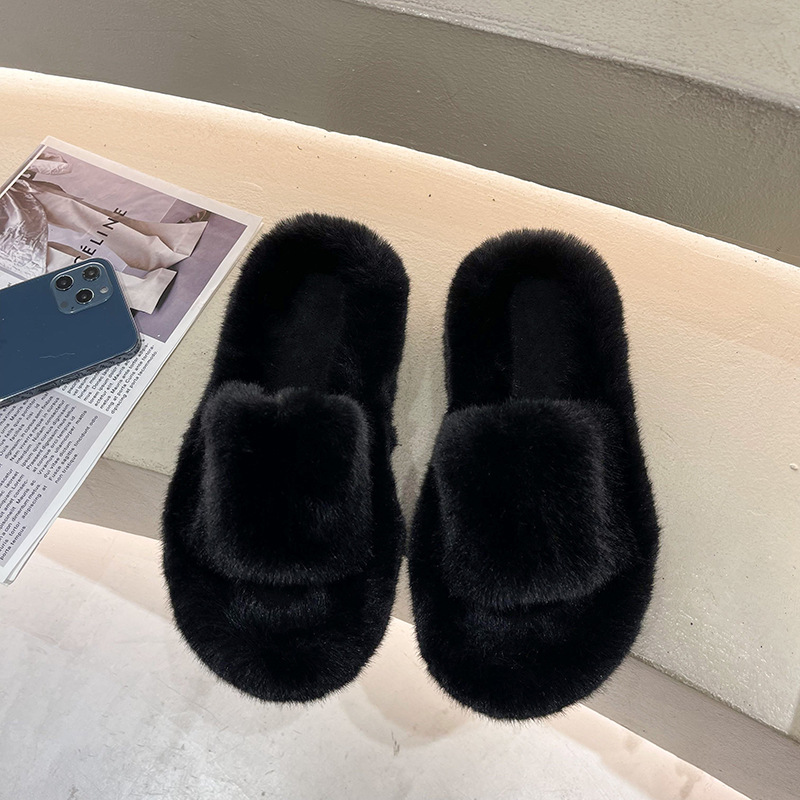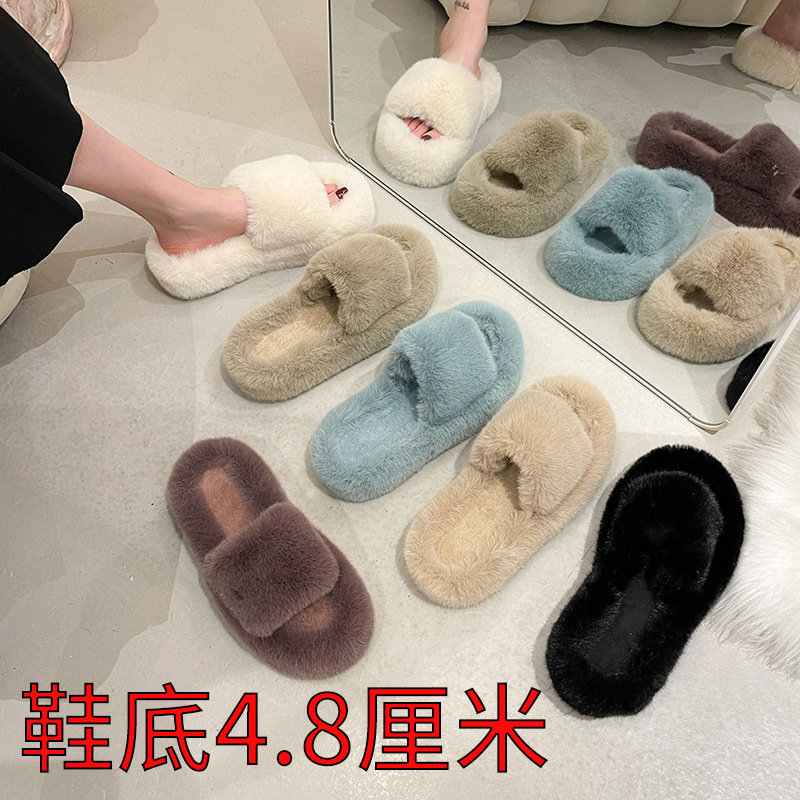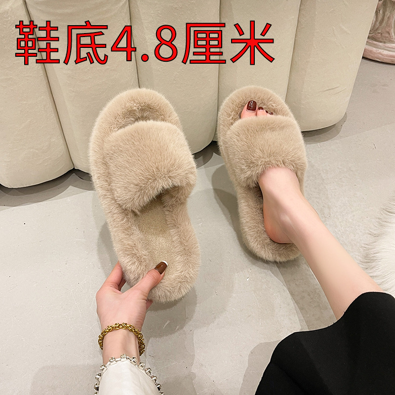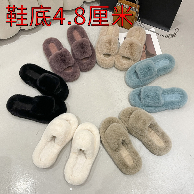 外贸大码2023新款加厚4.8厘米韩版外穿平底时尚毛毛鞋女拖鞋批发
