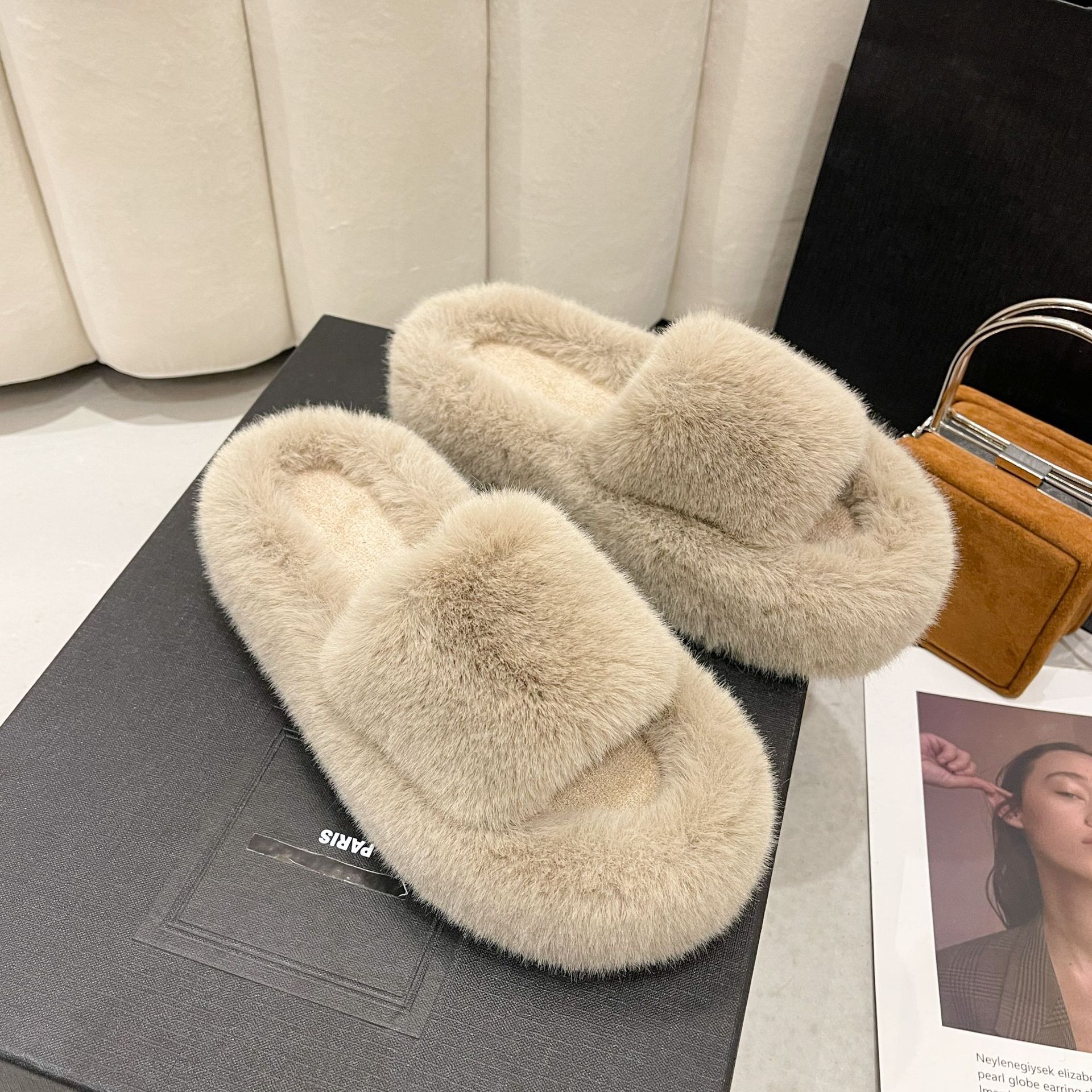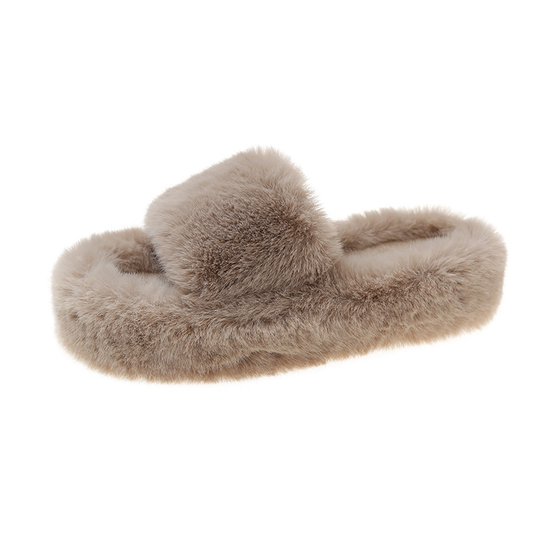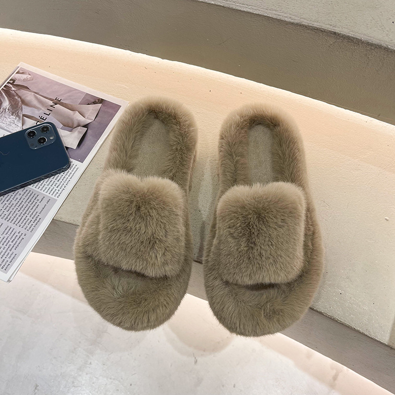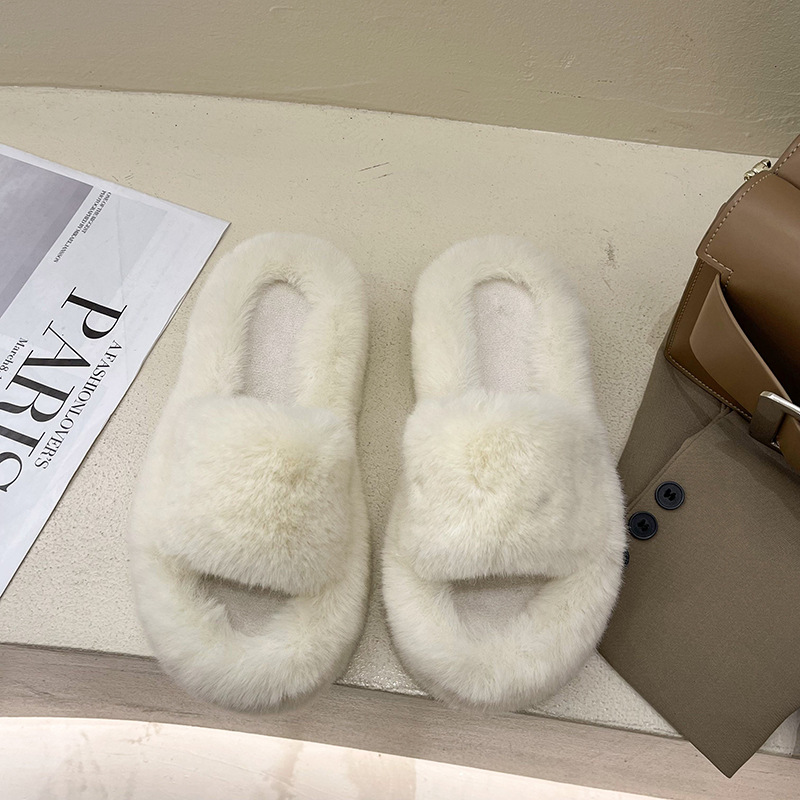 外贸大码2023新款加厚4.8厘米韩版外穿平底时尚毛毛鞋女拖鞋批发