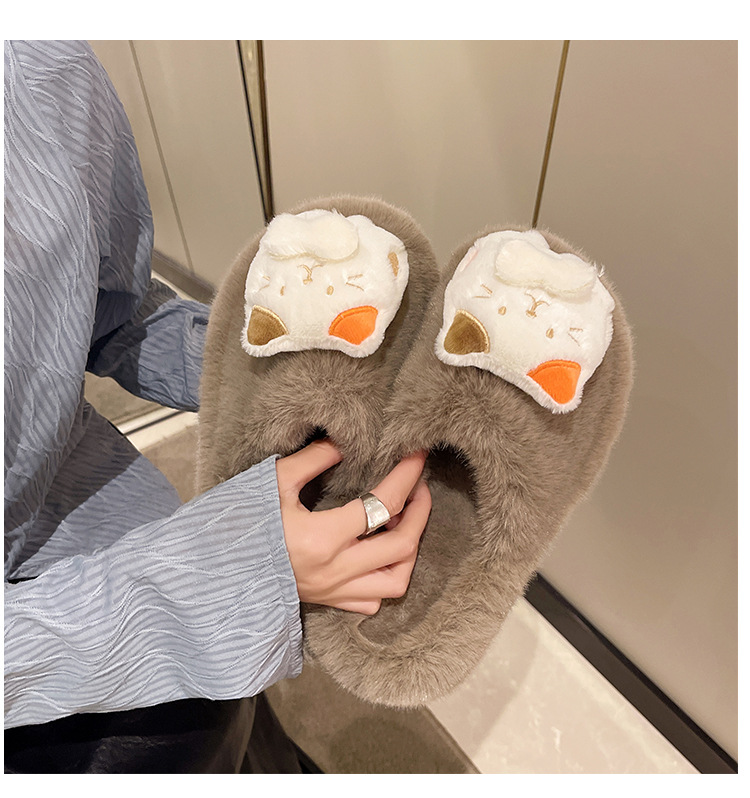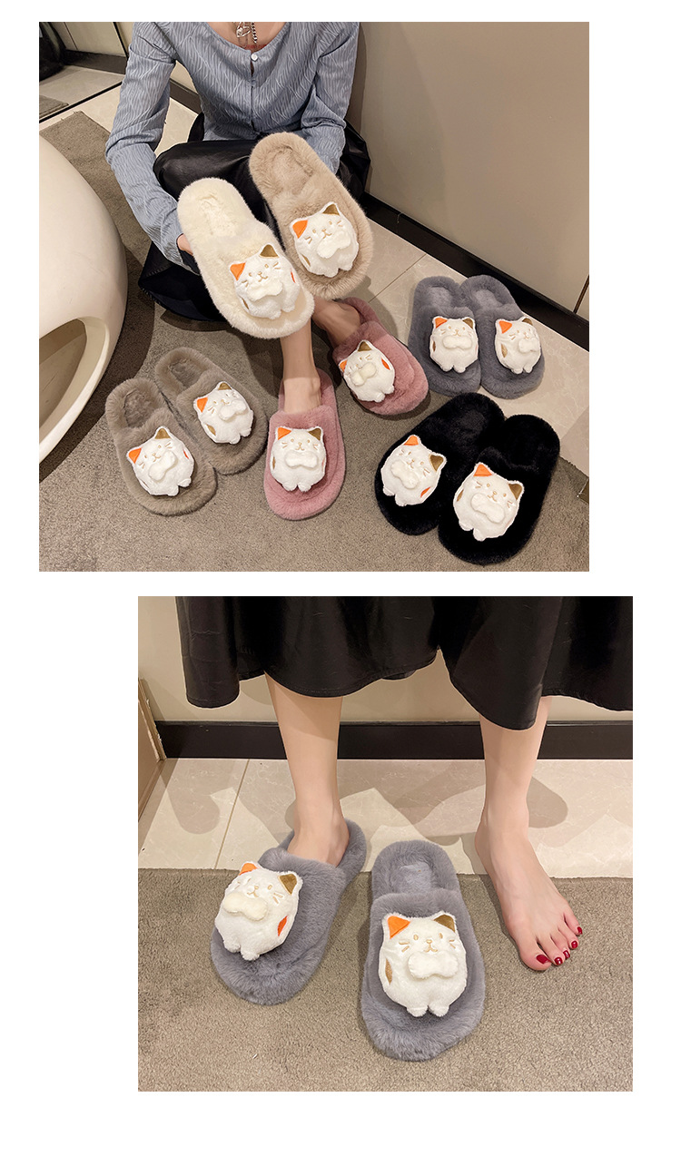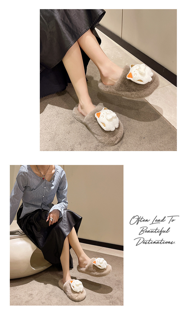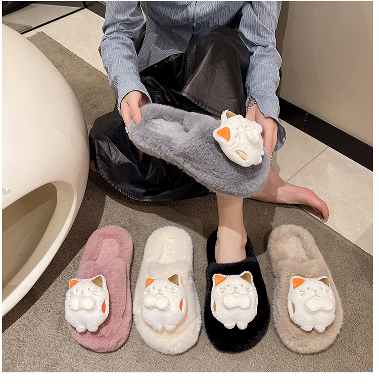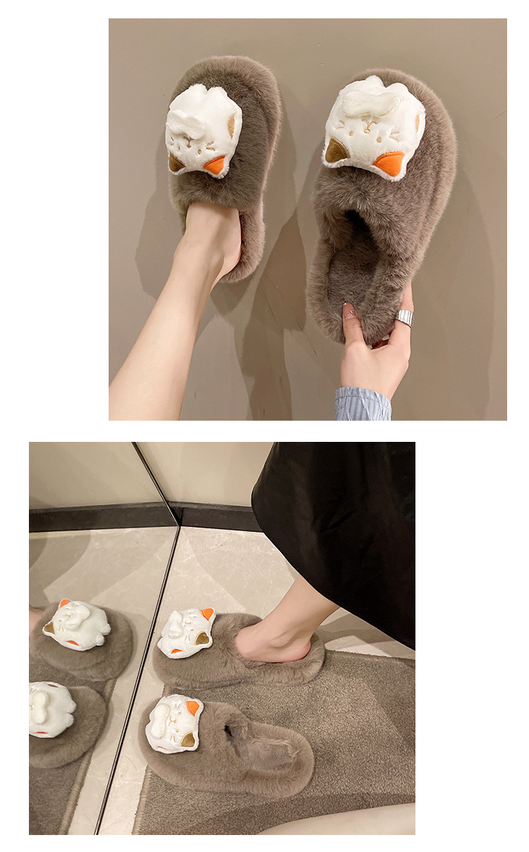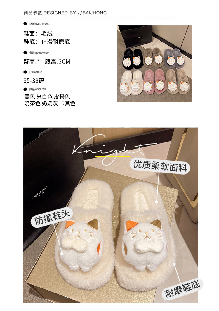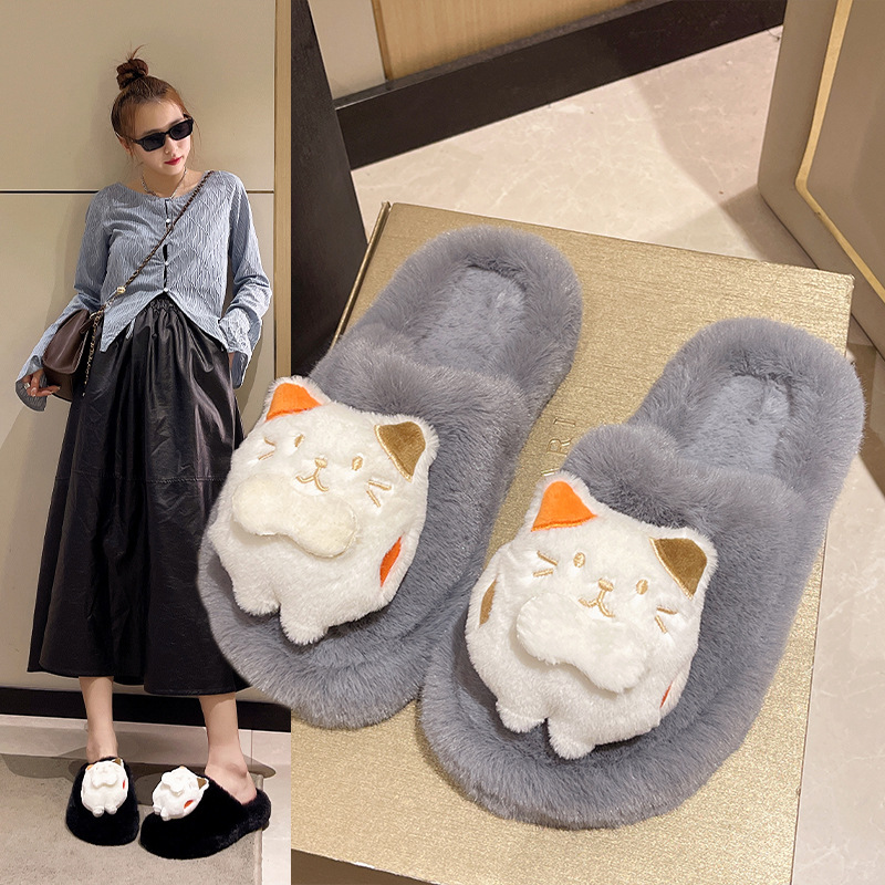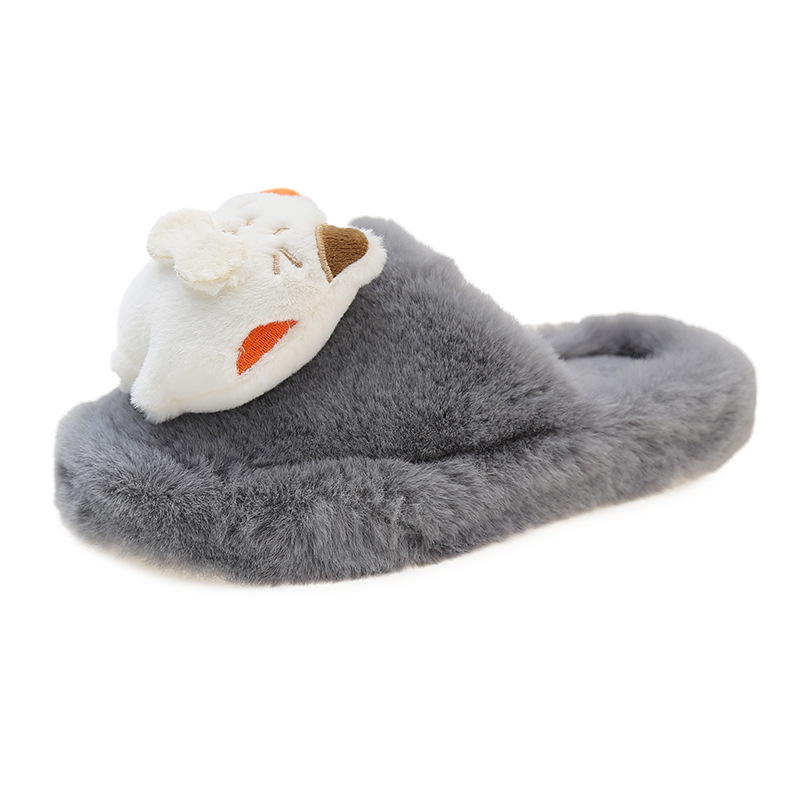 秋冬新款包头外贸大码内里加绒可爱卡通龙猫网红包头毛毛拖鞋批发