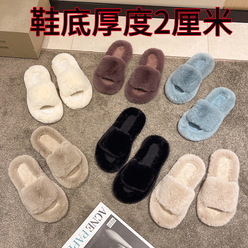 外贸大码2024新款家居韩版百搭外穿平底时尚毛毛网红女拖鞋批发