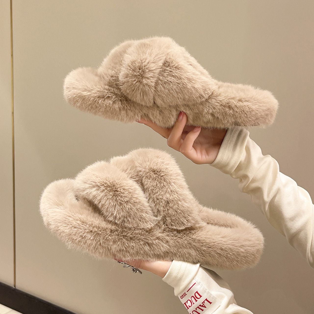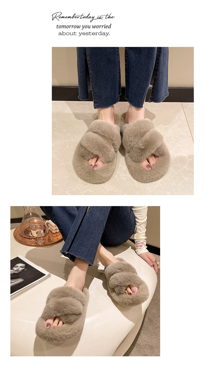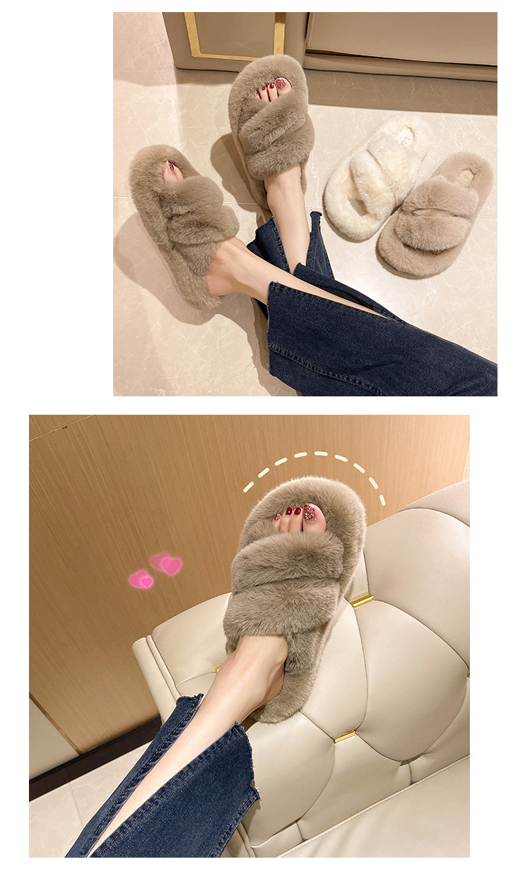 秋冬新款跨境外贸大码厚底舒适软底居家外穿保暖时尚百搭毛毛拖鞋