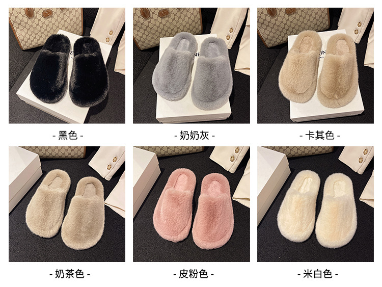 秋冬新款包头舒适软底内里加绒居家外穿保暖时尚百搭毛毛拖鞋批发