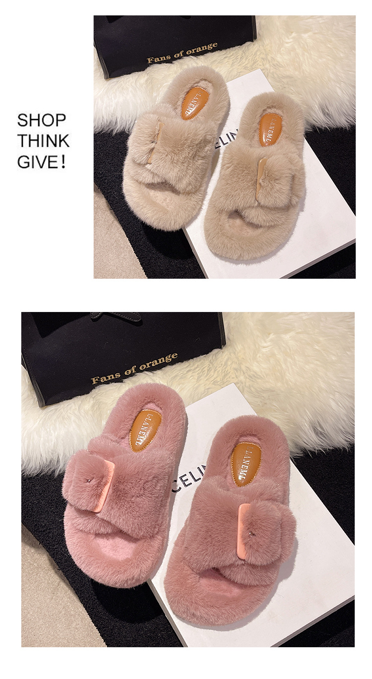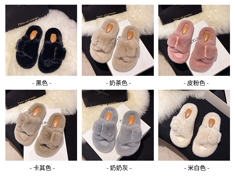秋冬新款跨境外贸大码毛毛拖鞋女外穿厚底家居室内棉拖鞋厂家批发
