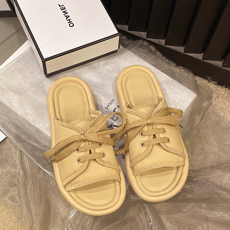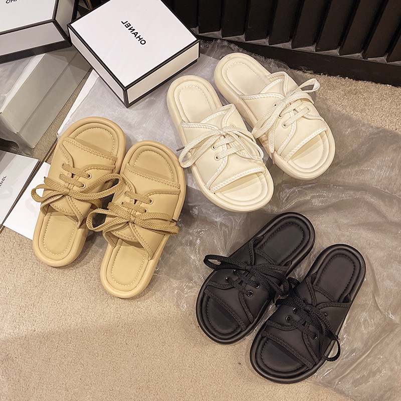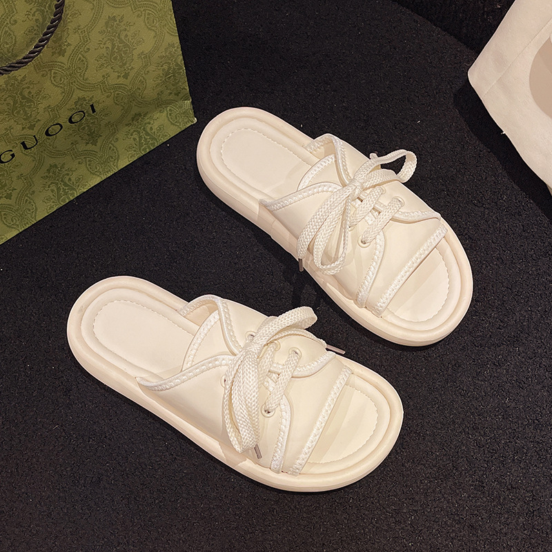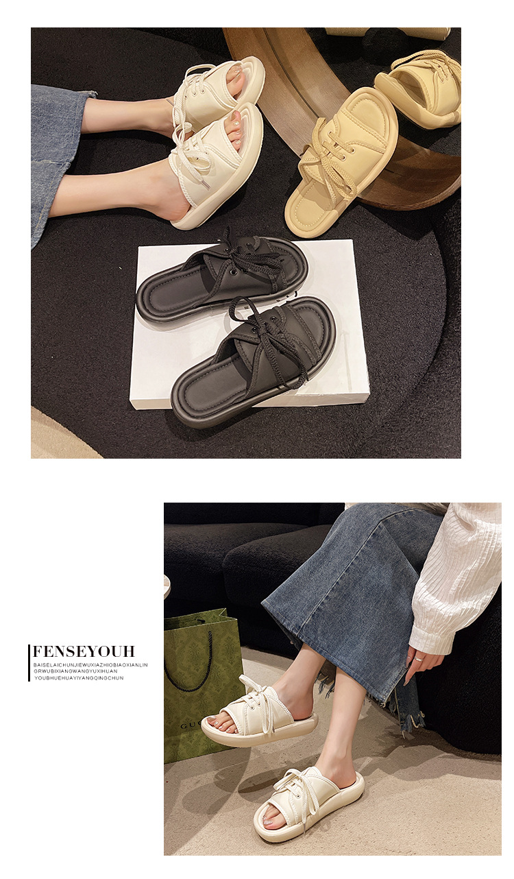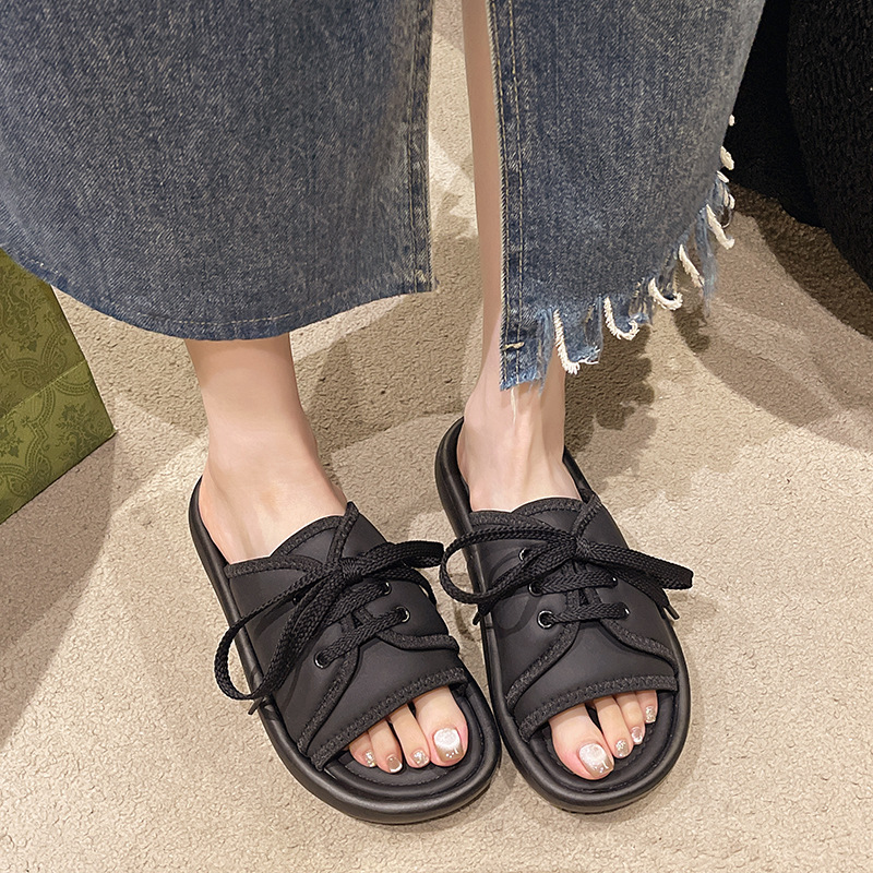 2024年夏季新款凉鞋托女系带露趾一字运动拖鞋平底鞋软底百搭女鞋