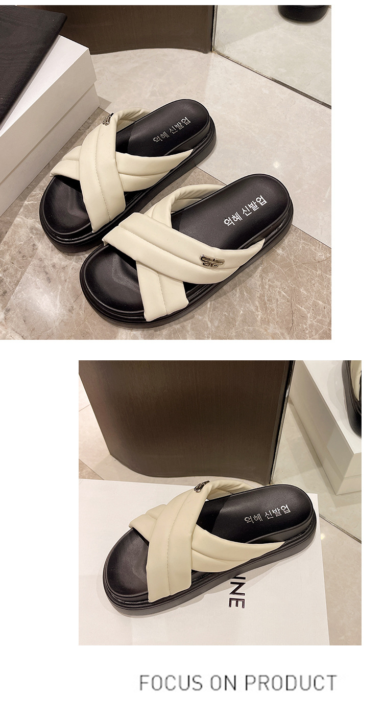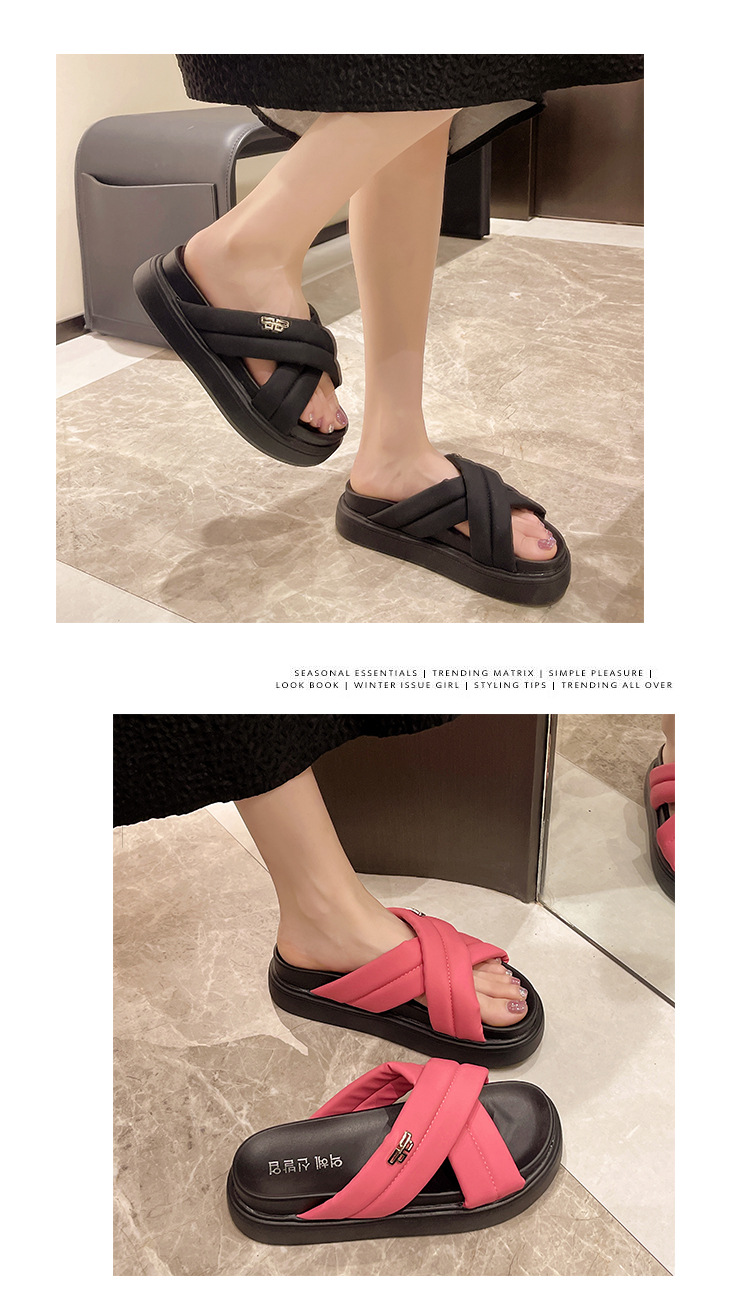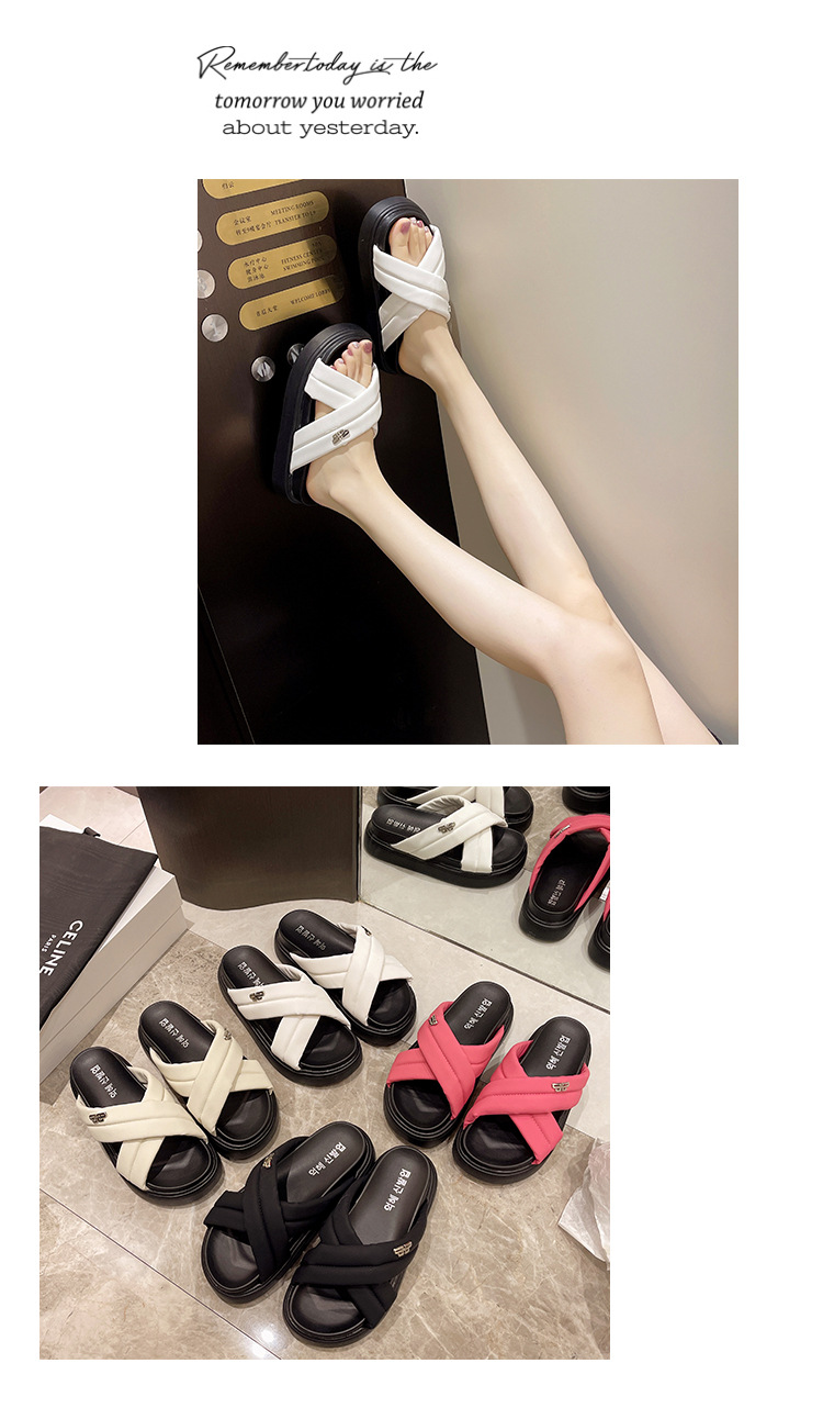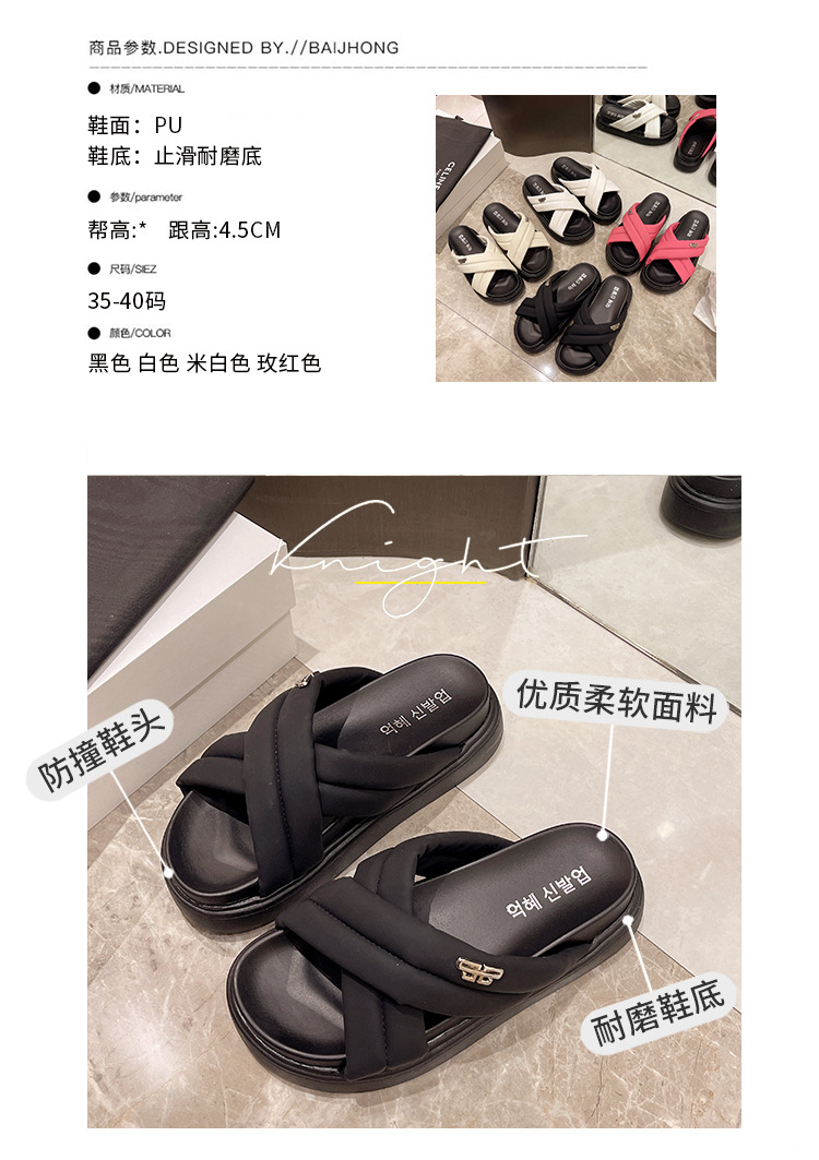 拖鞋女2024年夏季新款女鞋透气百搭坡跟厚底小香风夏外穿拖鞋女