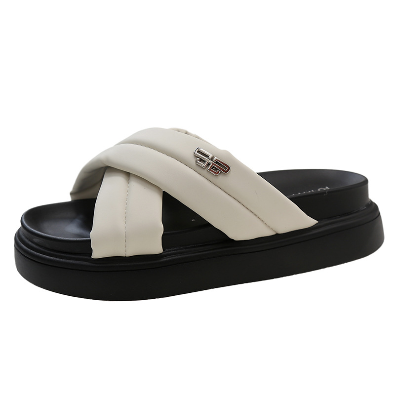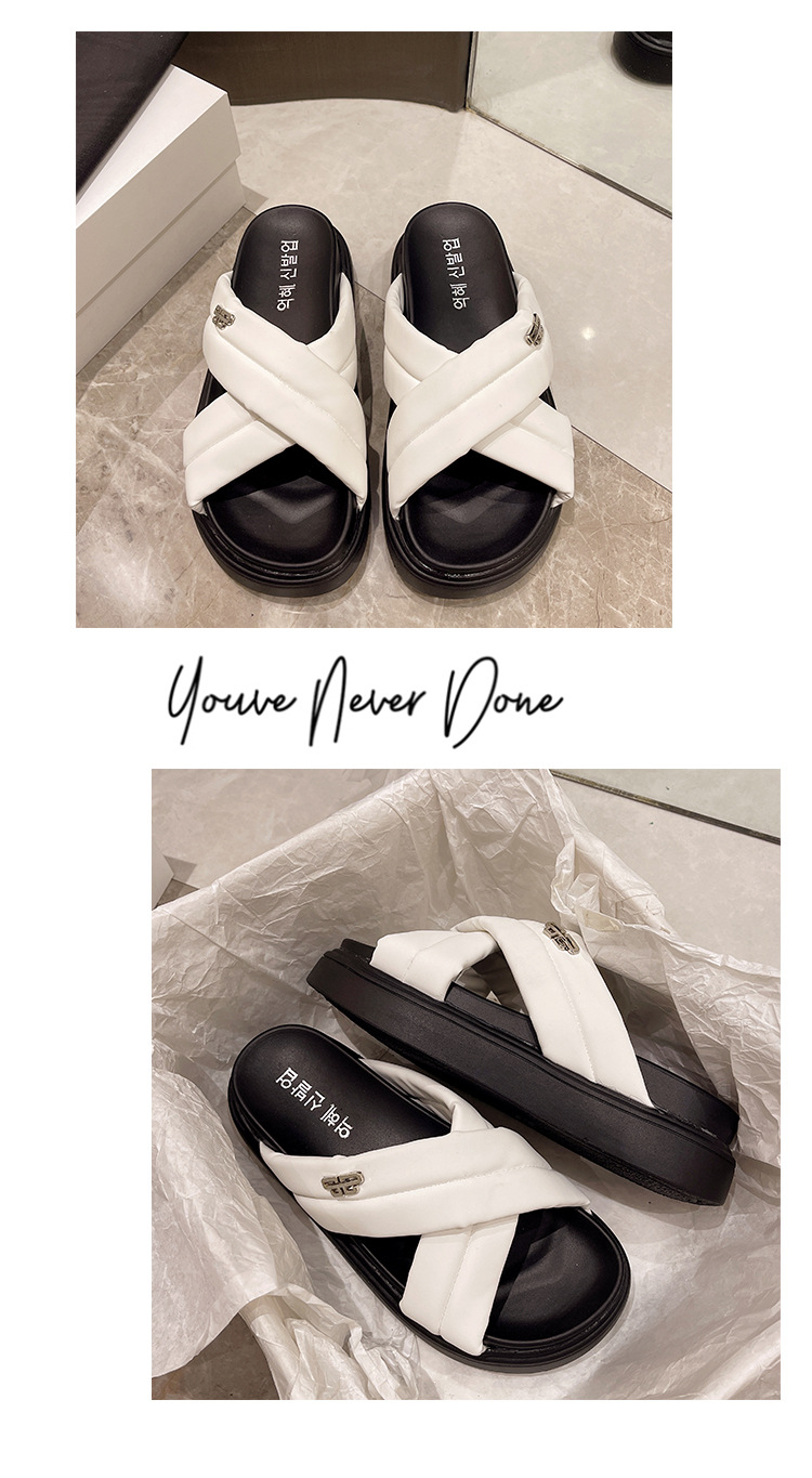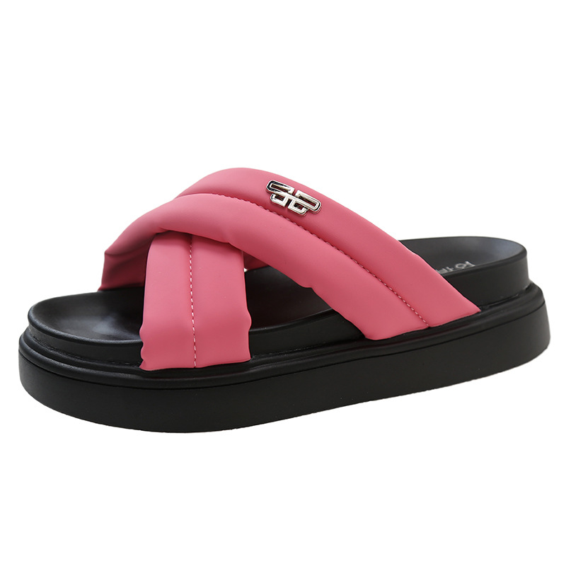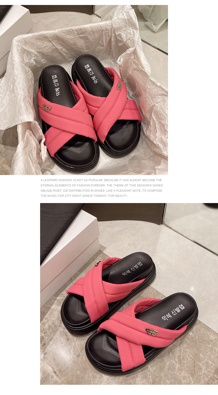 拖鞋女2024年夏季新款女鞋透气百搭坡跟厚底小香风夏外穿拖鞋女
