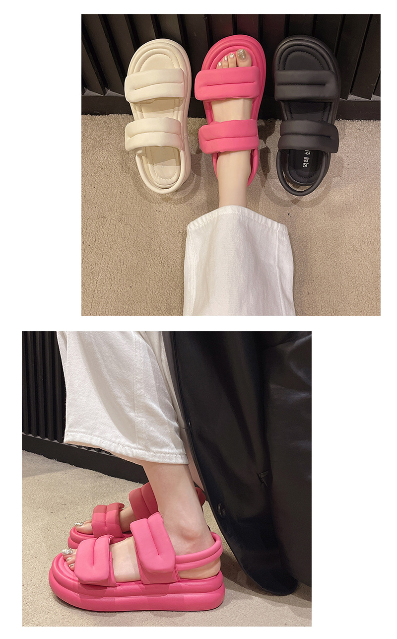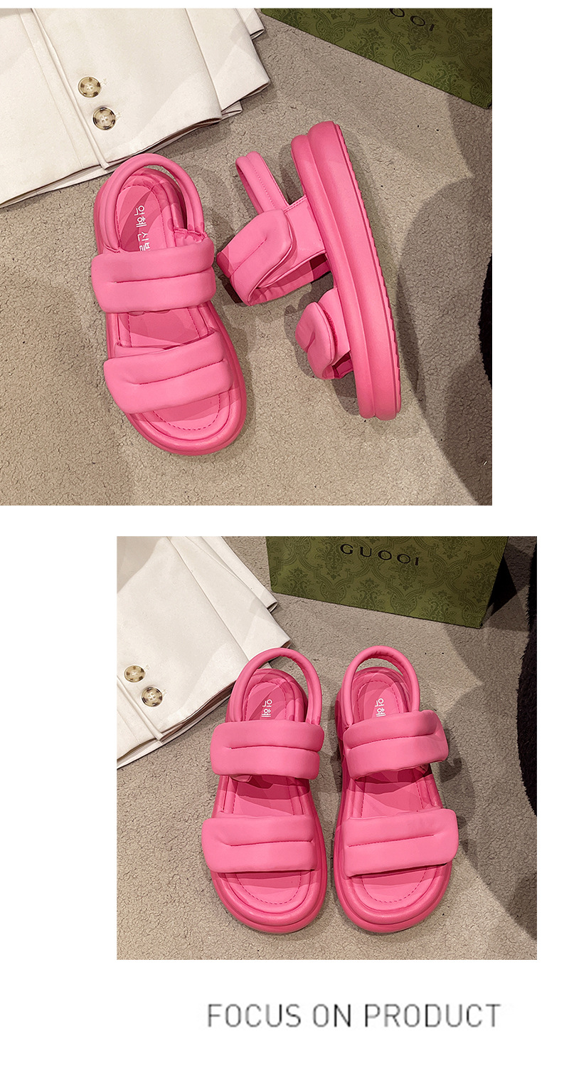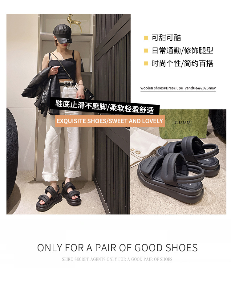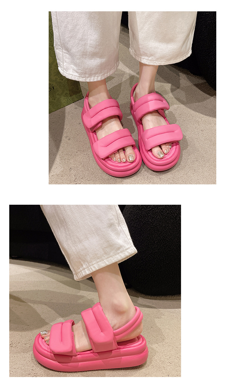 2024夏季新款厚底一字带柔软时尚舒适轻便魔术贴运动沙滩鞋凉鞋女