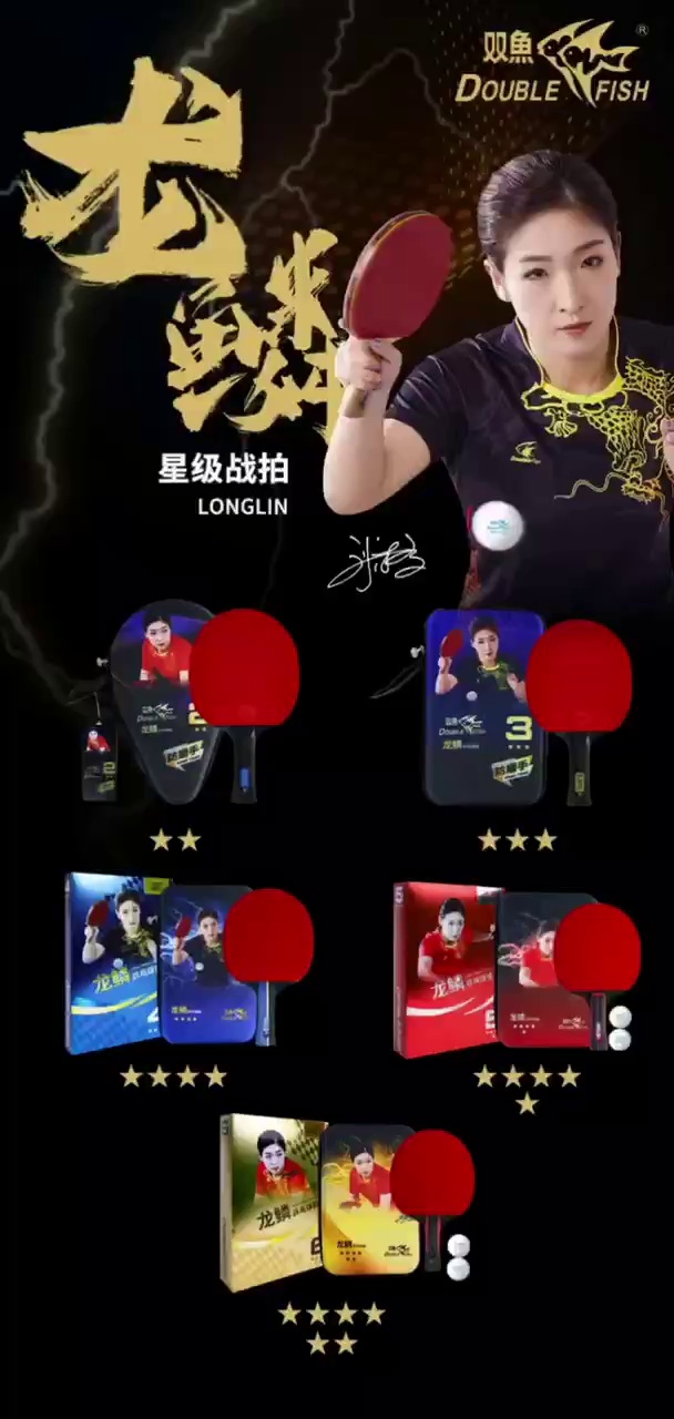 双鱼龙鳞系列三星高级乒乓球拍,横拍/直拍、防磨手方形包