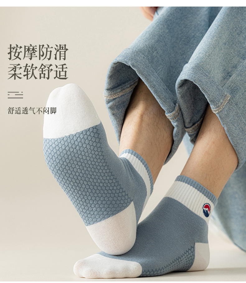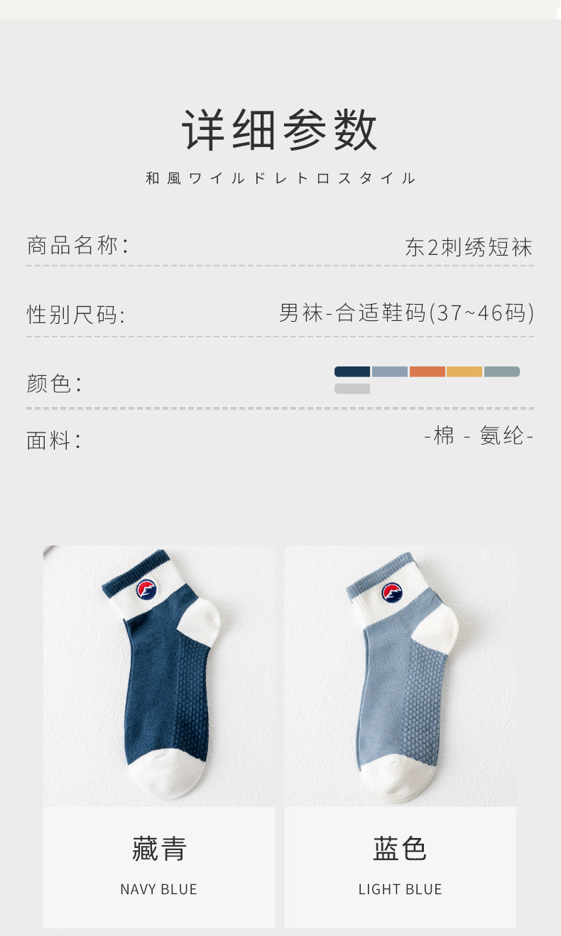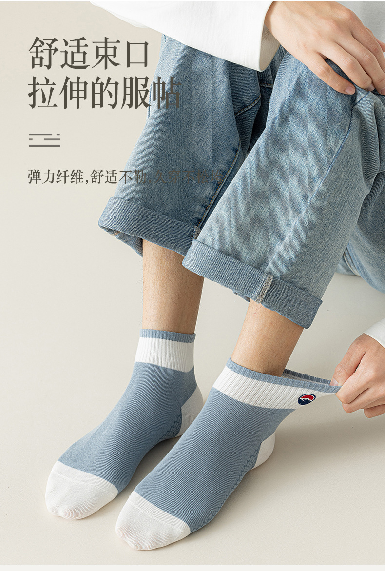 袜子男夏季薄款短袜纯棉防臭吸汗运动透气男士短筒刺绣棉袜
