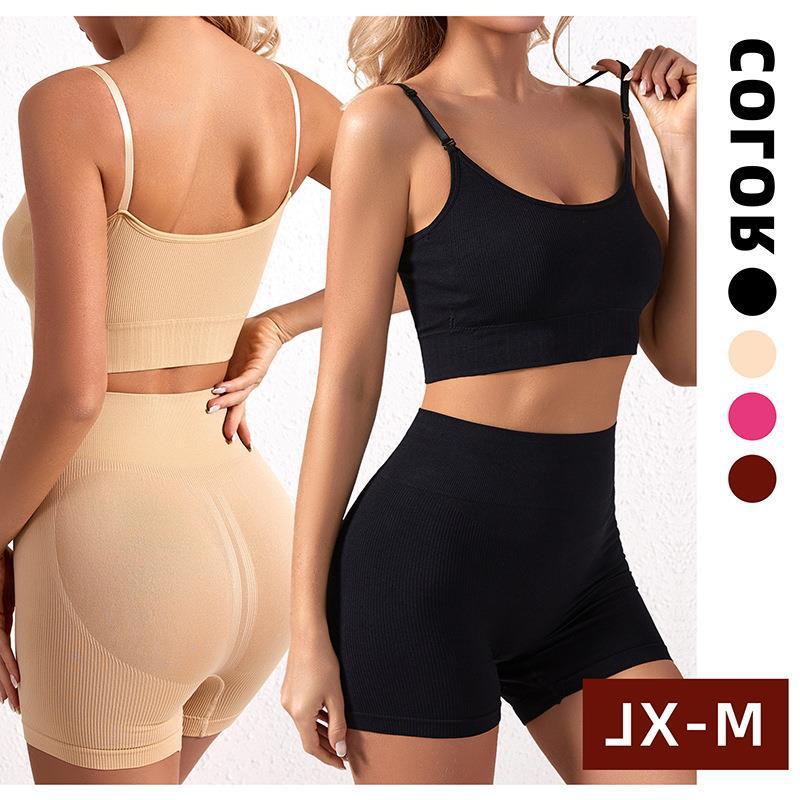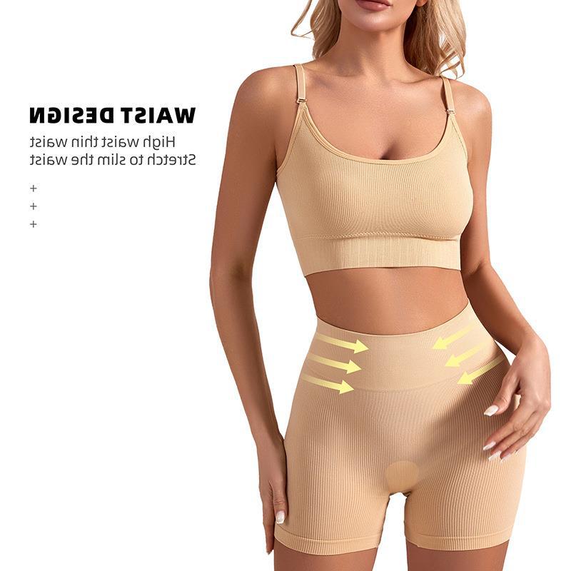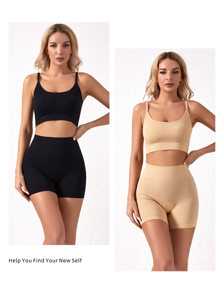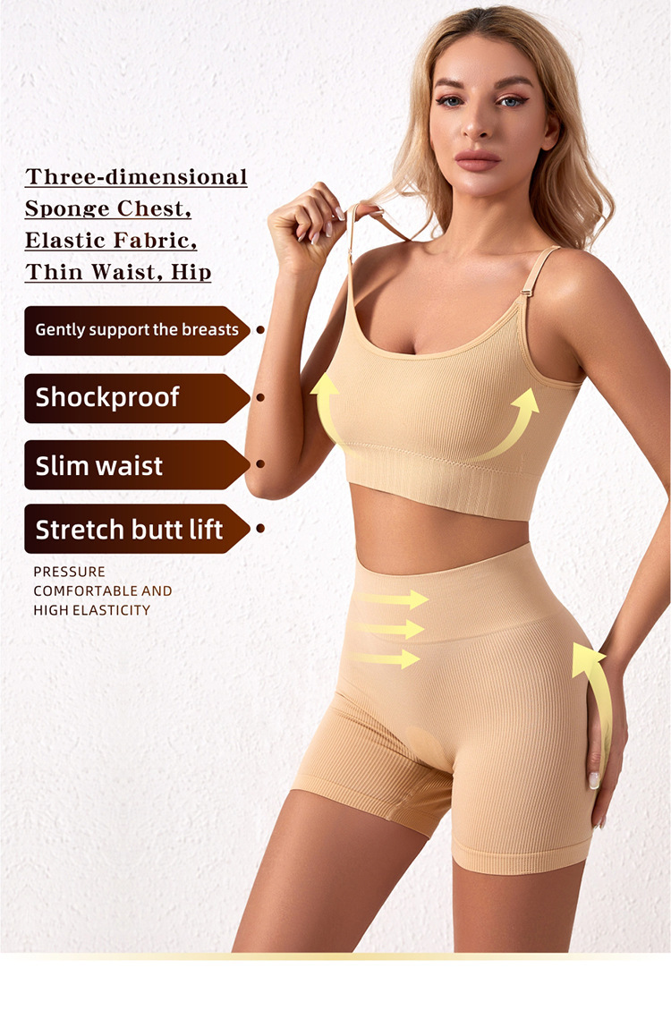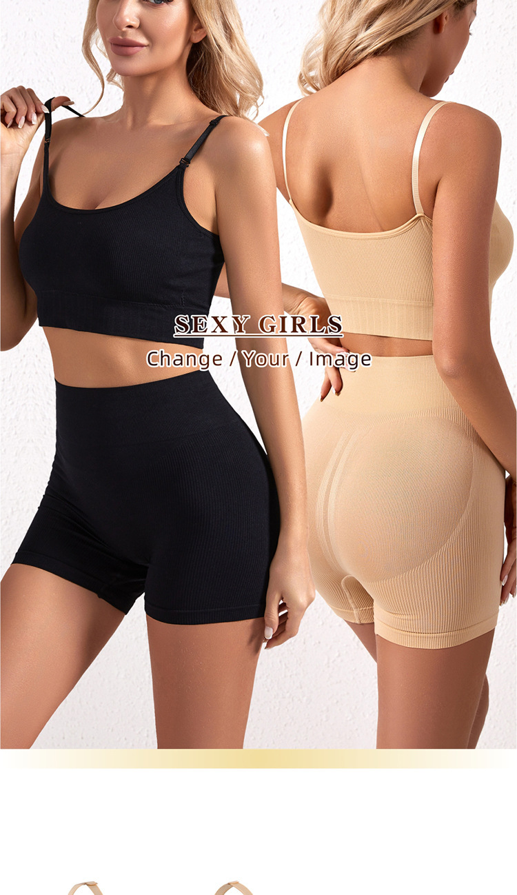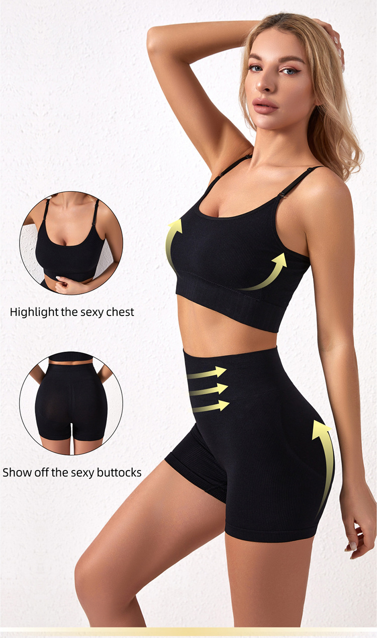 欧美聚拢文胸内衣女运动健身美背心高腰收腹舒适弹力紧身短裤套装
