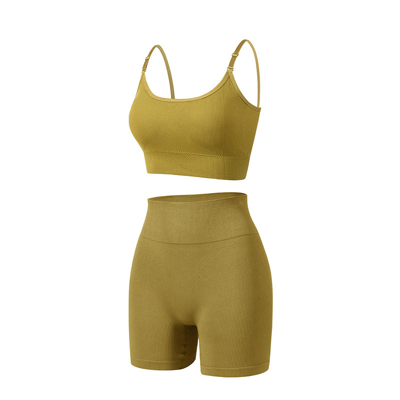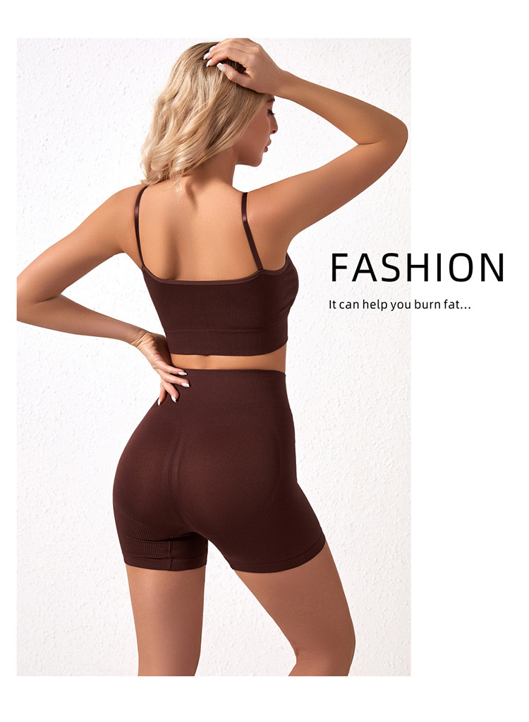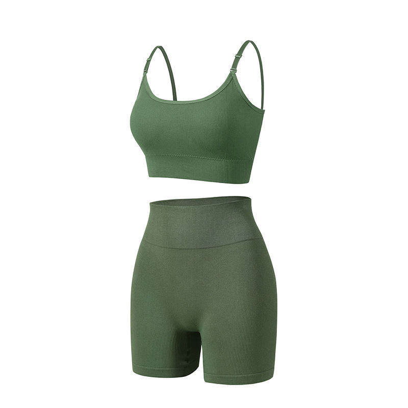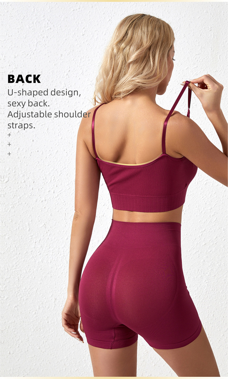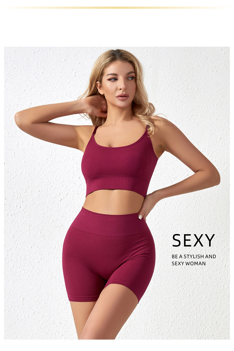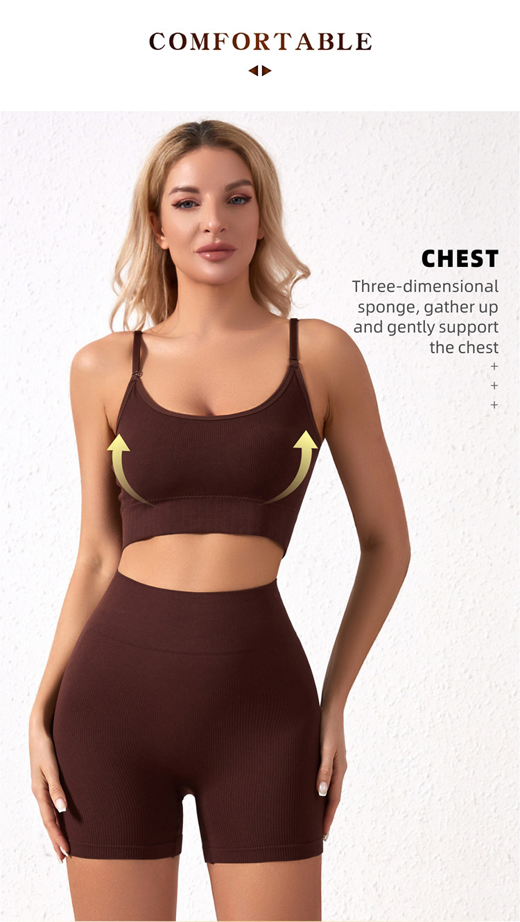 欧美聚拢文胸内衣女运动健身美背心高腰收腹舒适弹力紧身短裤套装