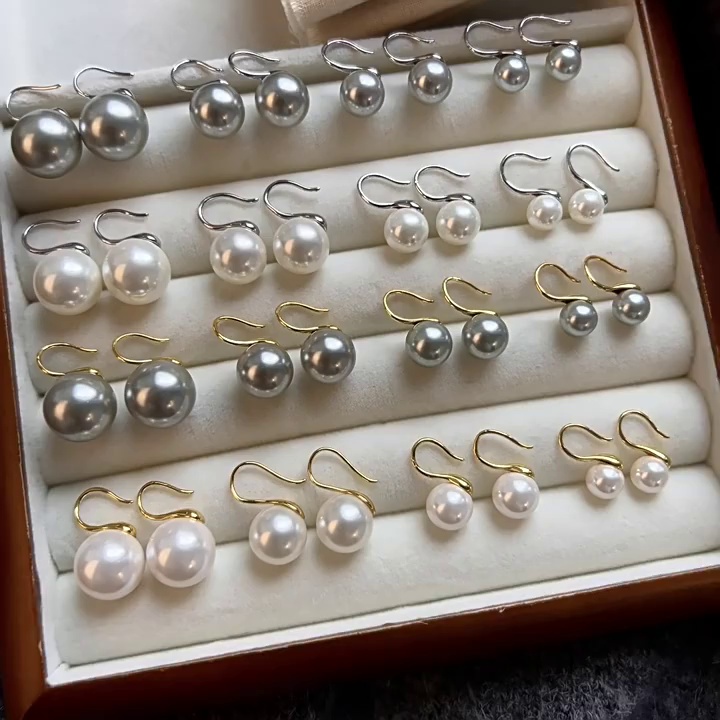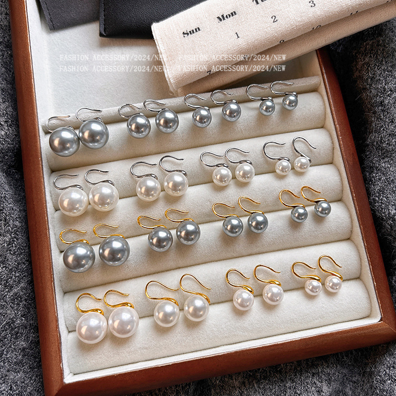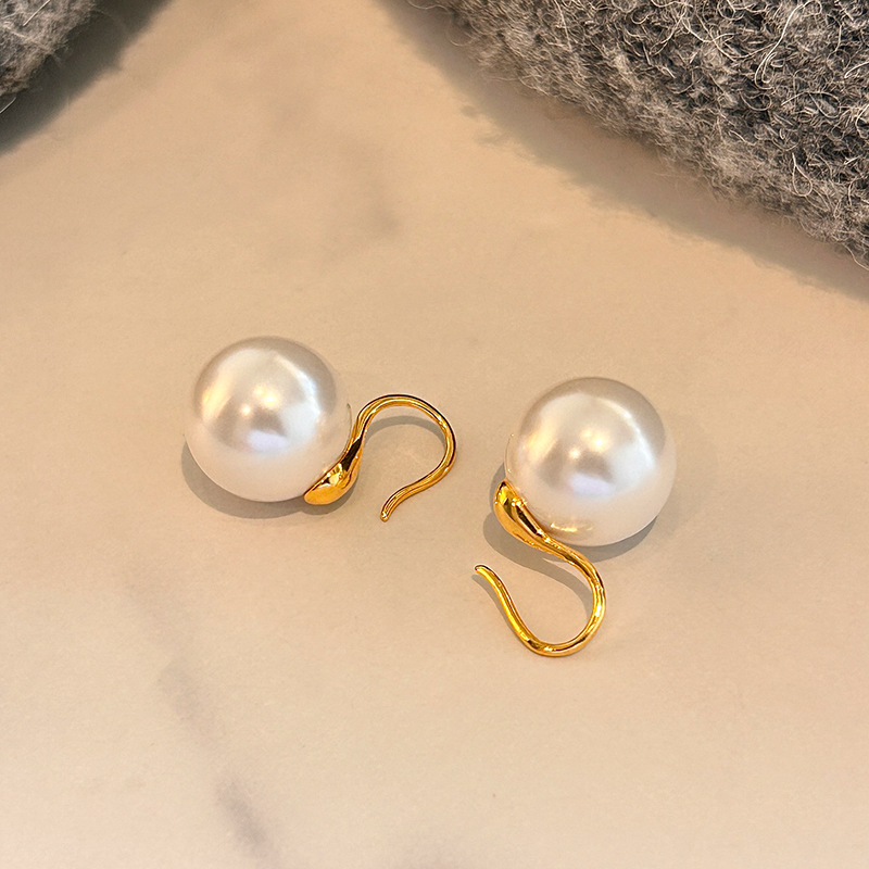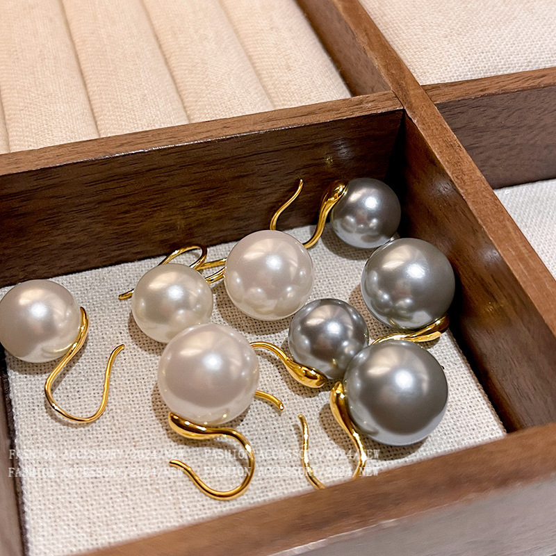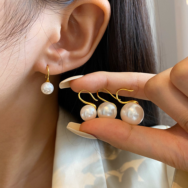 明星同款法式复古施家真多麻珍珠耳环真金电镀天然淡水珍珠耳钉女