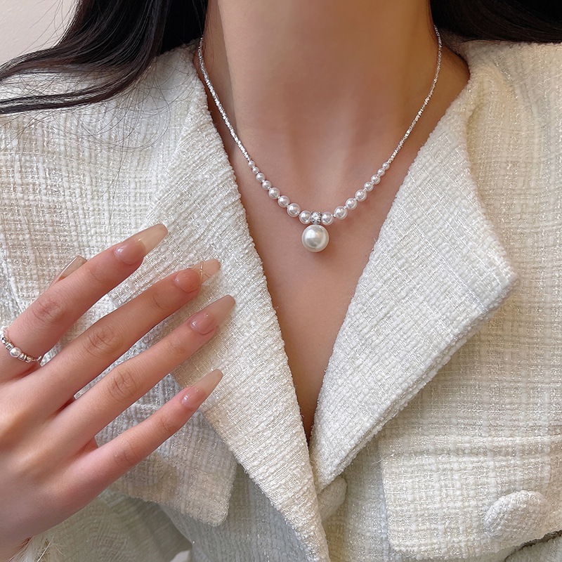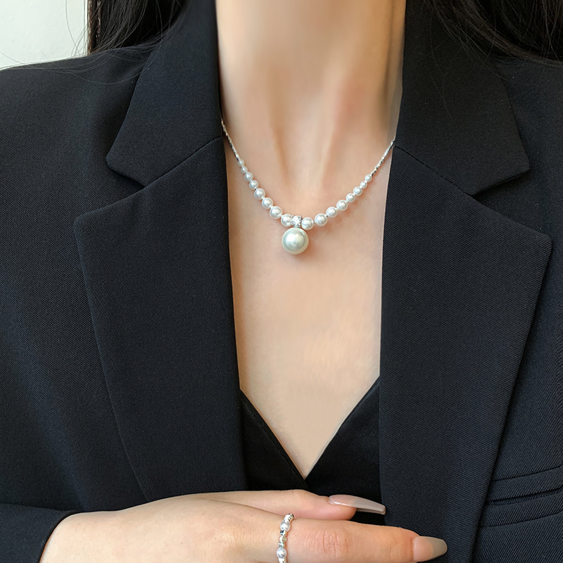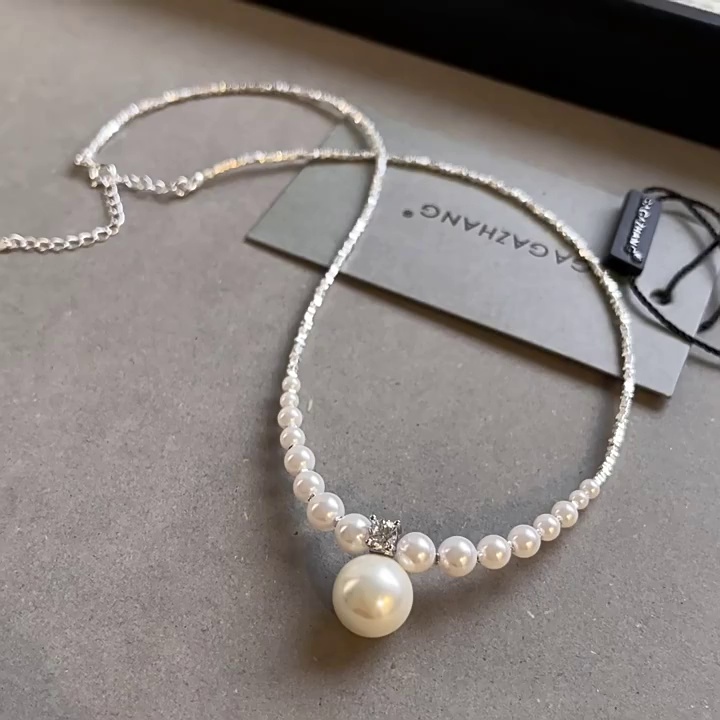 饰品高货5A级锆石颈链天然淡水珍珠项链小众高级感碎银几两锁骨链