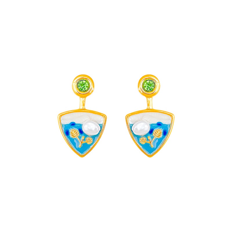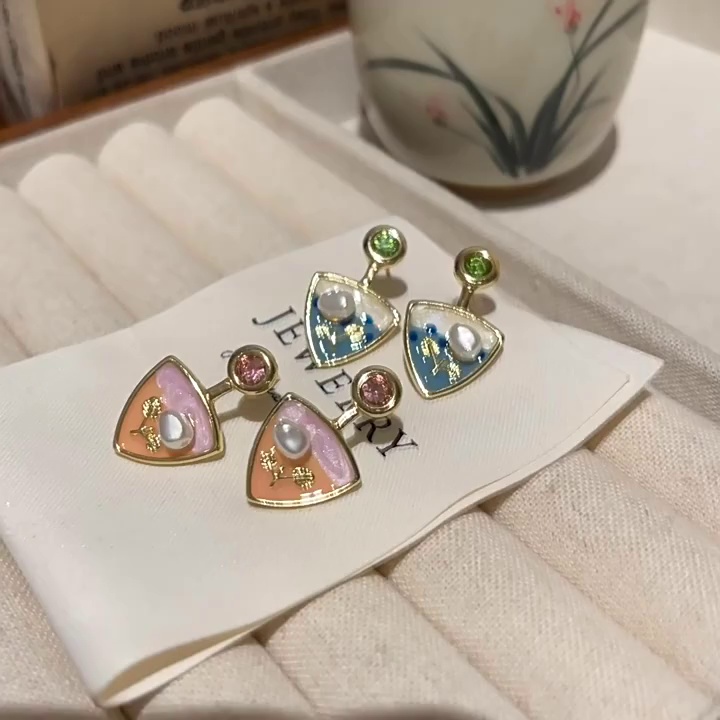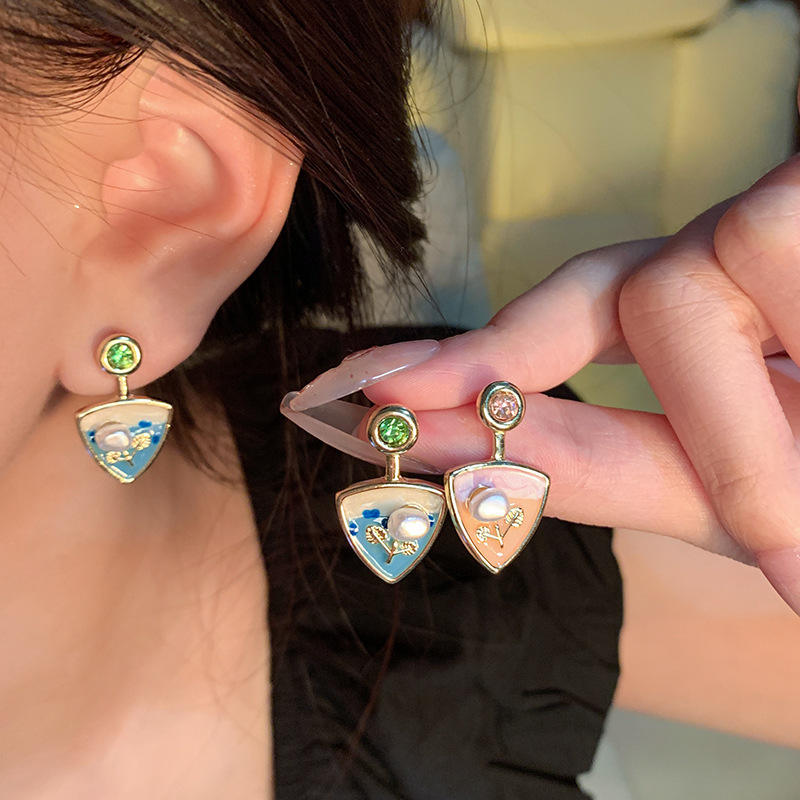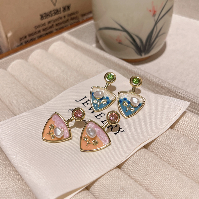 饰品小众宫廷风轻奢复古文艺珍珠耳钉耳饰国潮油画框花朵耳环女