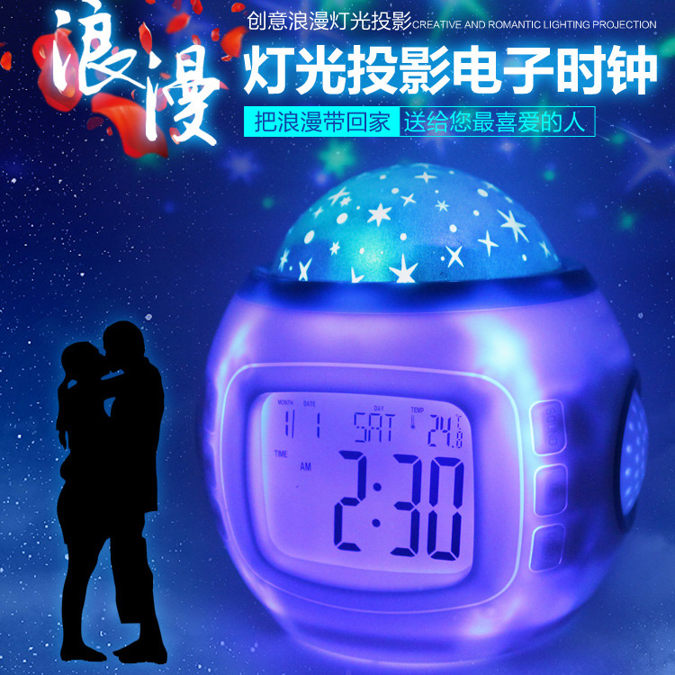 炫彩7色变色儿童促销礼品多功能万年历音乐星空投影钟 七彩氛围灯
