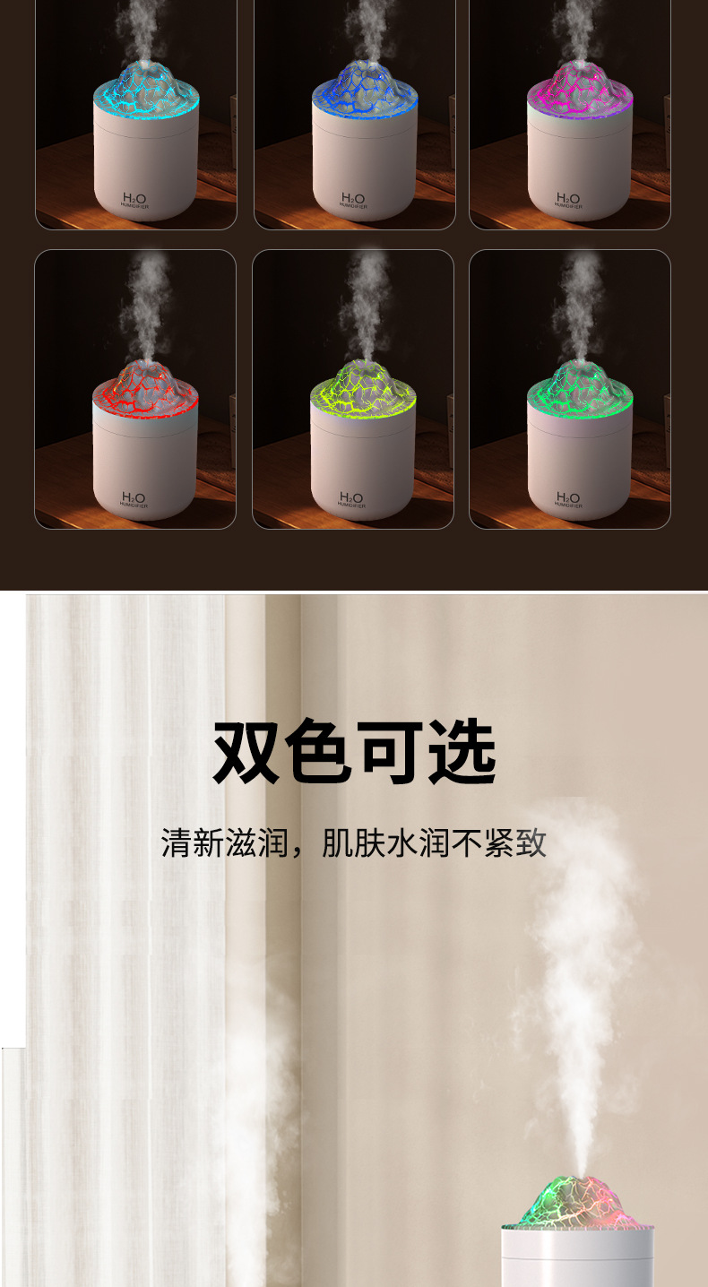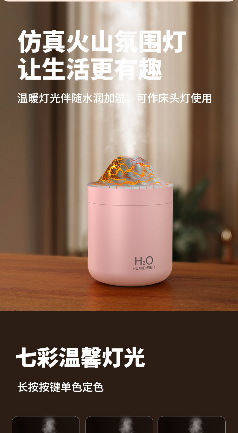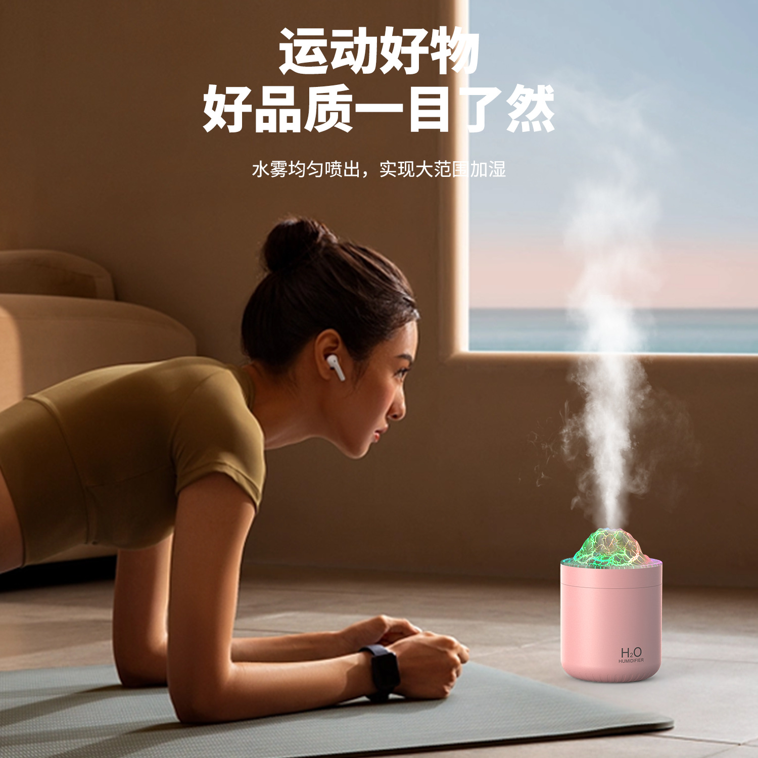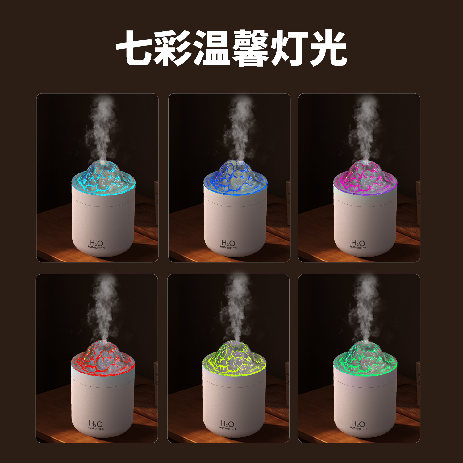 新款跨境火山加湿器 创意氛围小夜灯大容量喷雾火焰加湿器