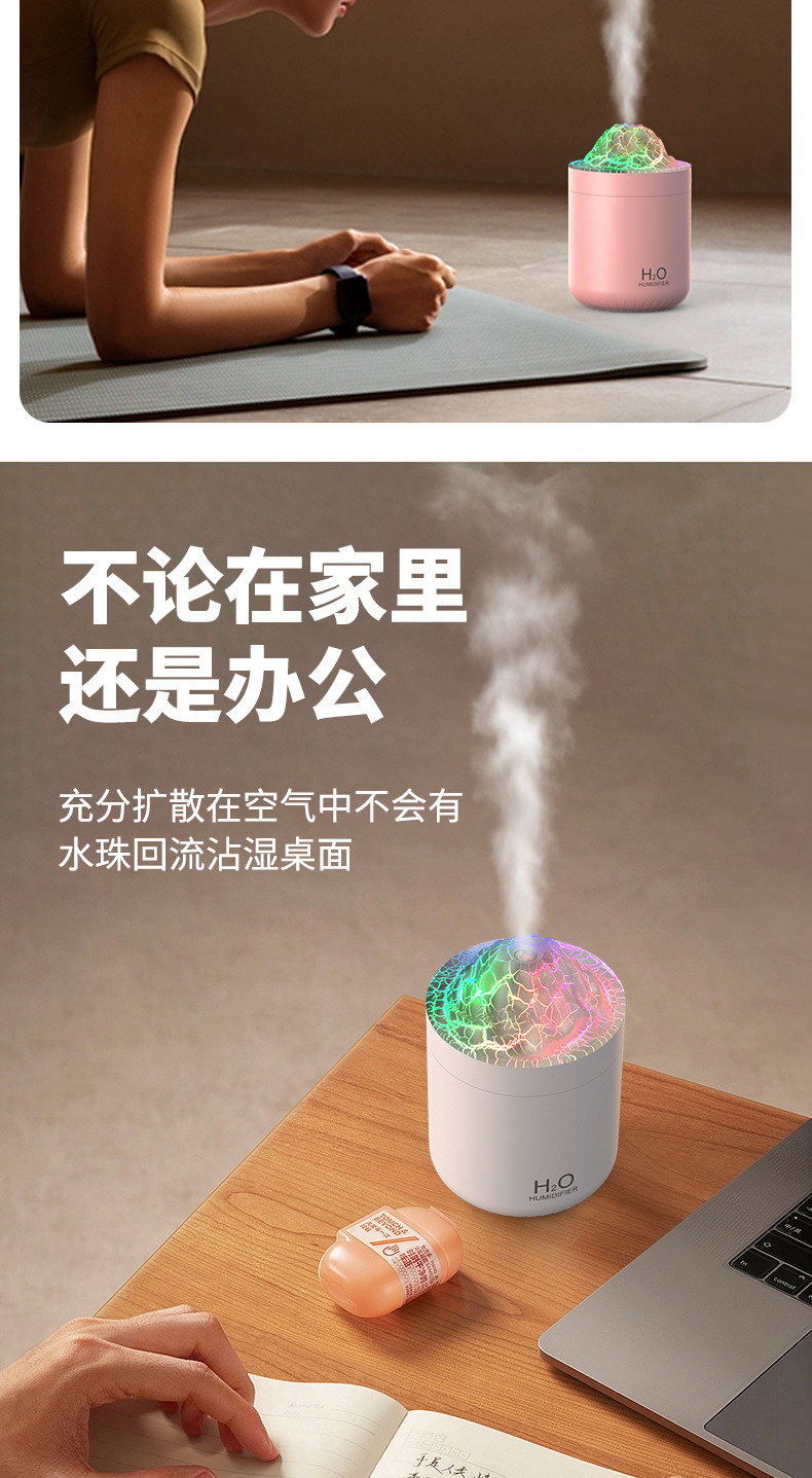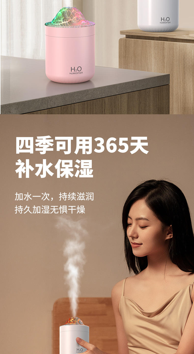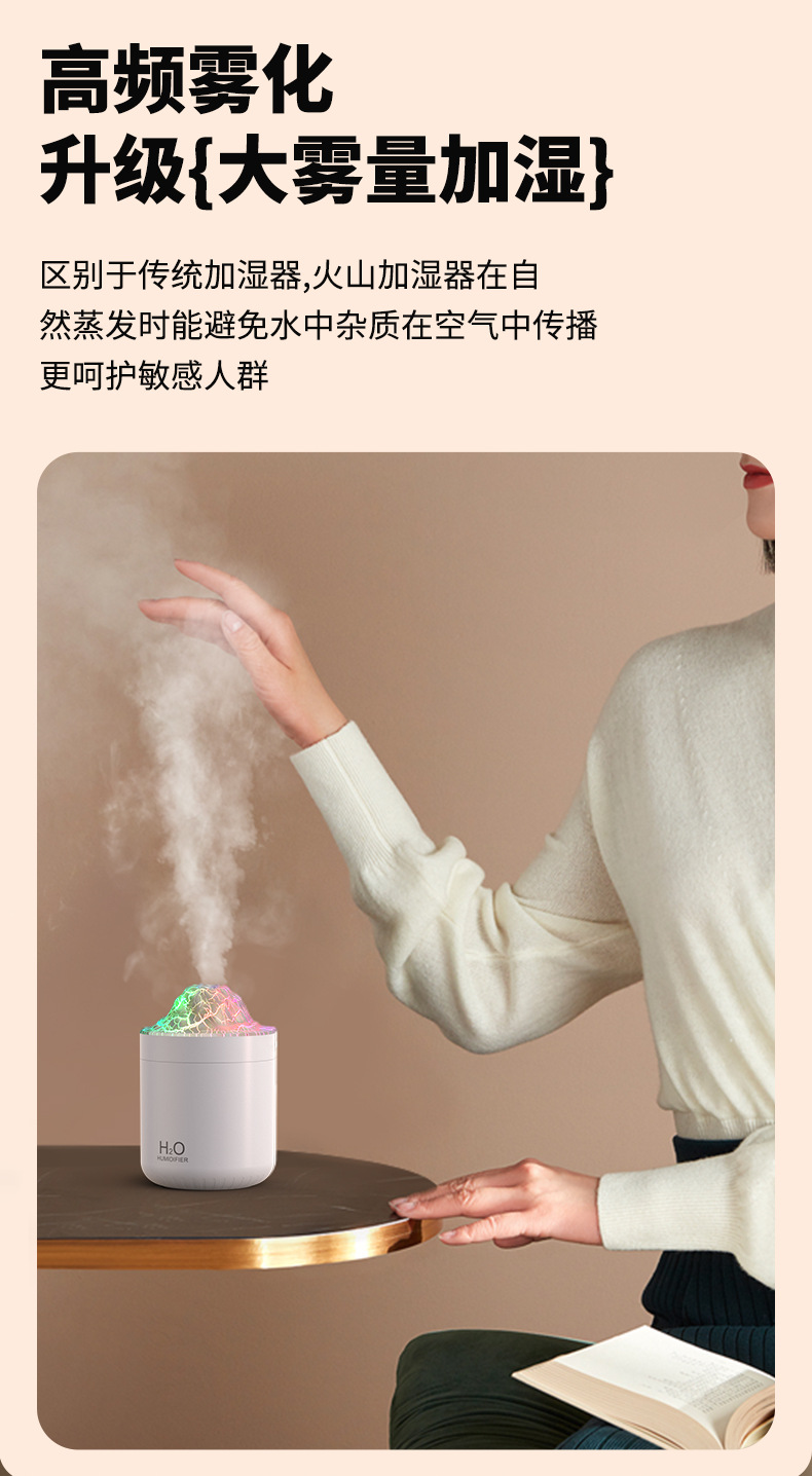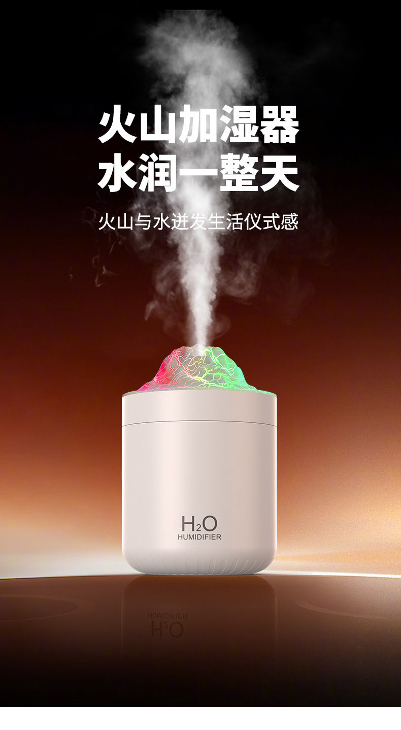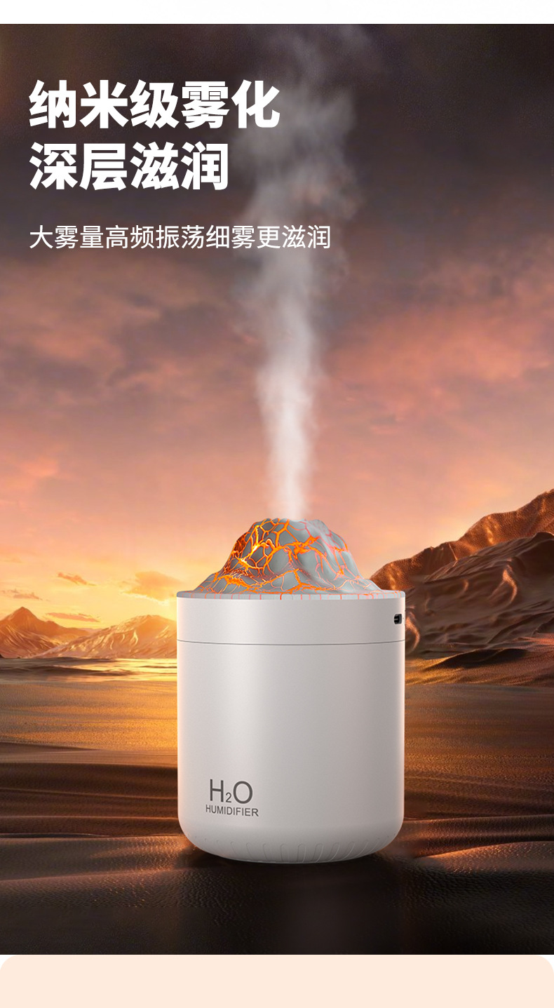 新款跨境火山加湿器 创意氛围小夜灯大容量喷雾火焰加湿器