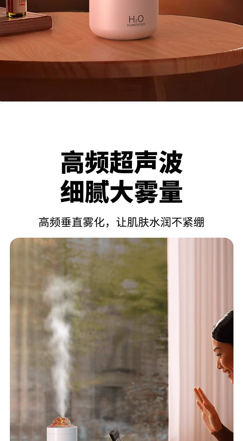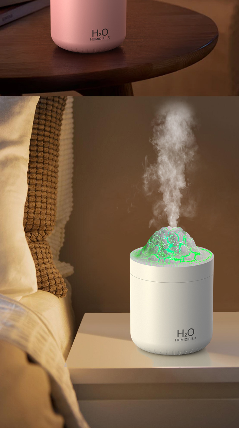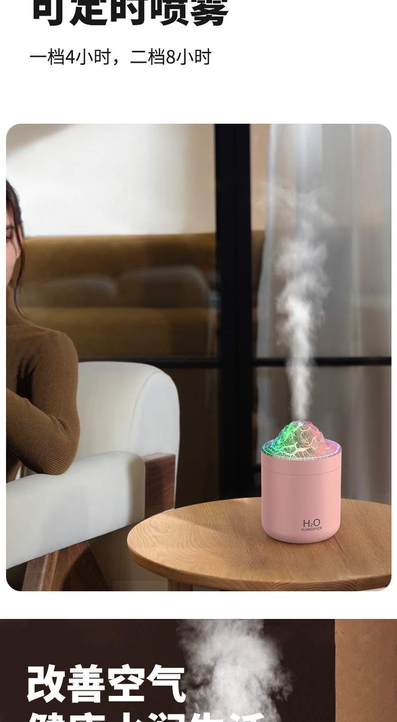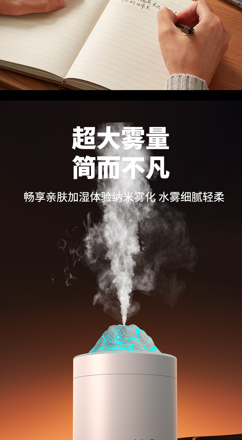 新款跨境火山加湿器 创意氛围小夜灯大容量喷雾火焰加湿器