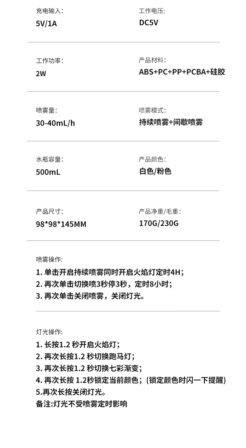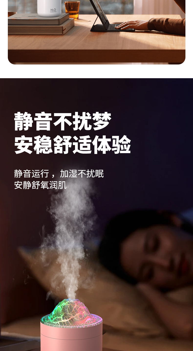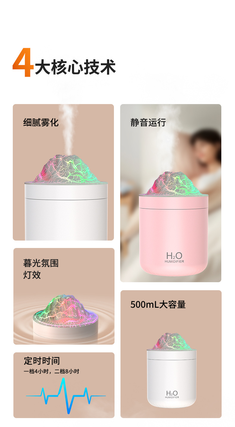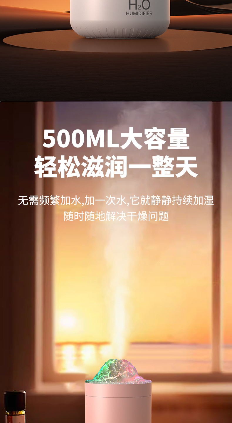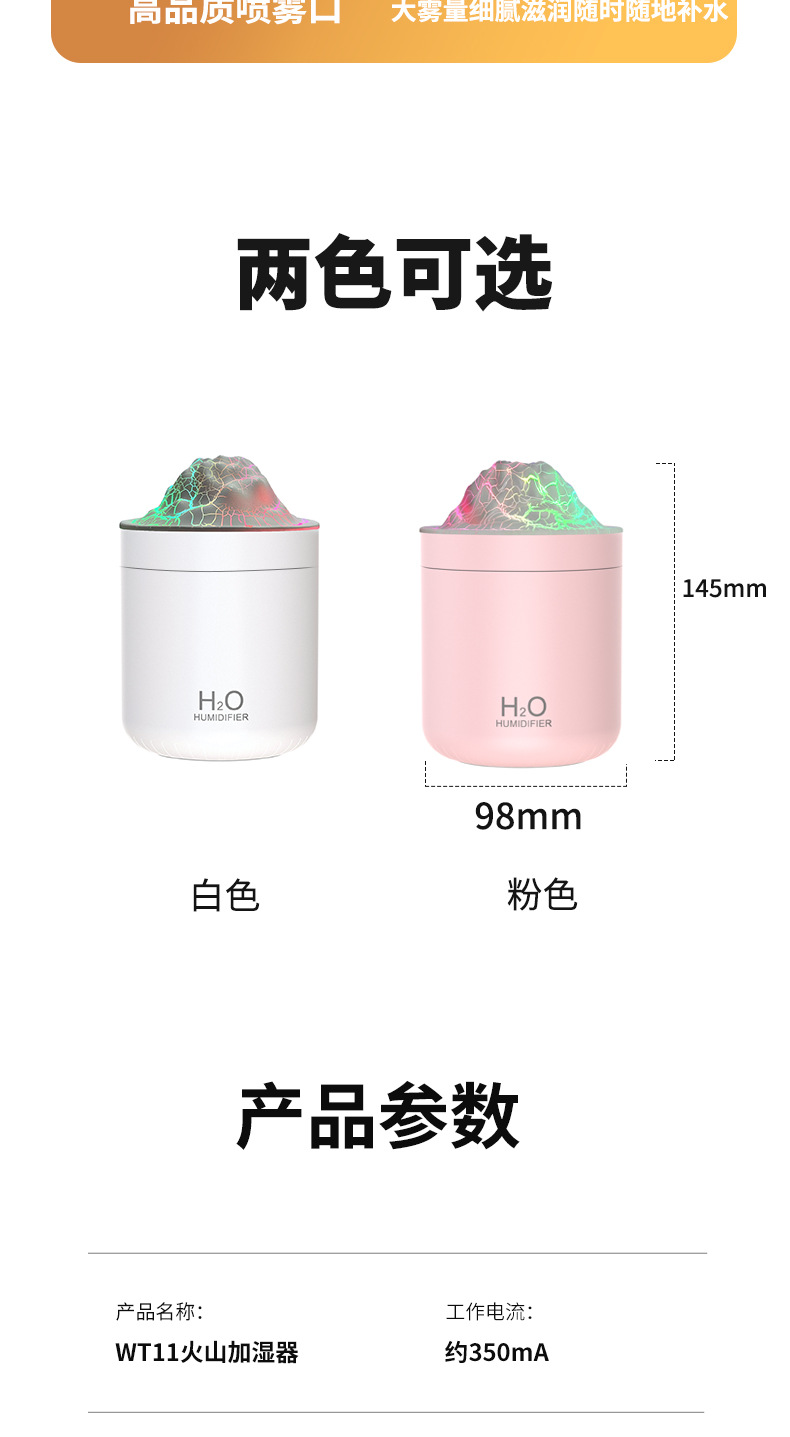 新款跨境火山加湿器 创意氛围小夜灯大容量喷雾火焰加湿器