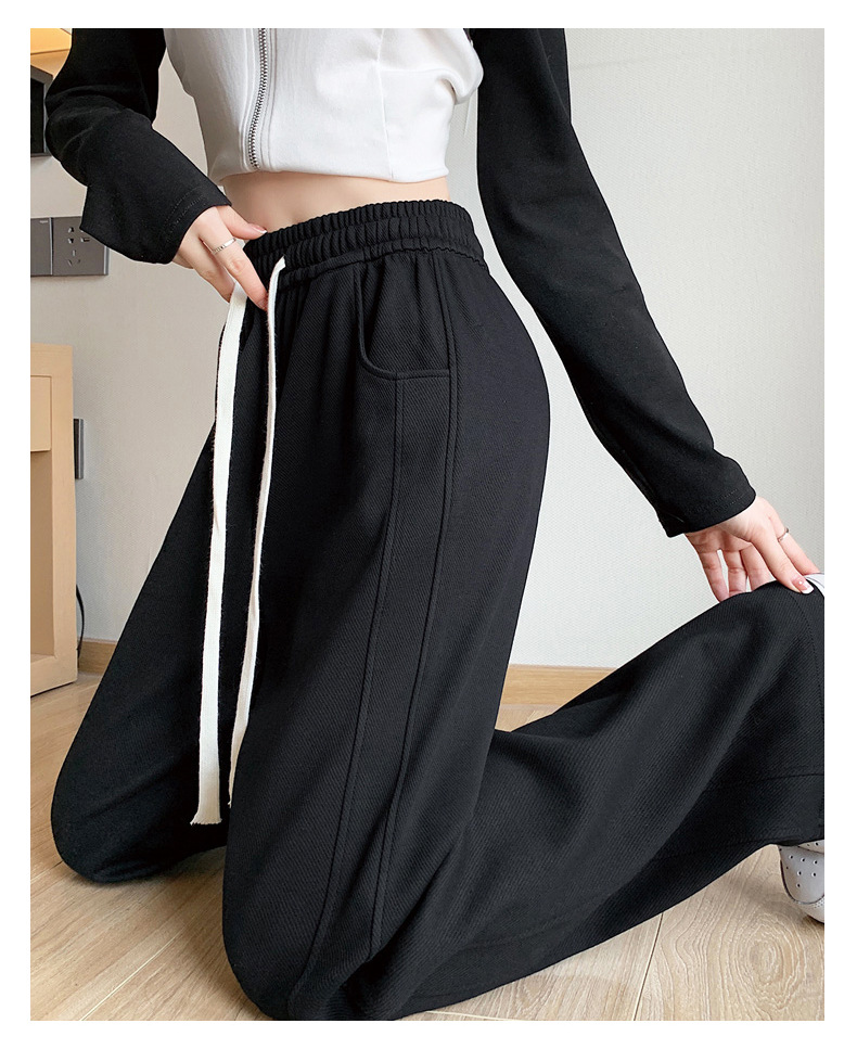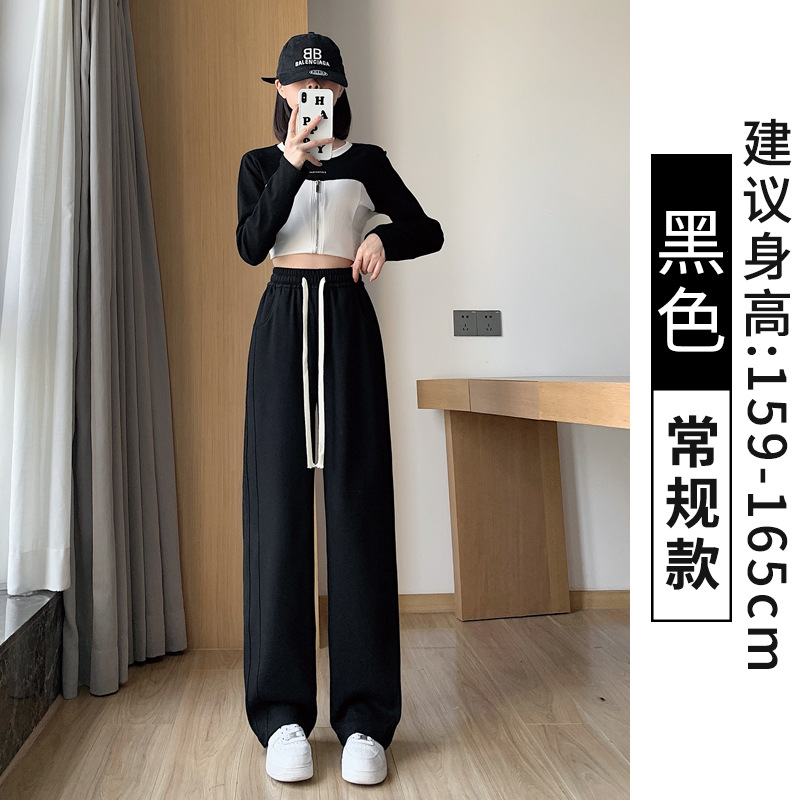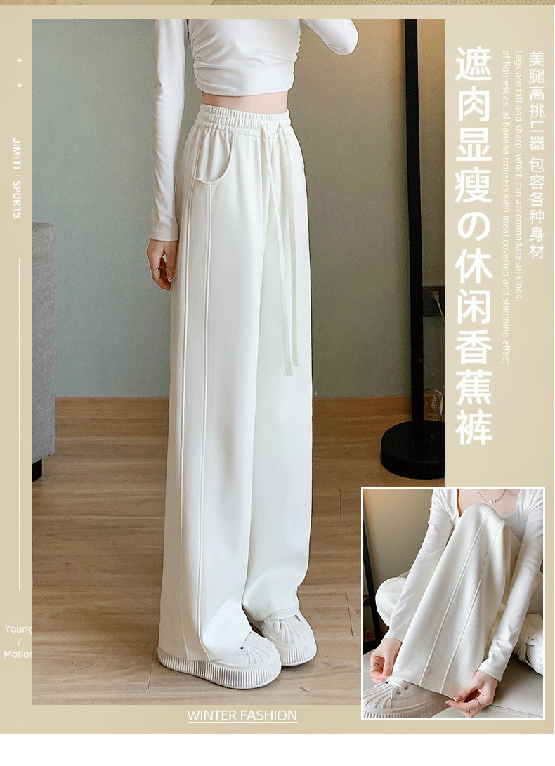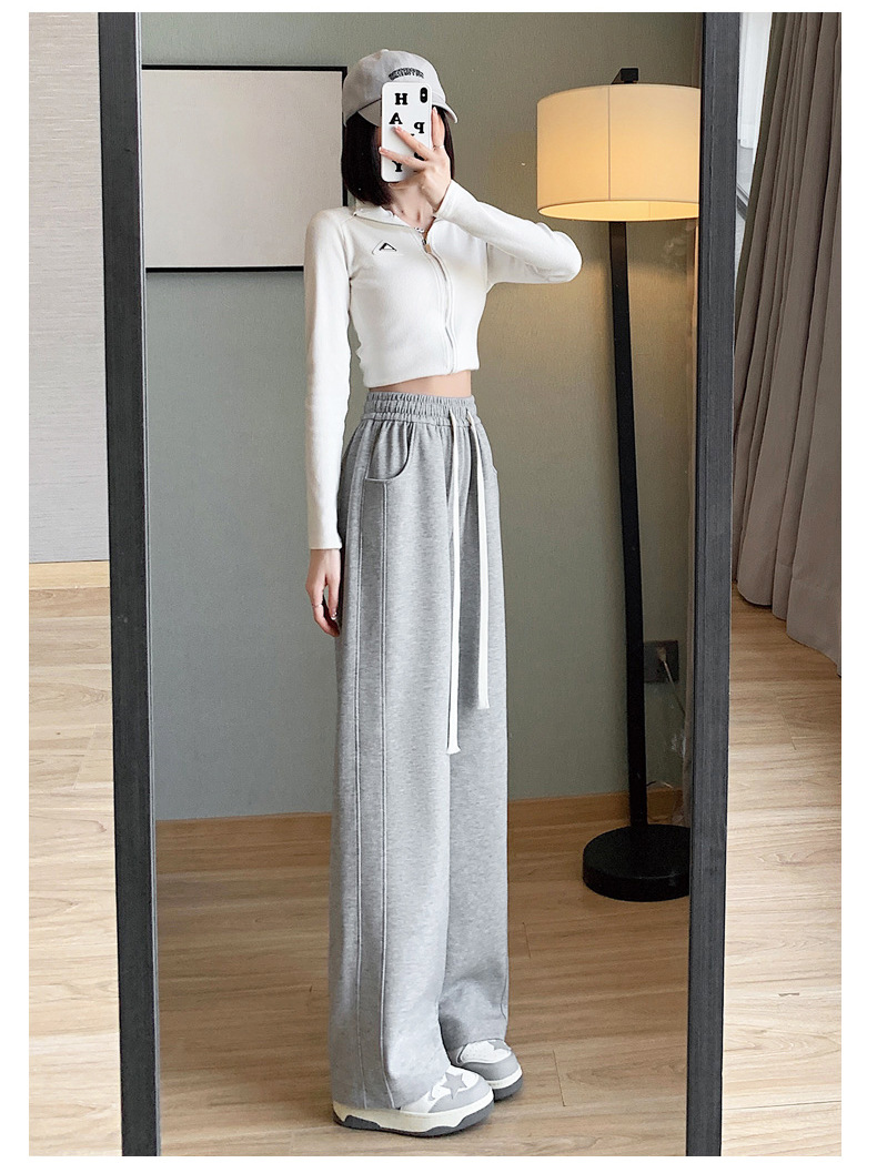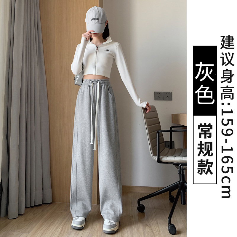 灰色运动裤女春秋2024新款高腰垂感宽松直筒香蕉裤休闲显瘦阔腿裤