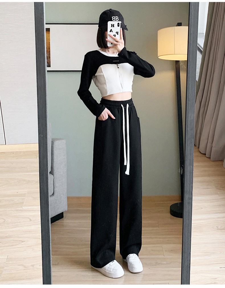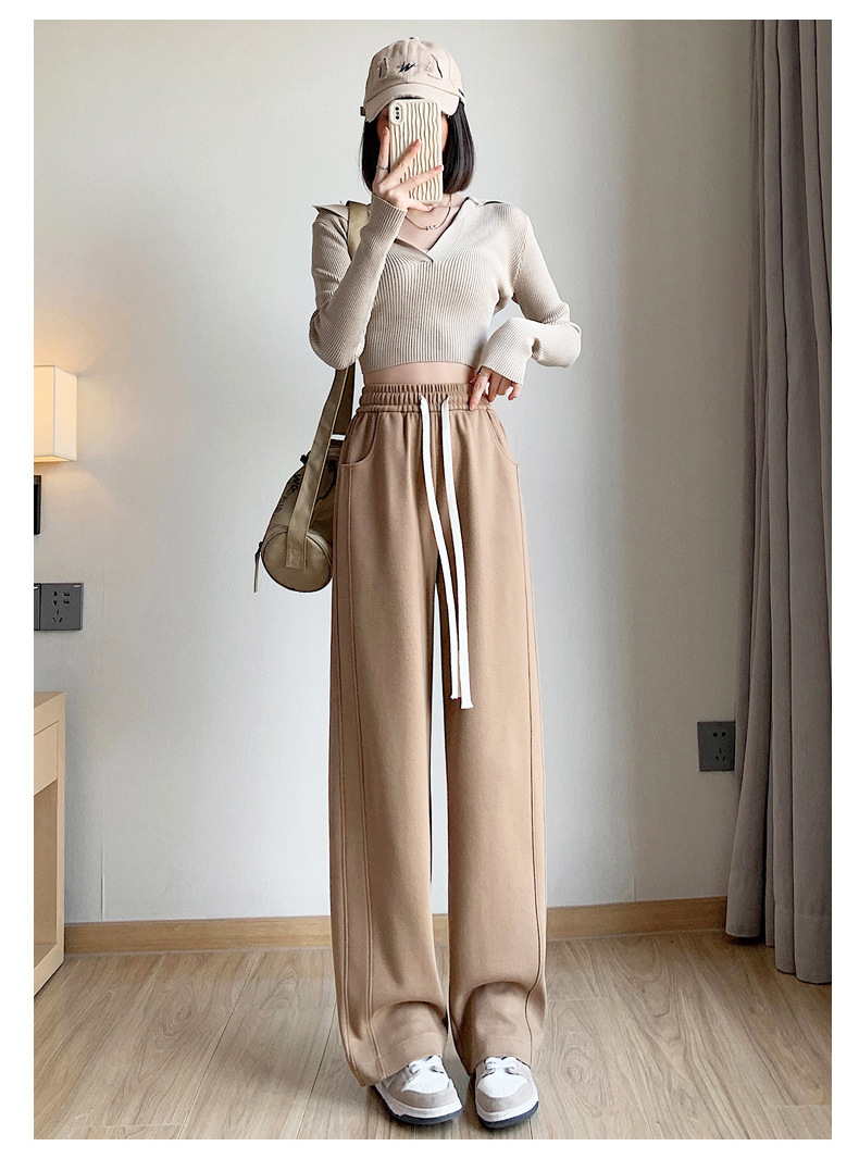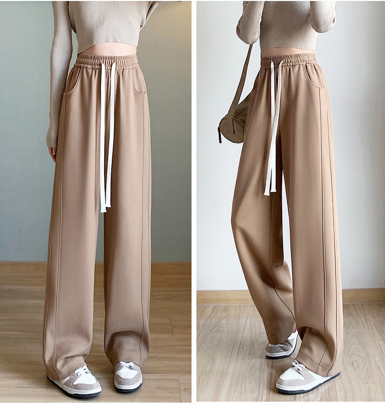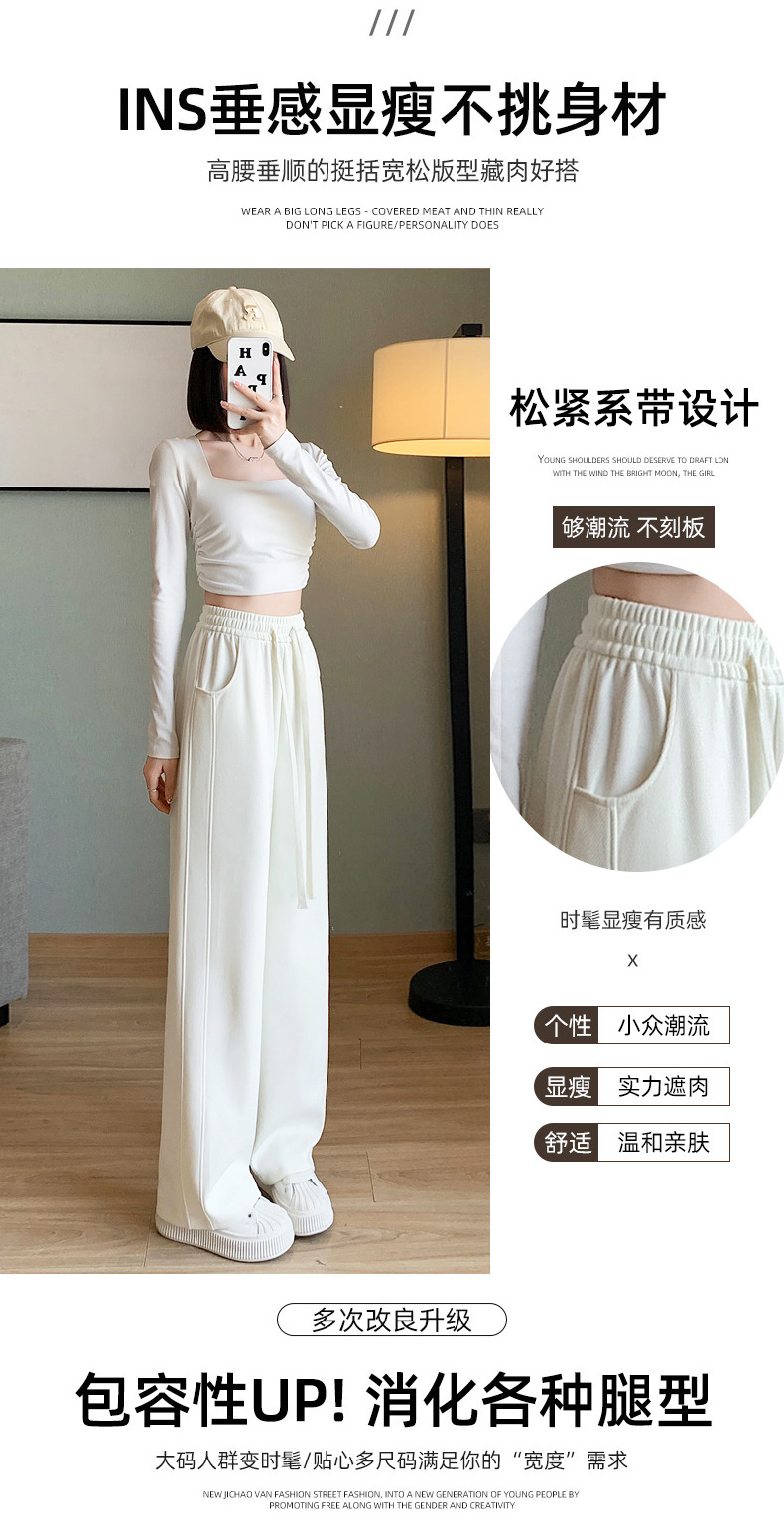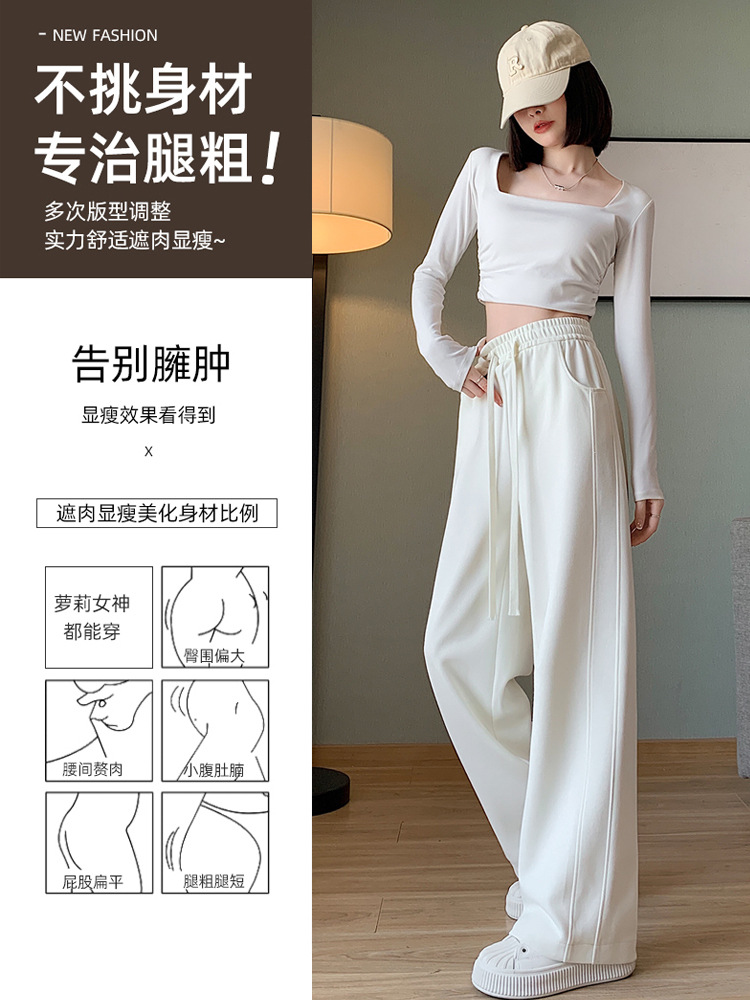 灰色运动裤女春秋2024新款高腰垂感宽松直筒香蕉裤休闲显瘦阔腿裤