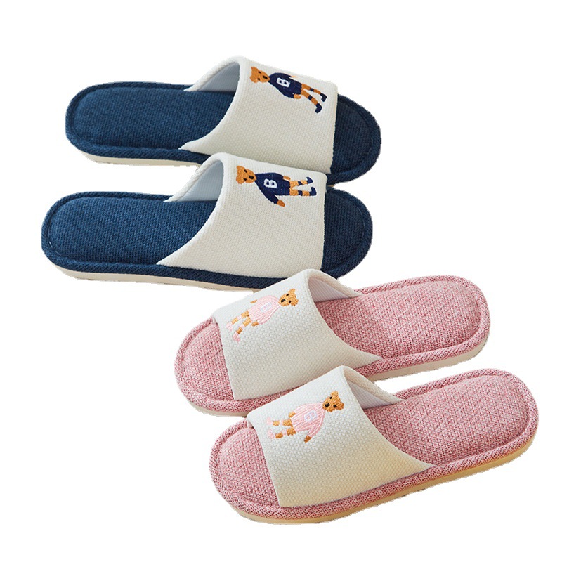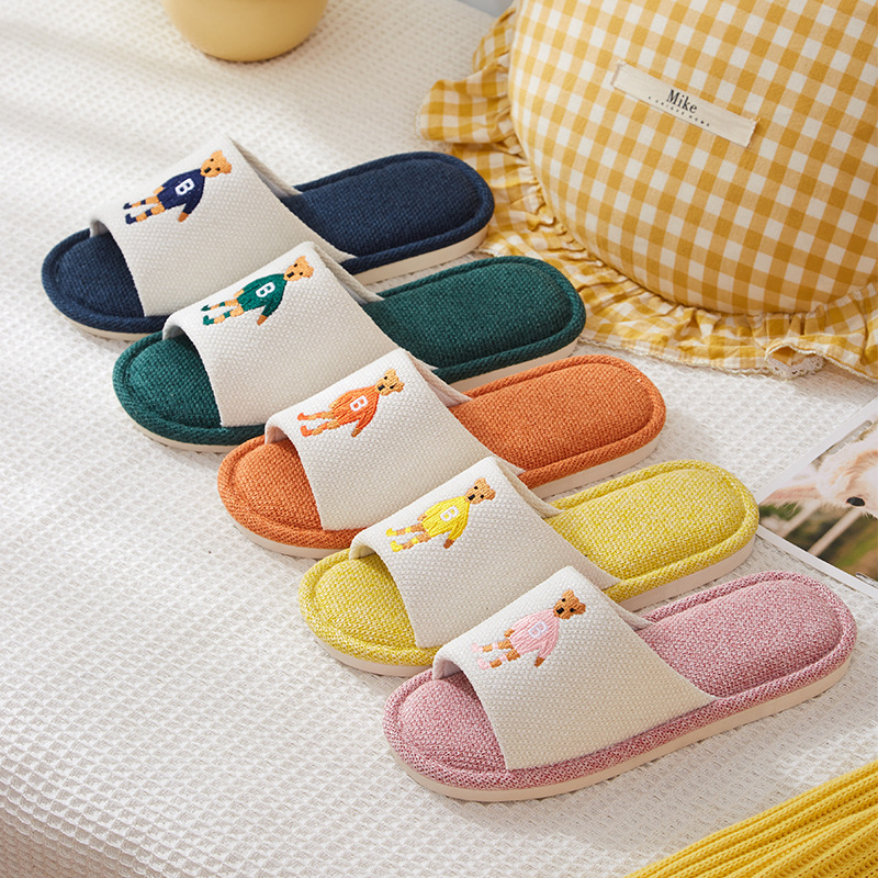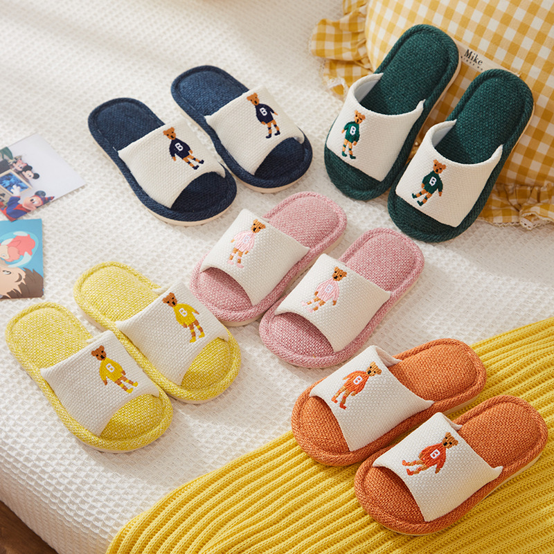 卡通亲子拖鞋家居批发亚麻夏季防滑一家三口足球人棉麻地板拖批发