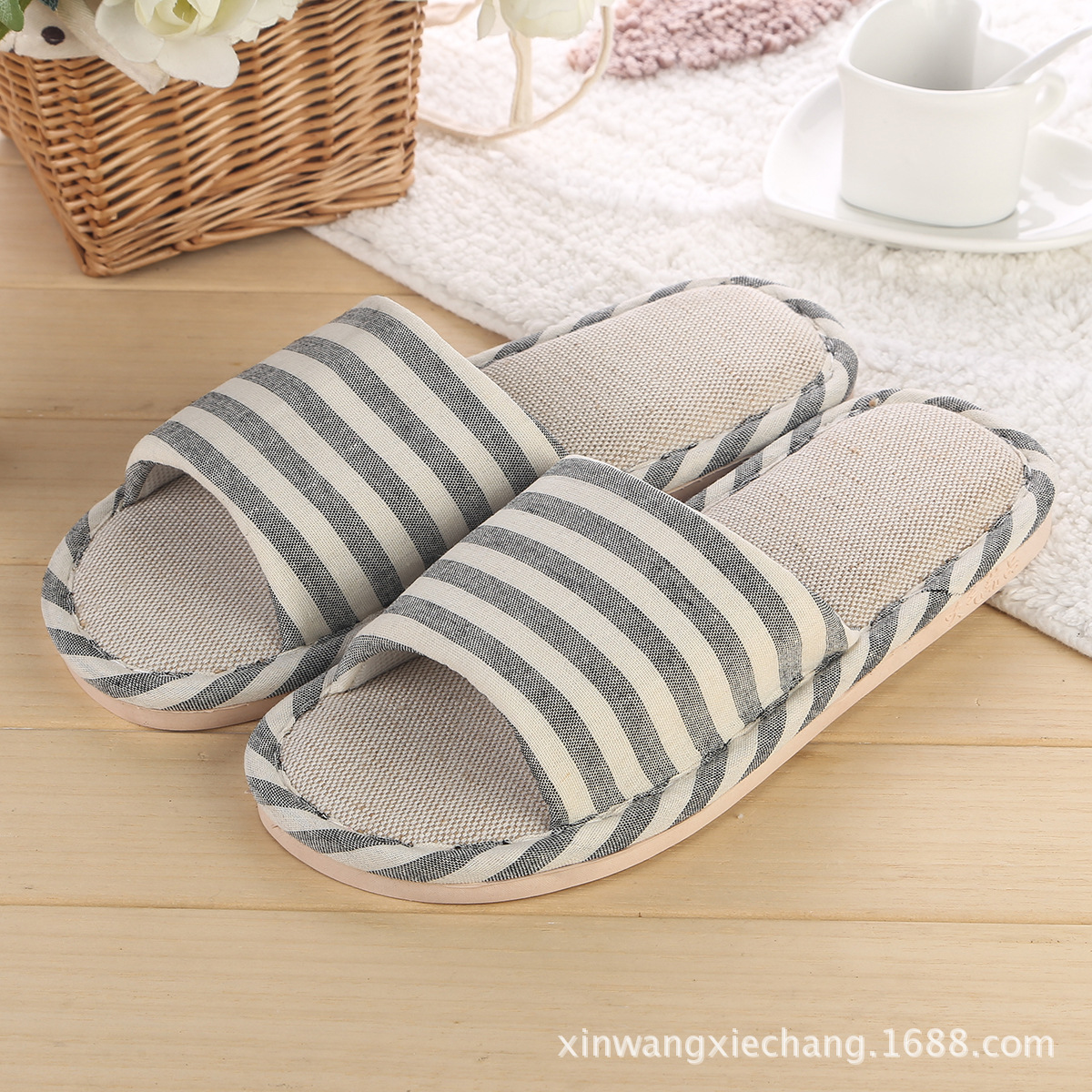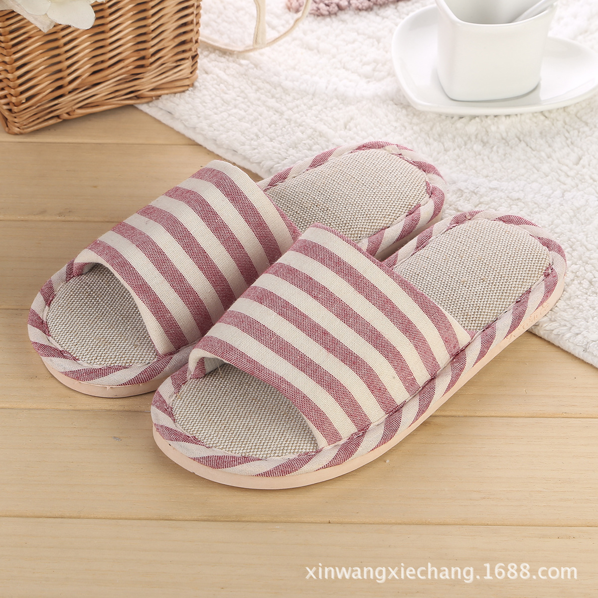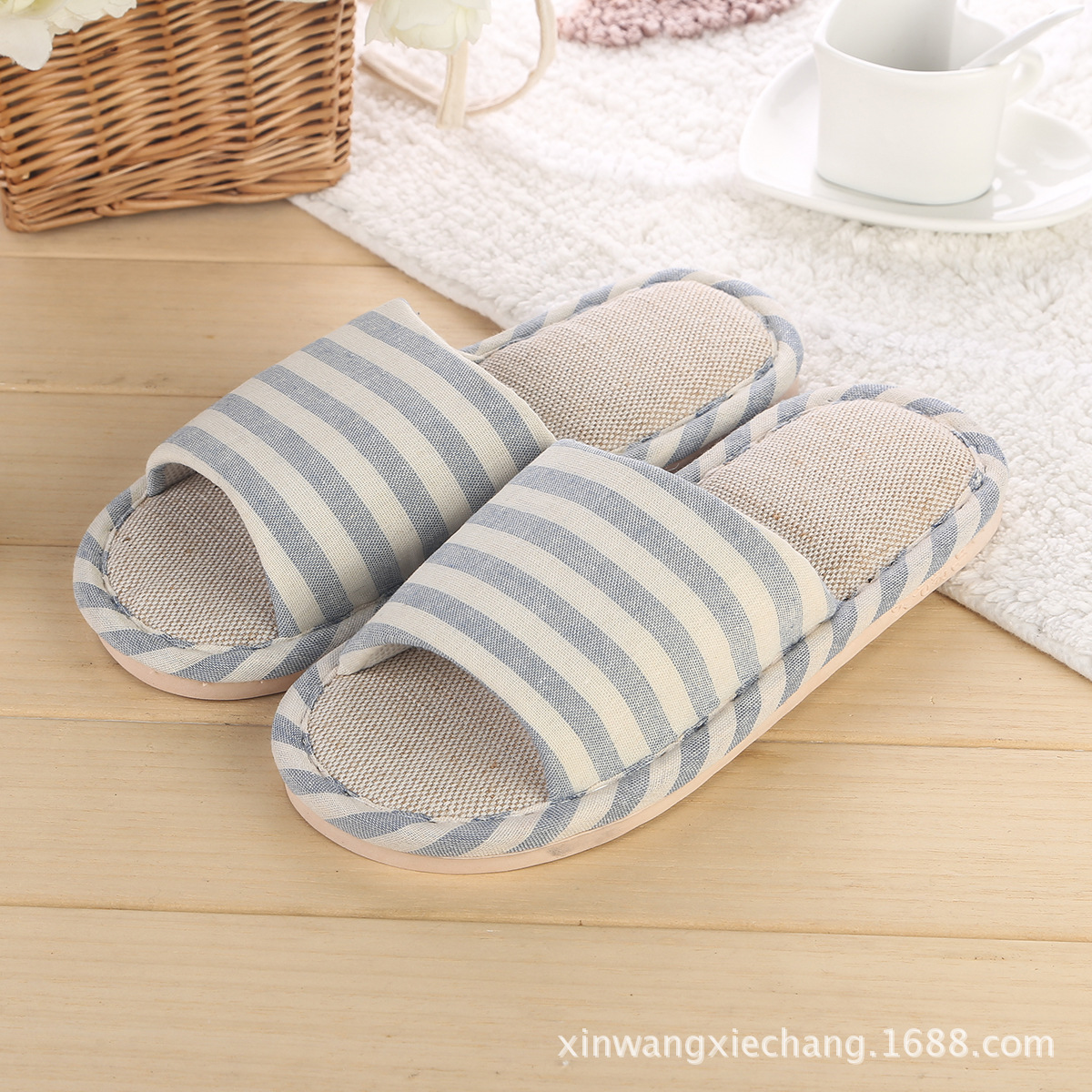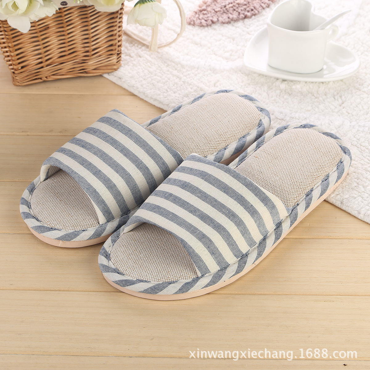 日式男女情侣条纹亚麻拖鞋四季室内家居防滑厚底棉拖居家地板凉拖