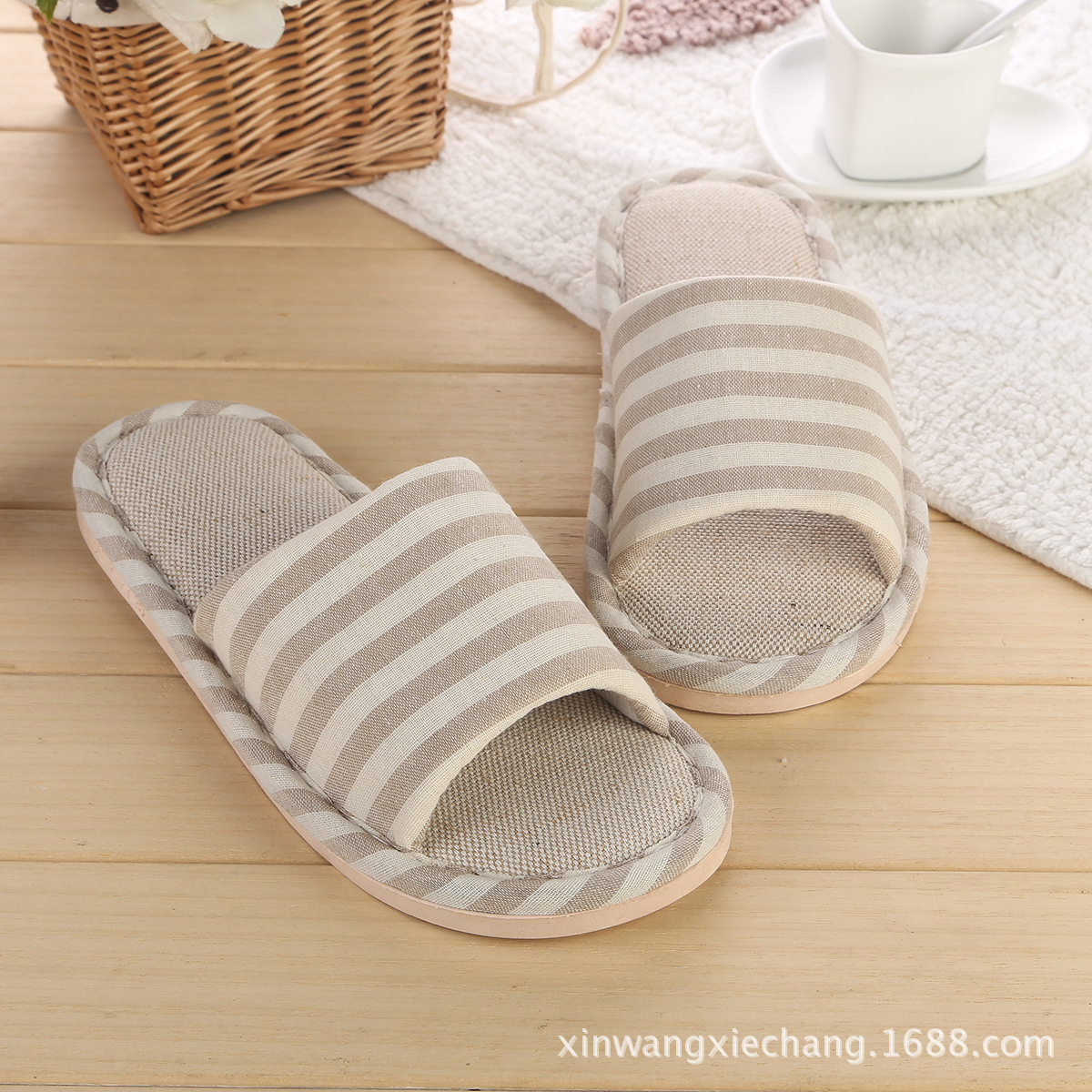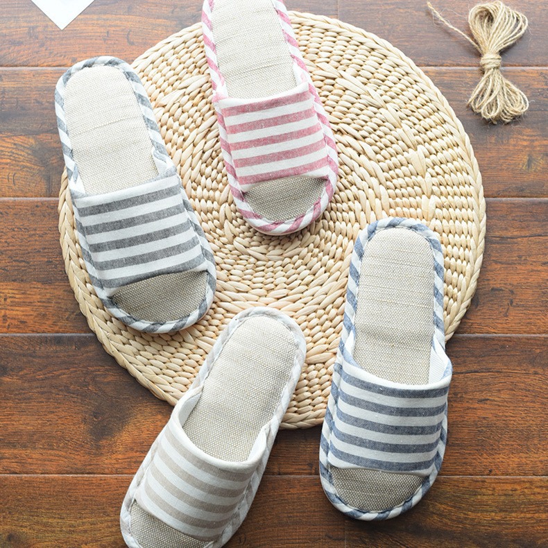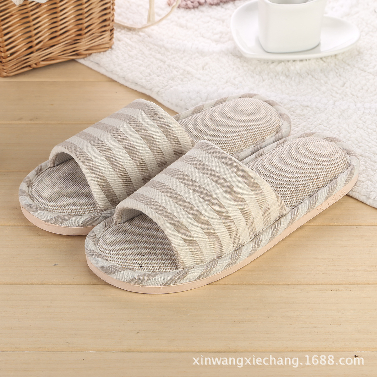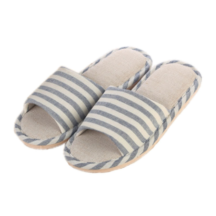 日式男女情侣条纹亚麻拖鞋四季室内家居防滑厚底棉拖居家地板凉拖