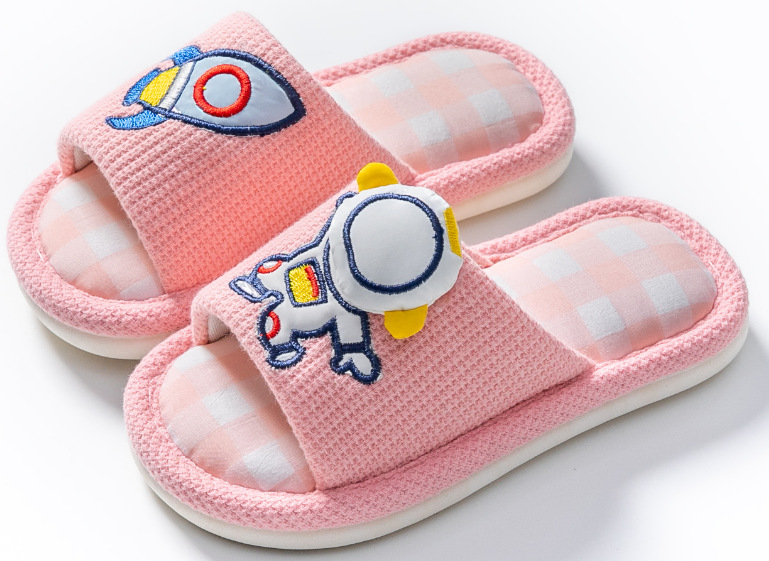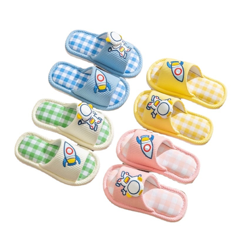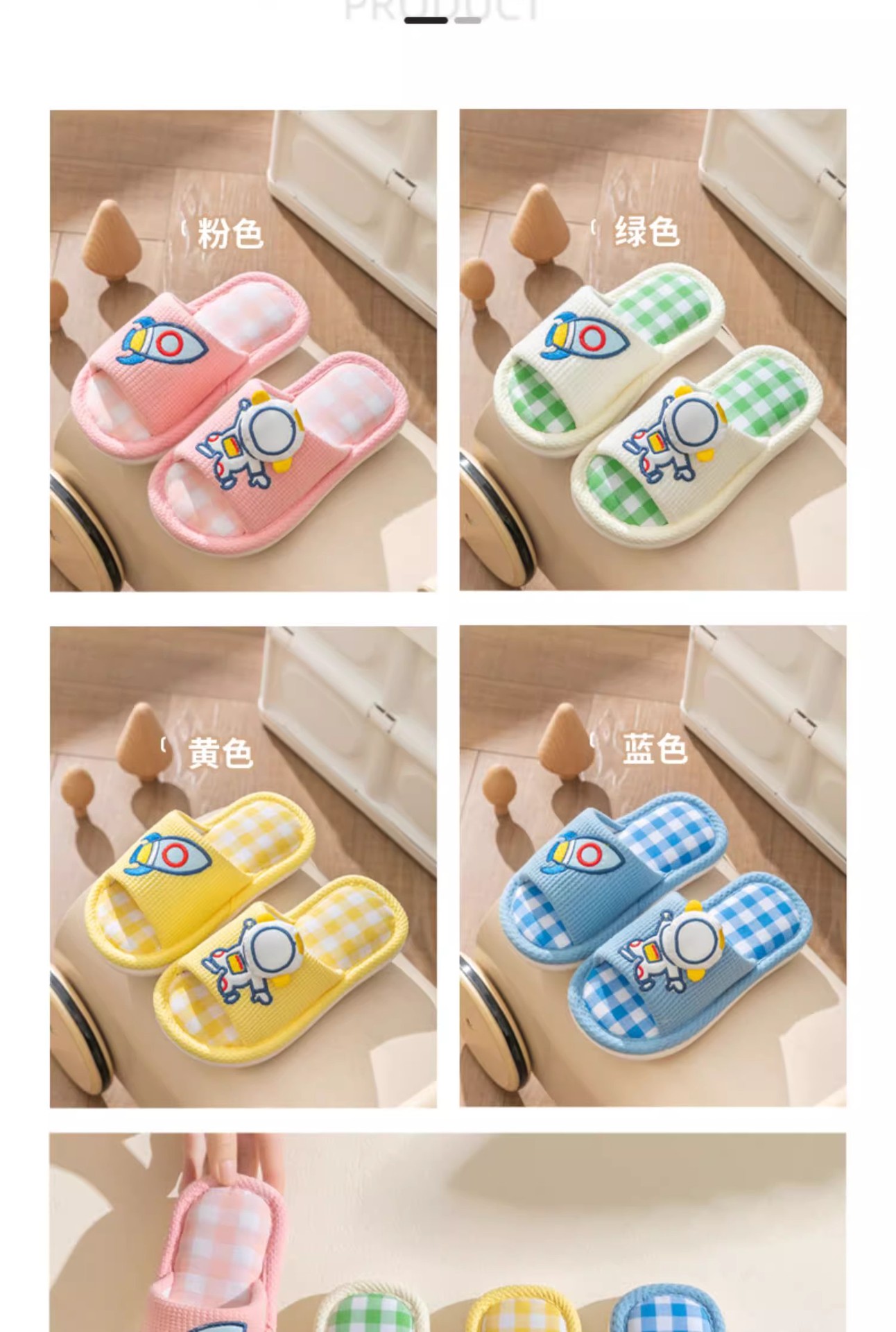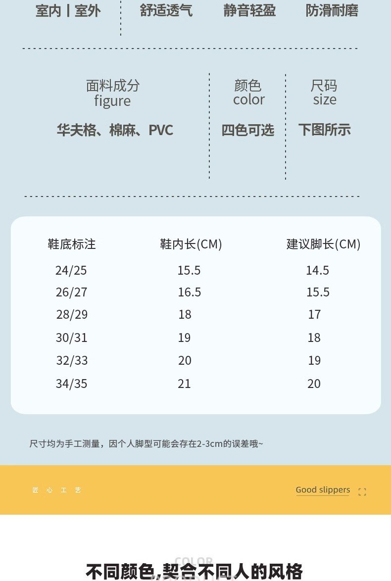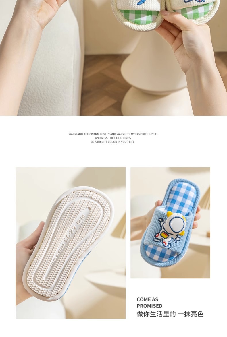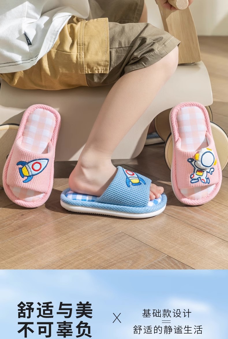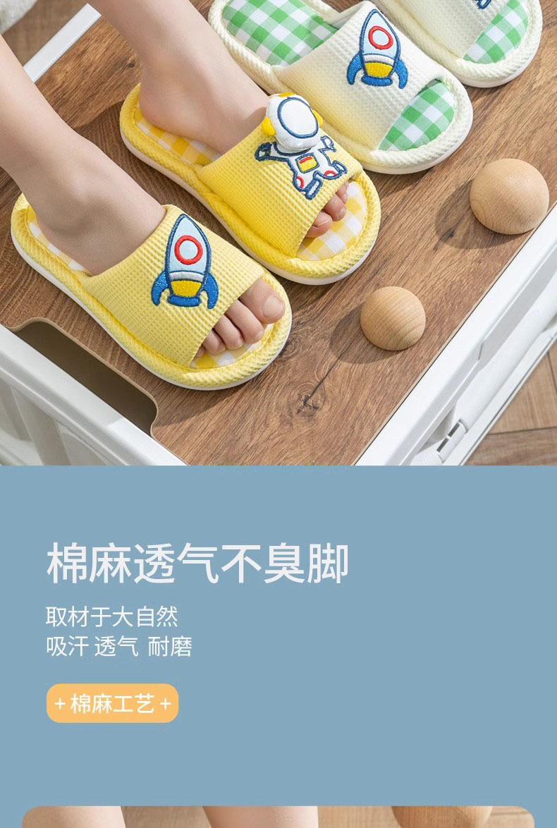 鑫旺卡通亚麻拖鞋儿童四季居家木地板家用静音棉麻布吸汗拖鞋披发