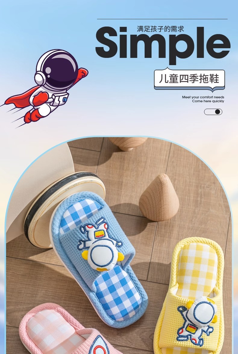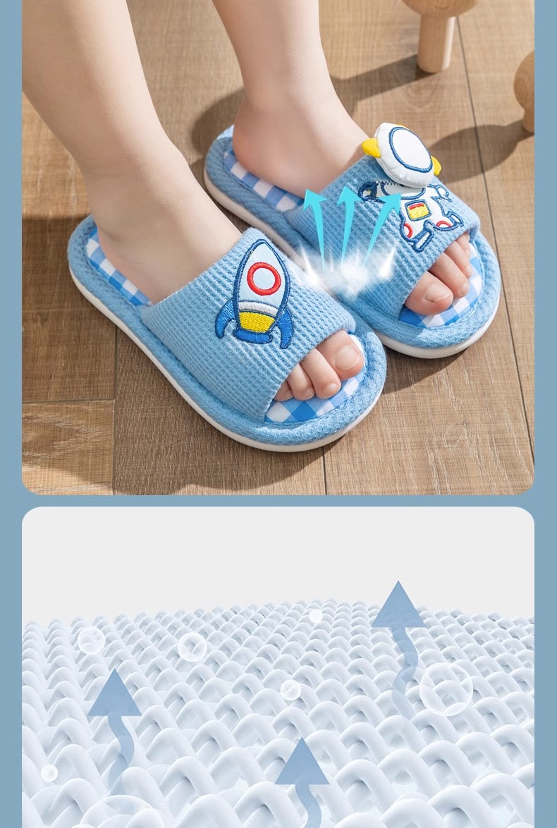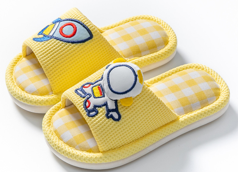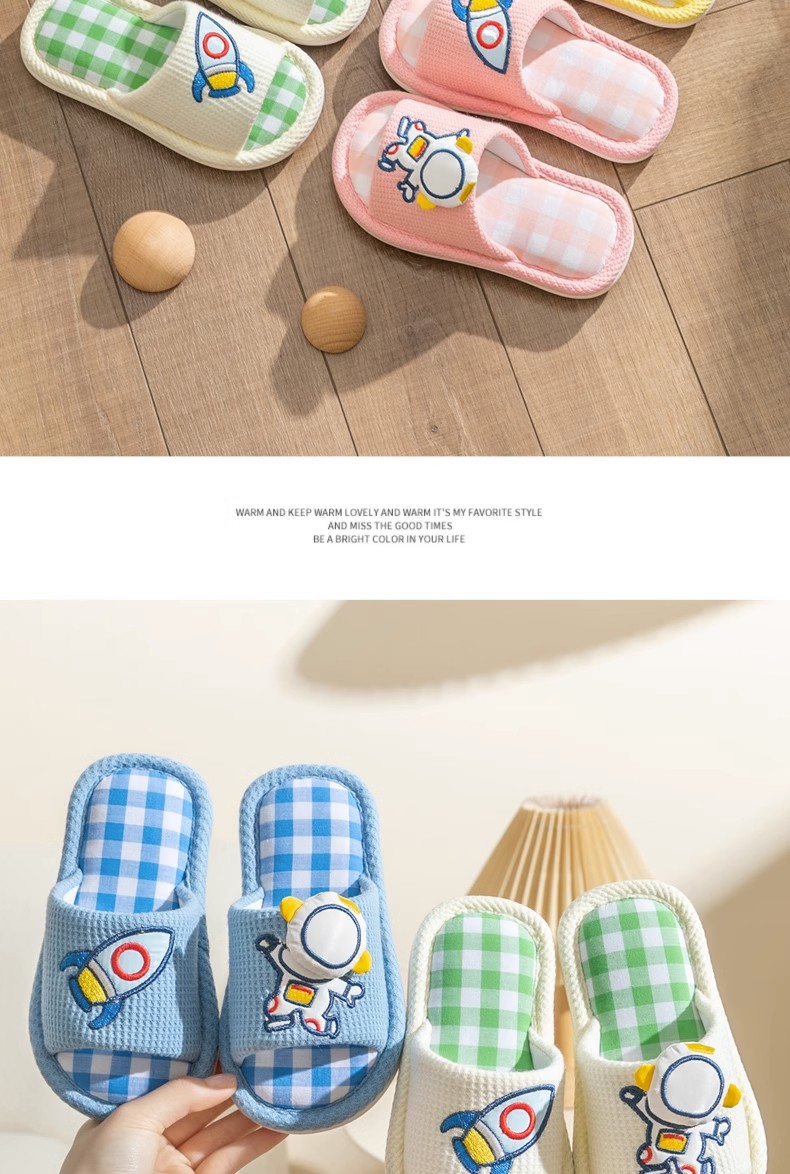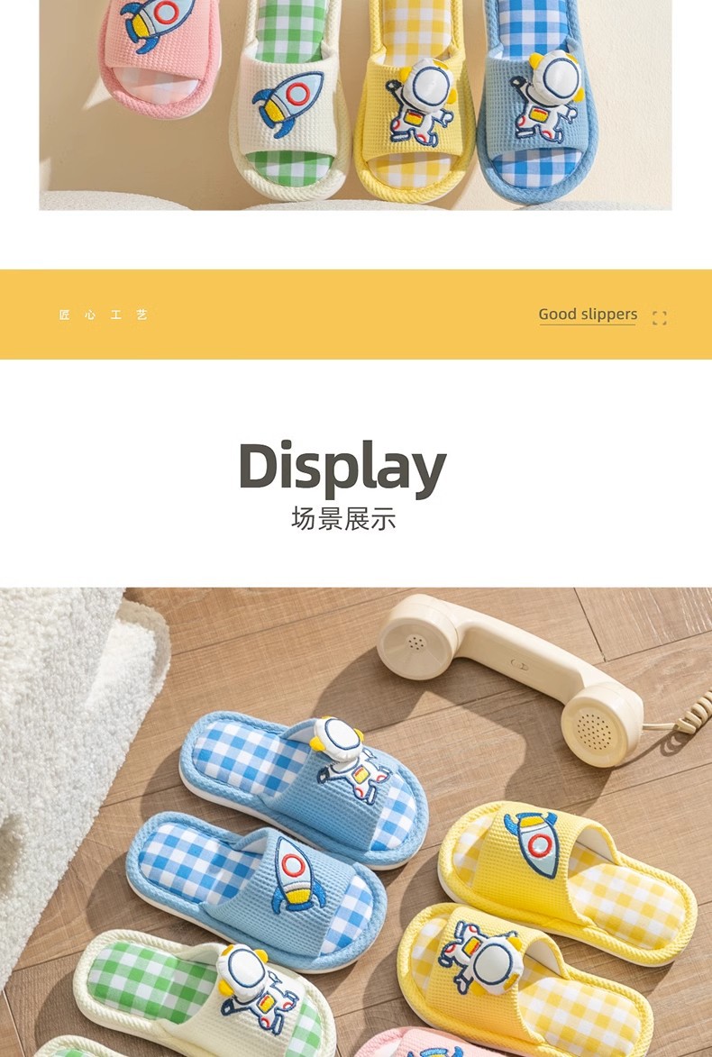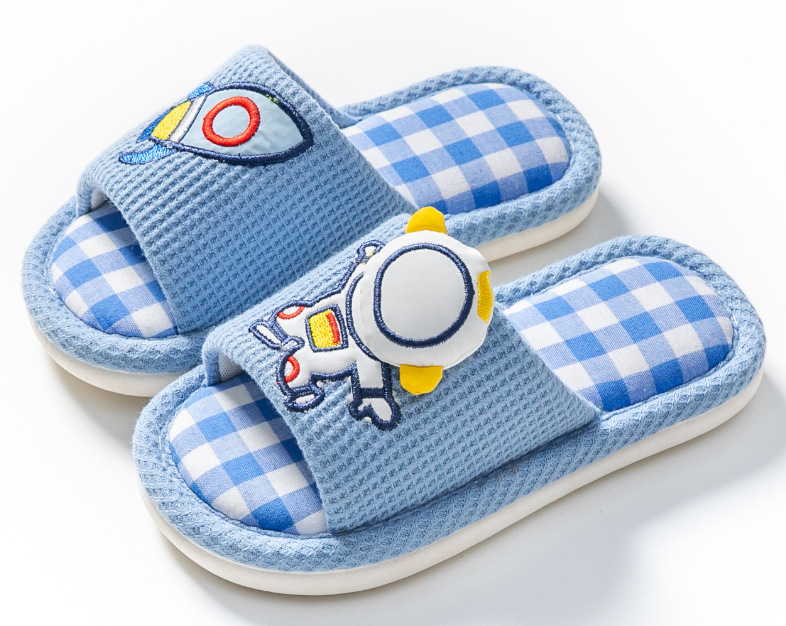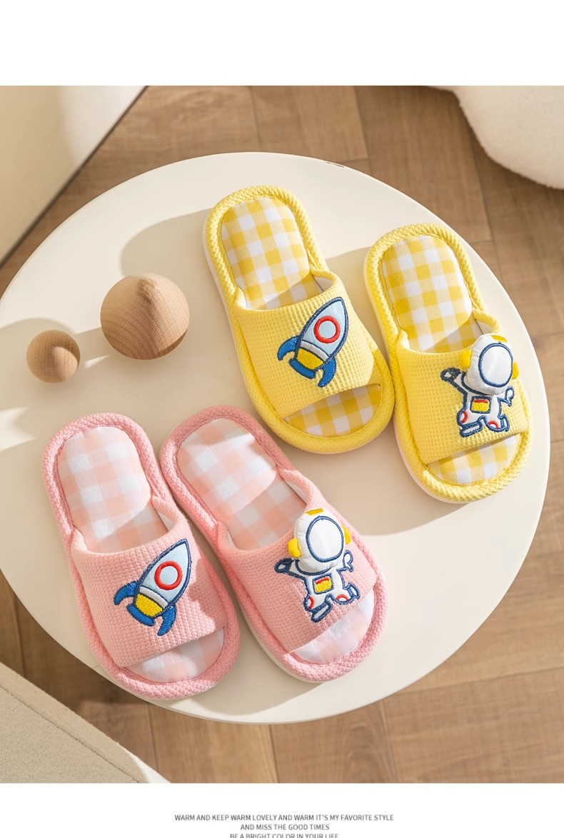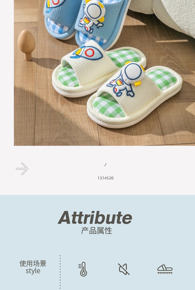鑫旺卡通亚麻拖鞋儿童四季居家木地板家用静音棉麻布吸汗拖鞋披发