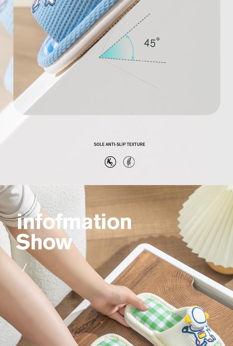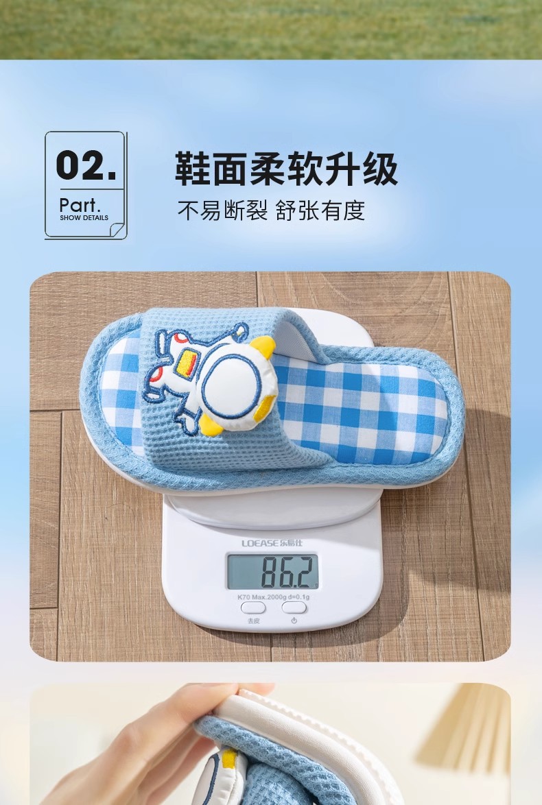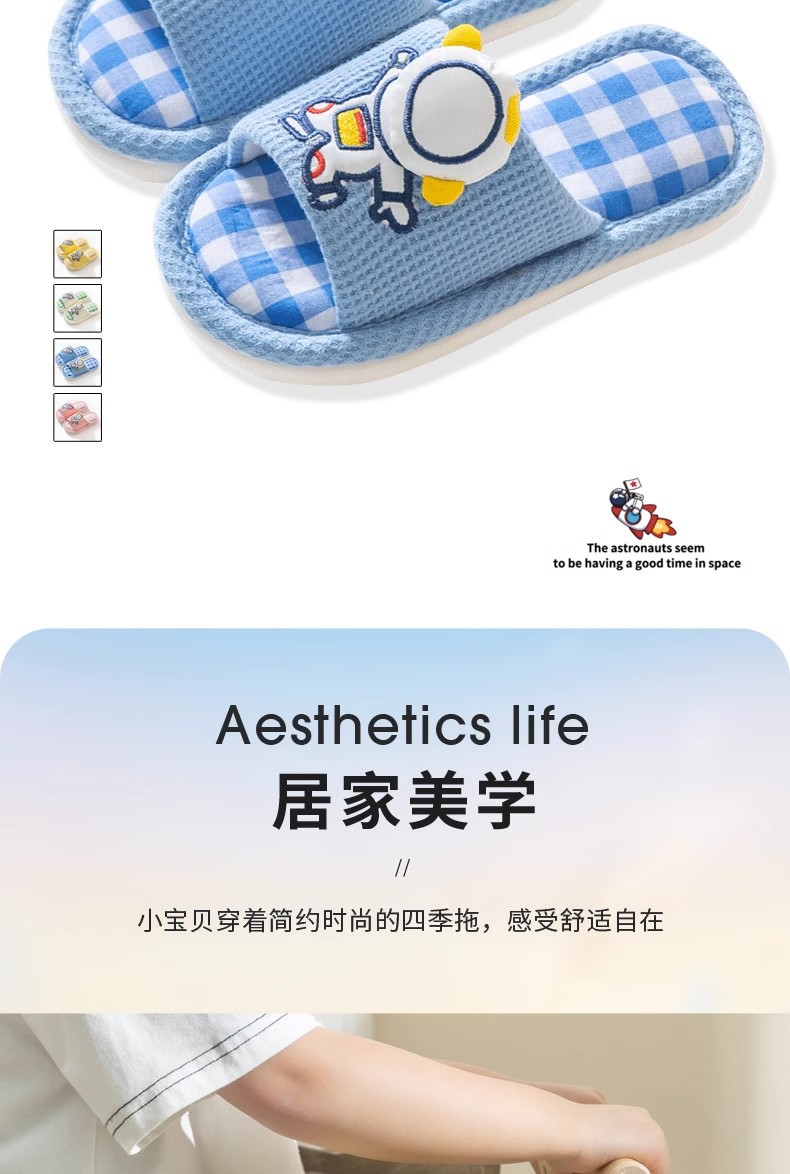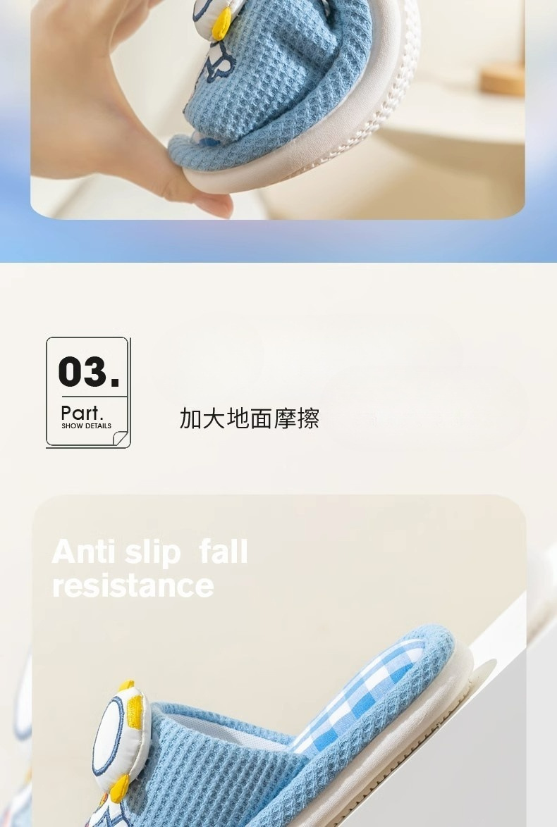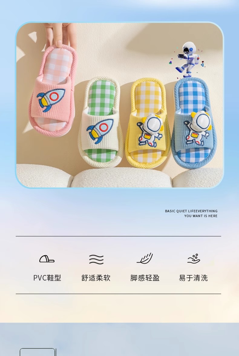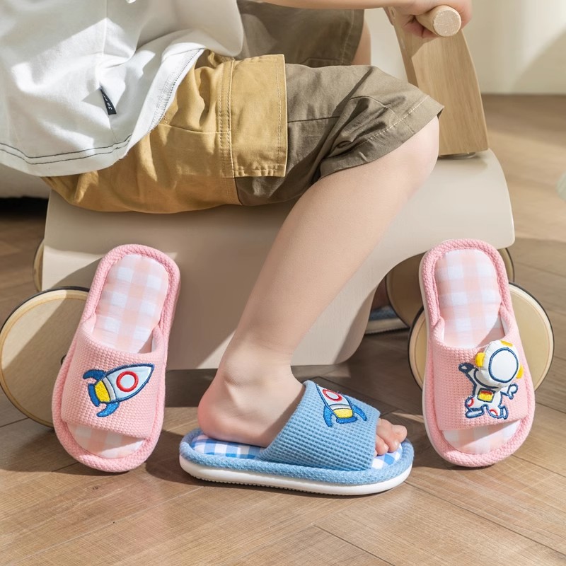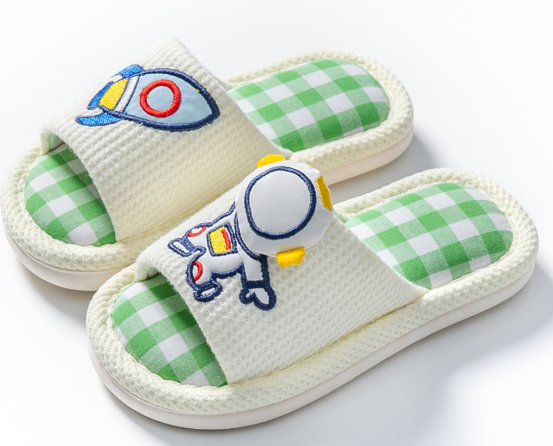 鑫旺卡通亚麻拖鞋儿童四季居家木地板家用静音棉麻布吸汗拖鞋披发