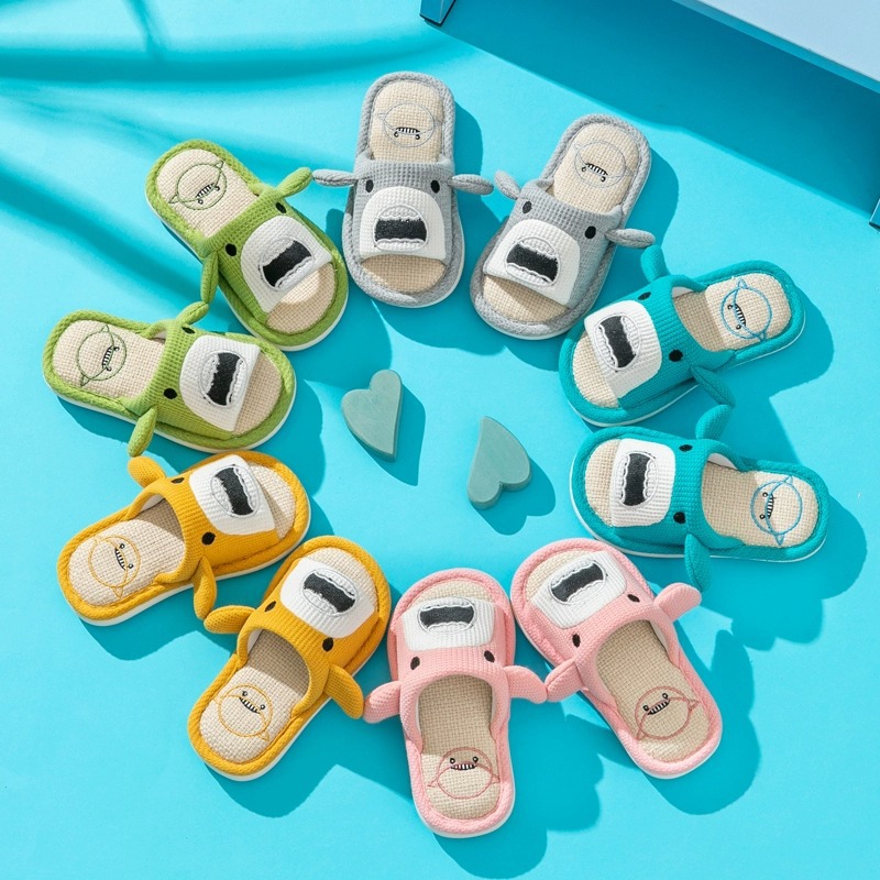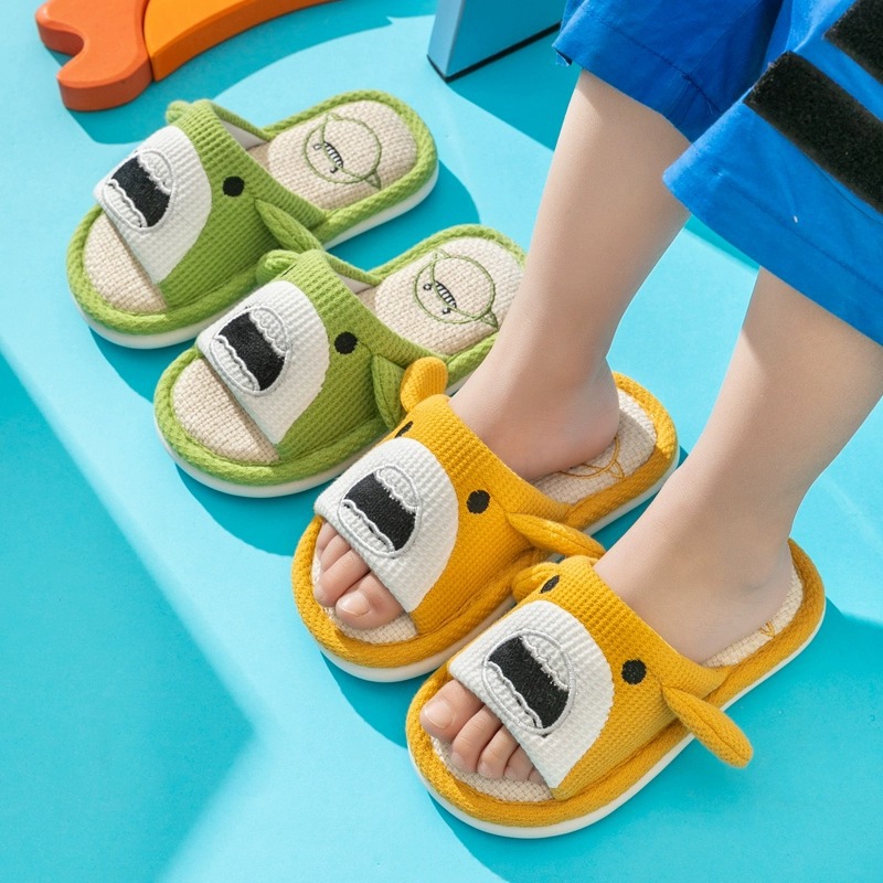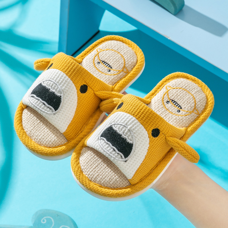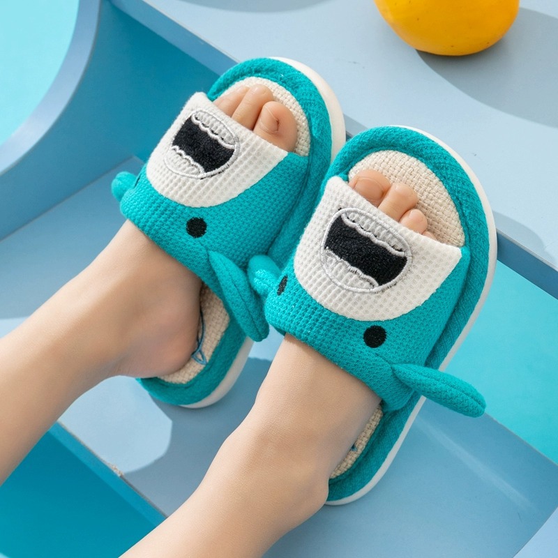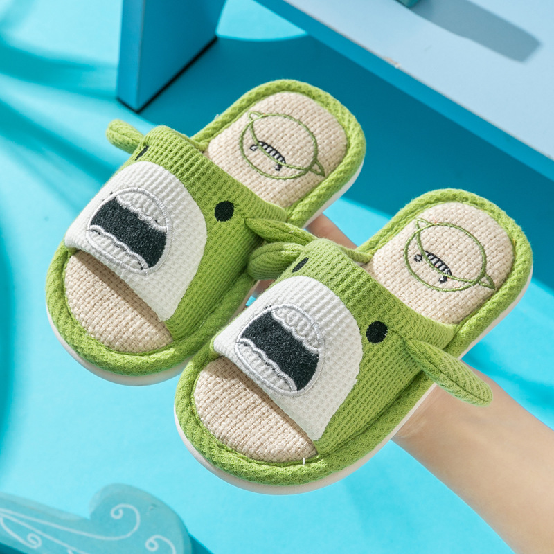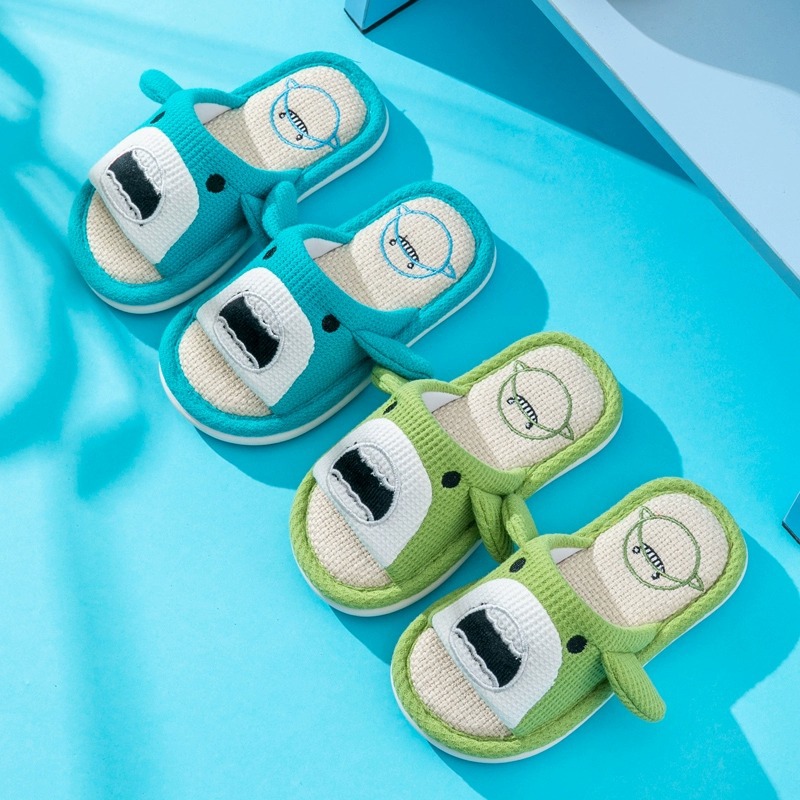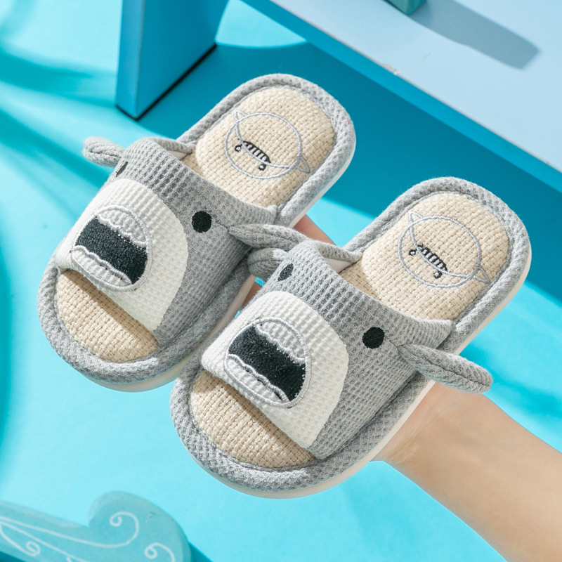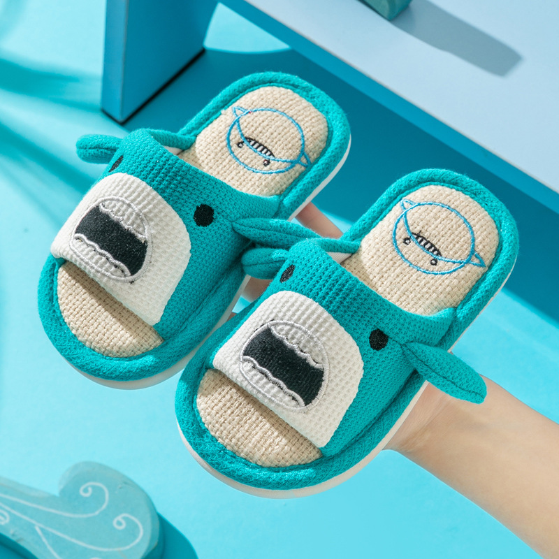 鲨鱼儿童拖鞋亚麻春秋四季家用男童女童卡通夏季室内小孩拖鞋批发