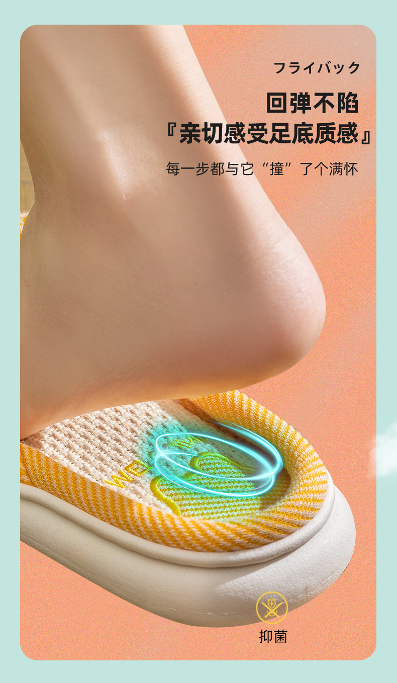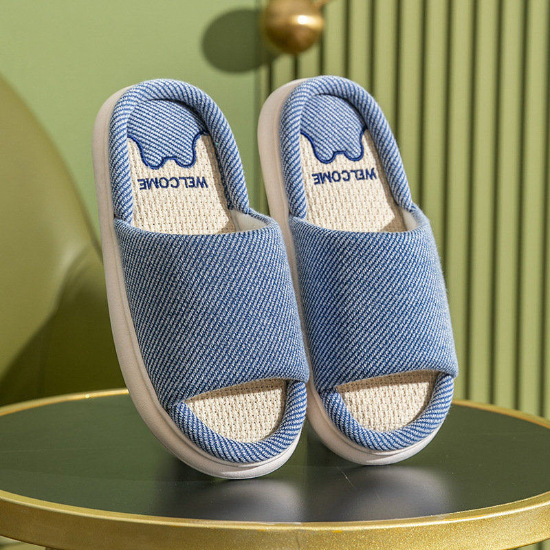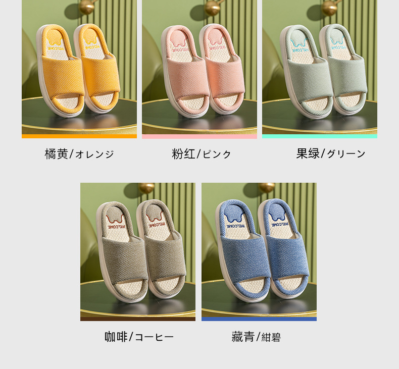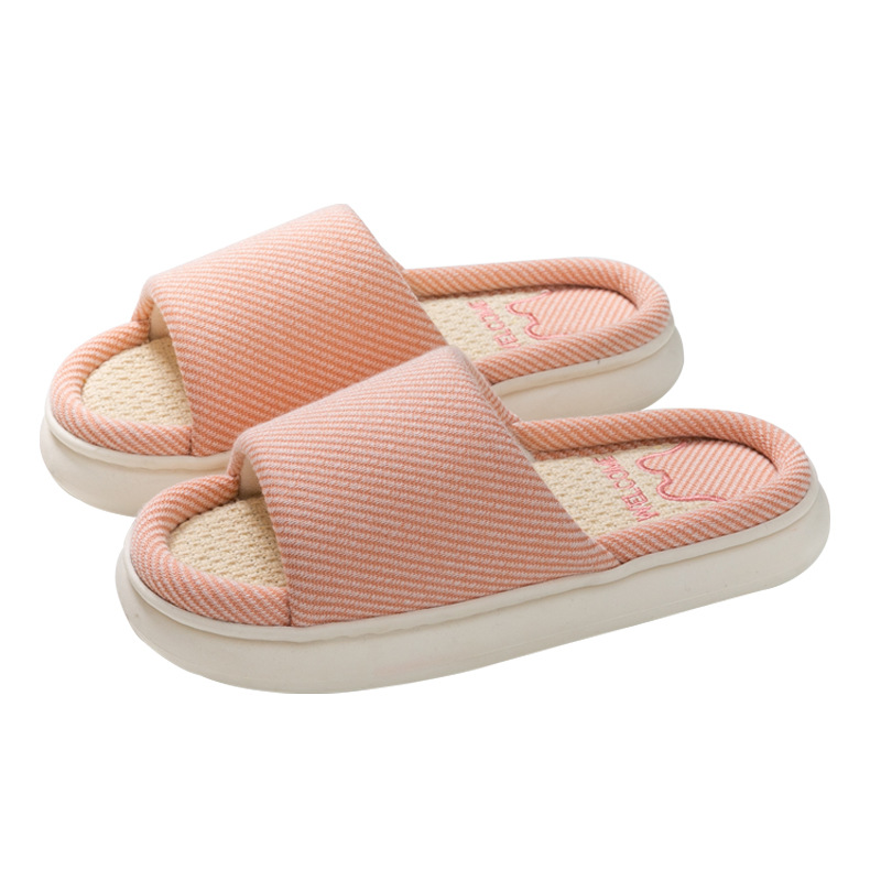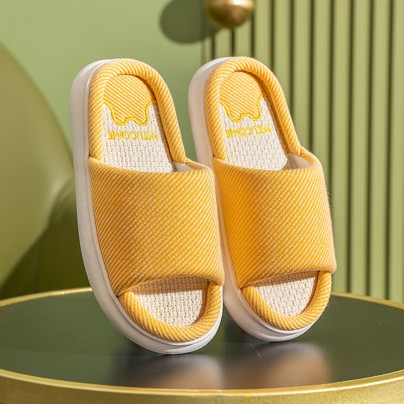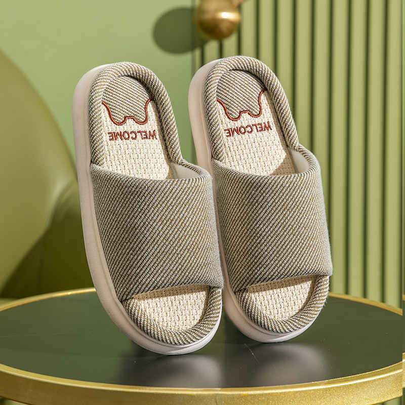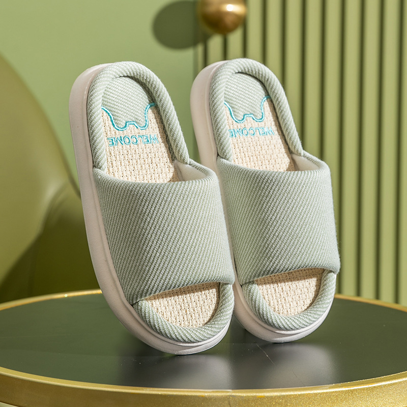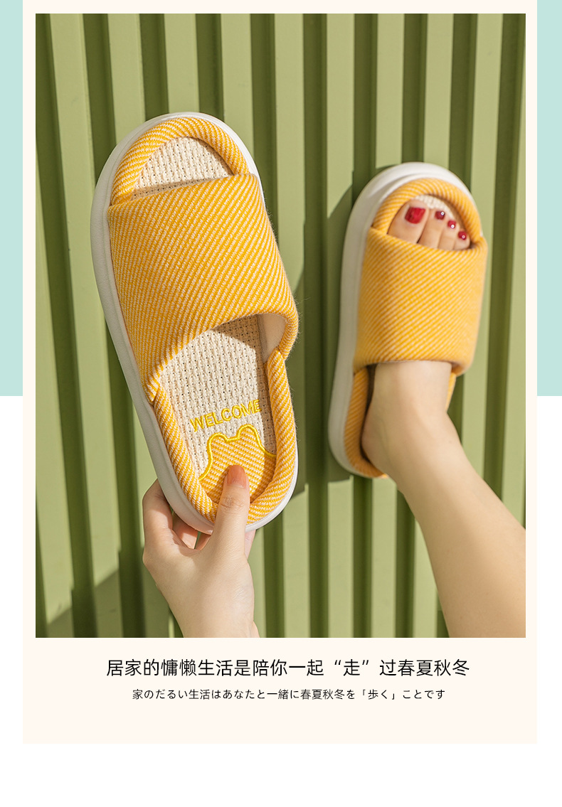 慈溪春秋简约四季亚麻拖鞋女夏情侣厚底家居木地板静音拖鞋男