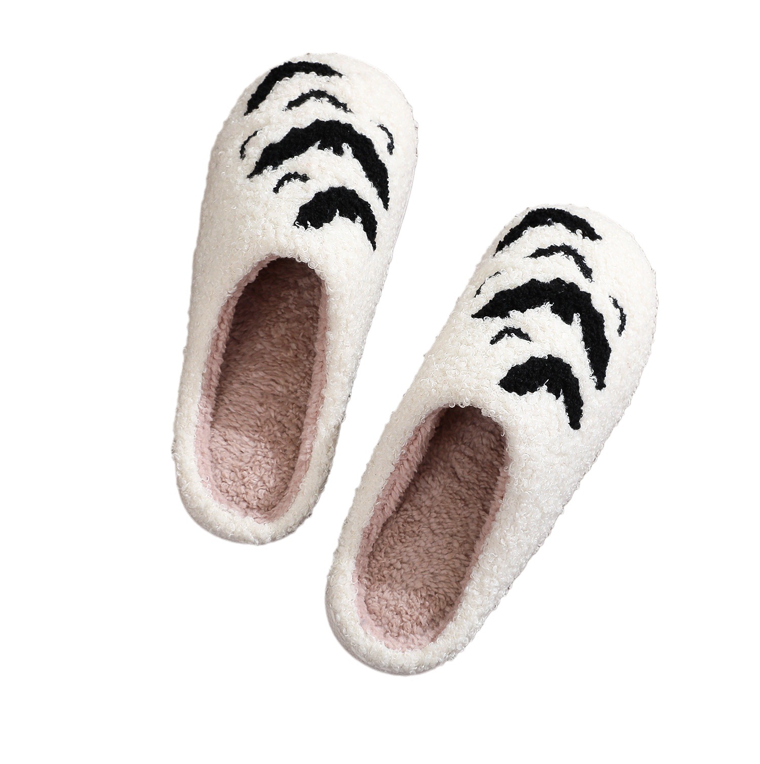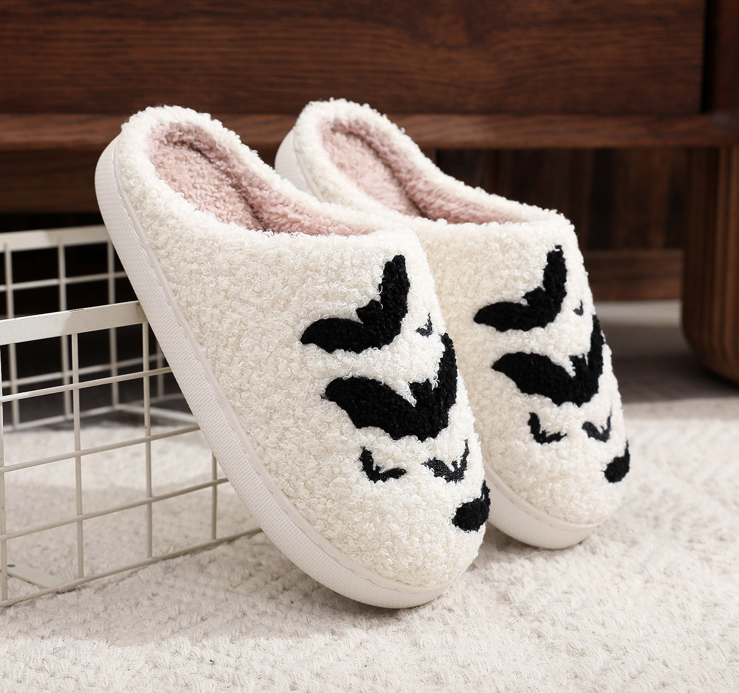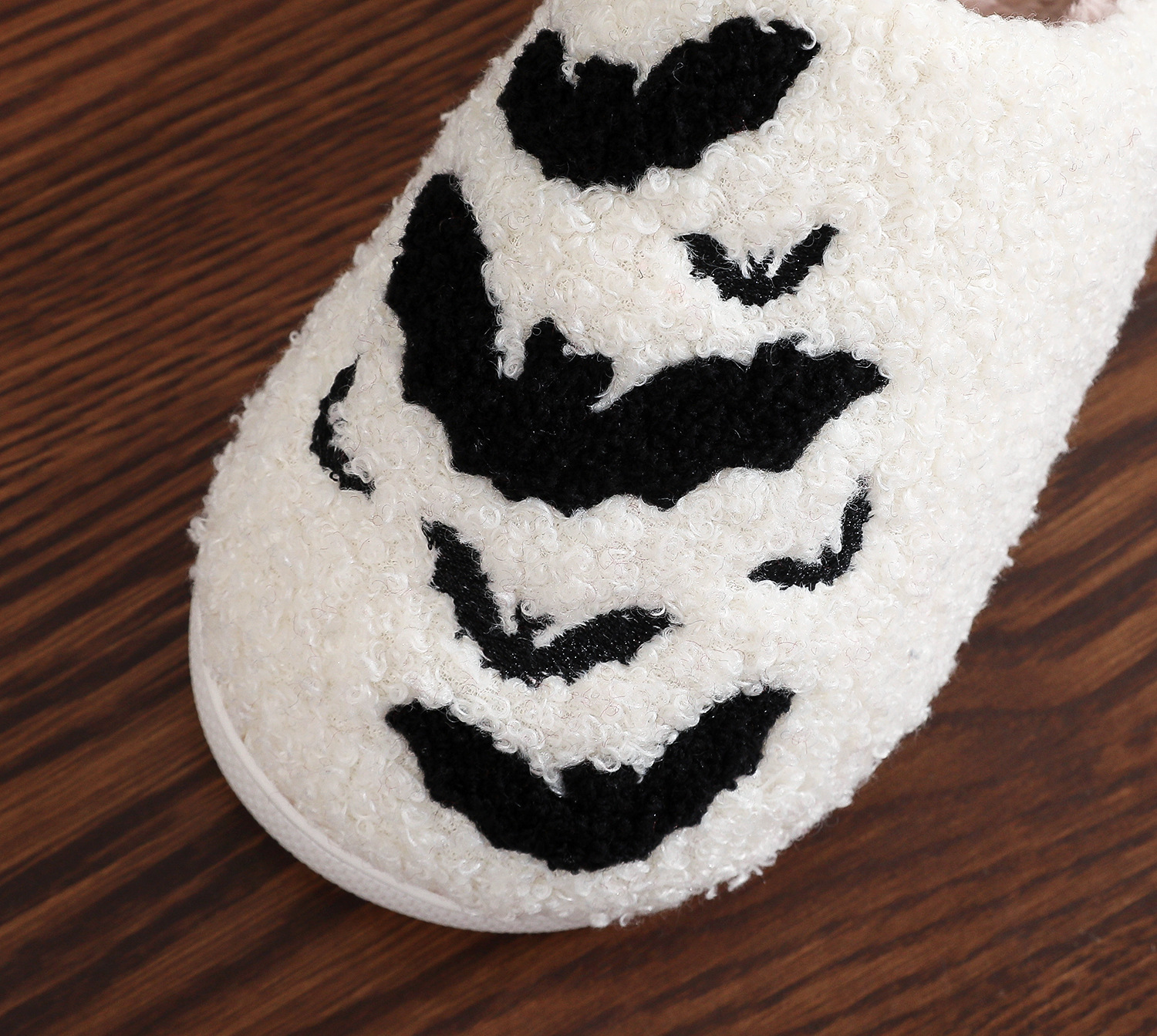 欧美万圣节蝙蝠刺绣棉拖鞋男女自建站独立站热卖毛绒情侣家居拖鞋