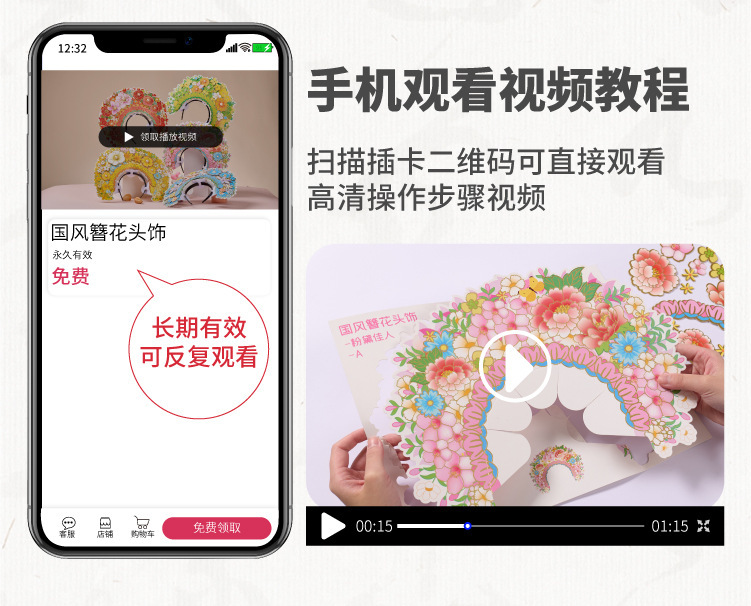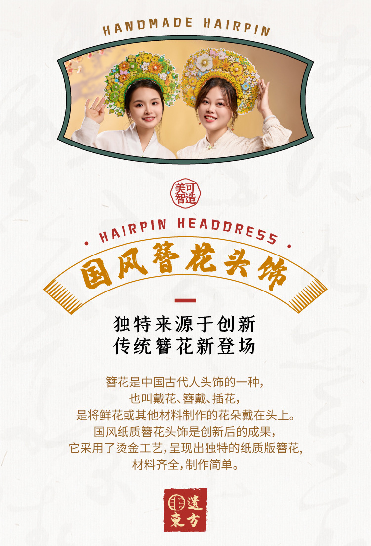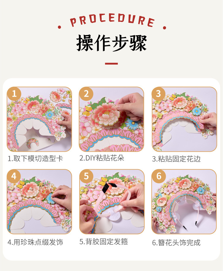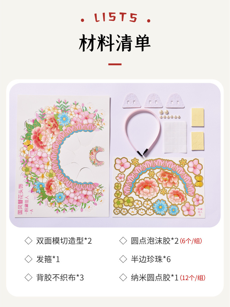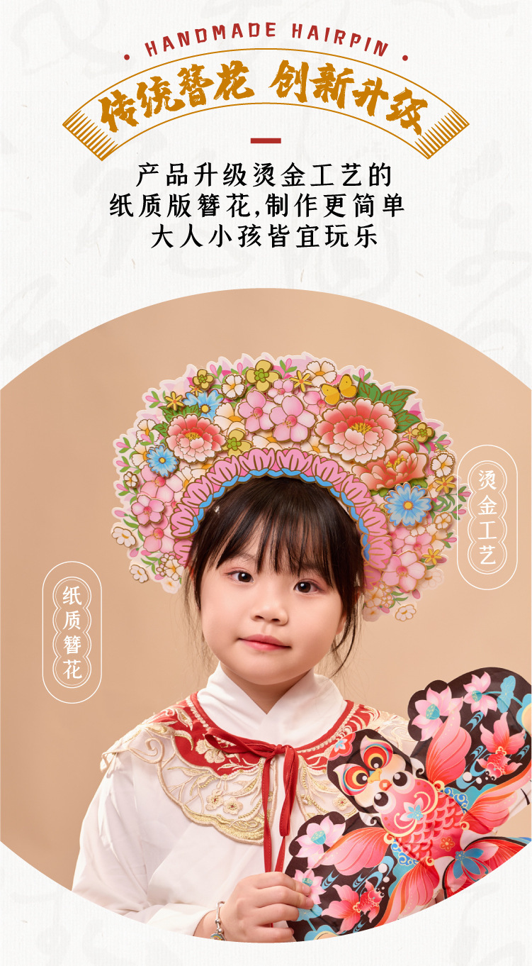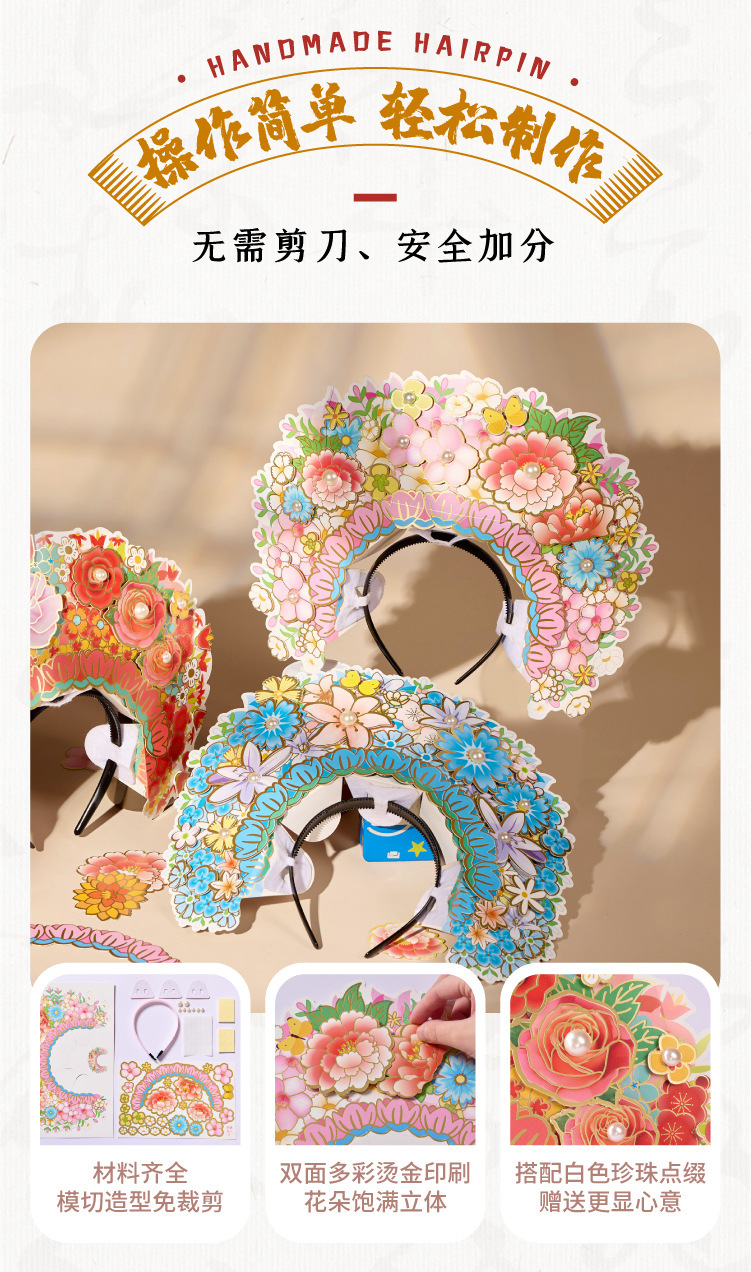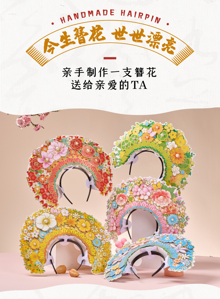 教师节礼物国风簪花头饰diy儿童制作材料包幼儿园头饰非遗装饰