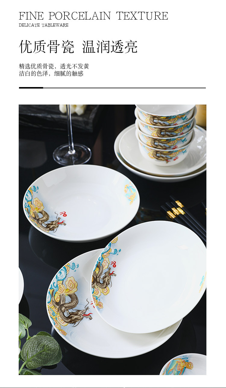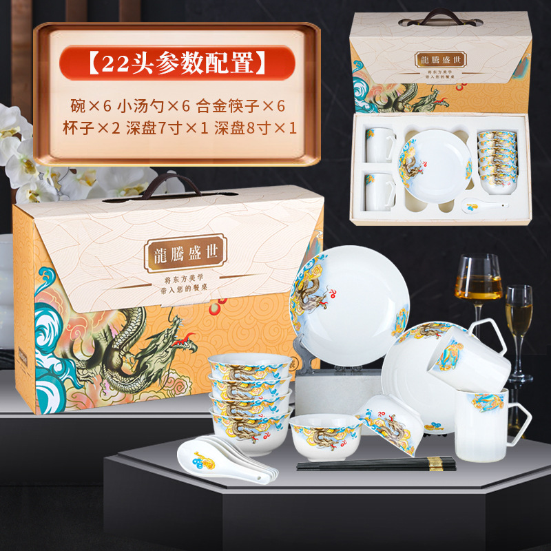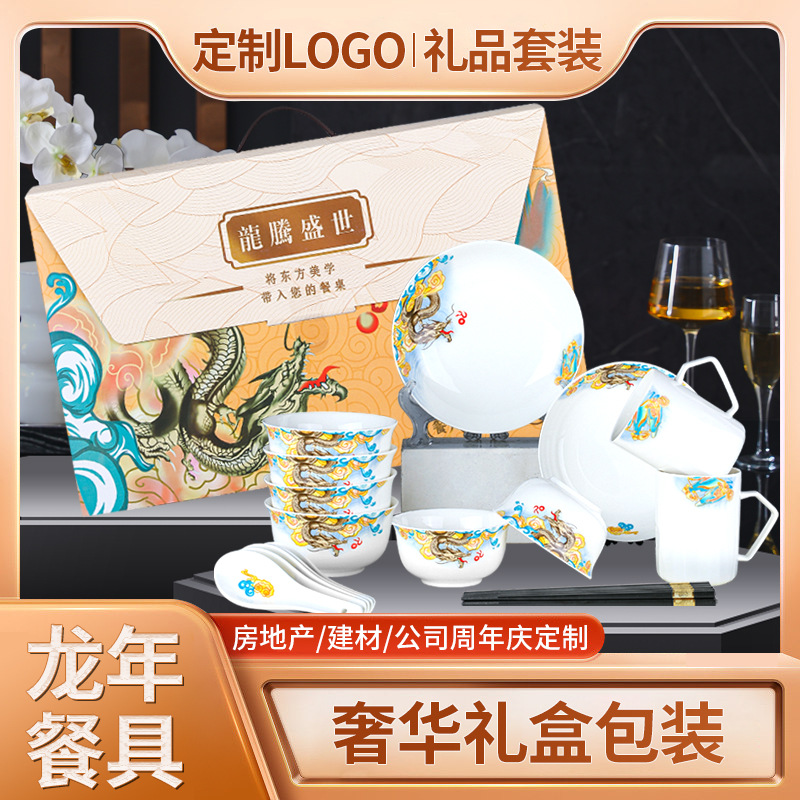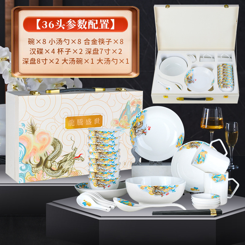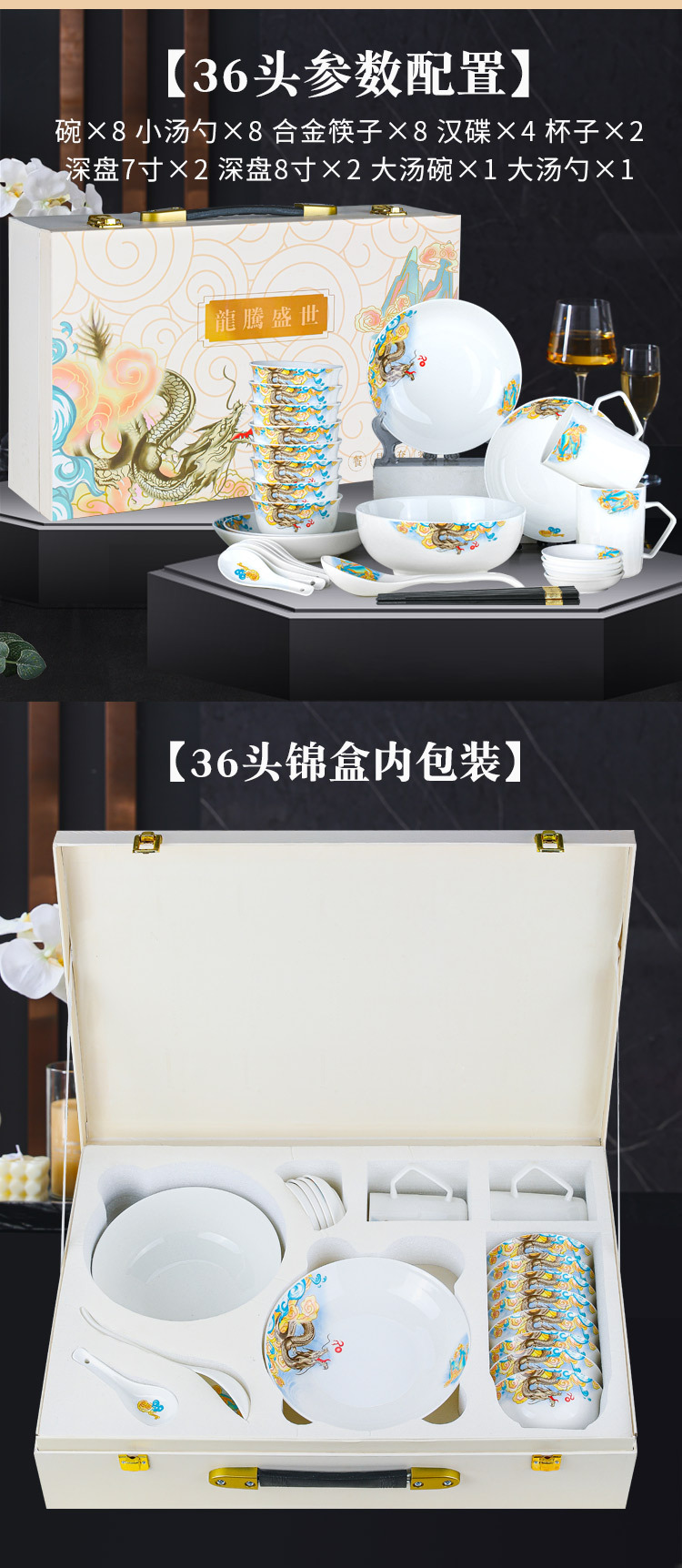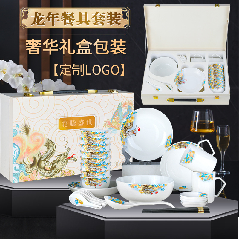 36头骨瓷碗盘碟套装礼盒装龙年礼品陶瓷餐具定logo印字图案年货