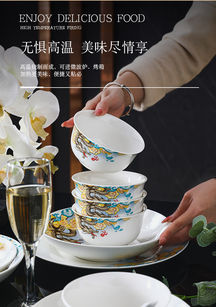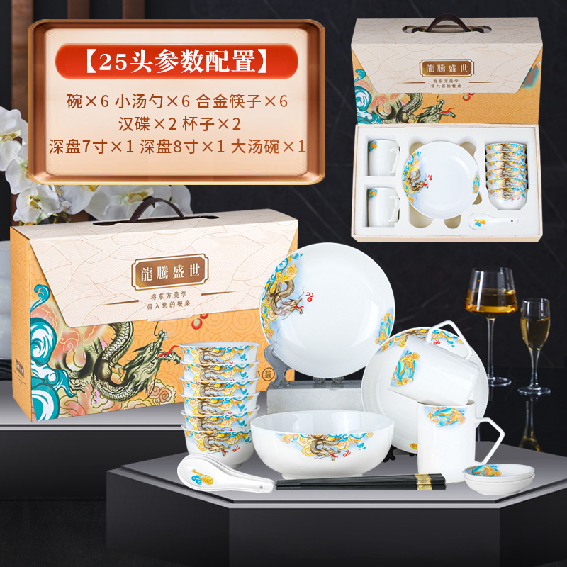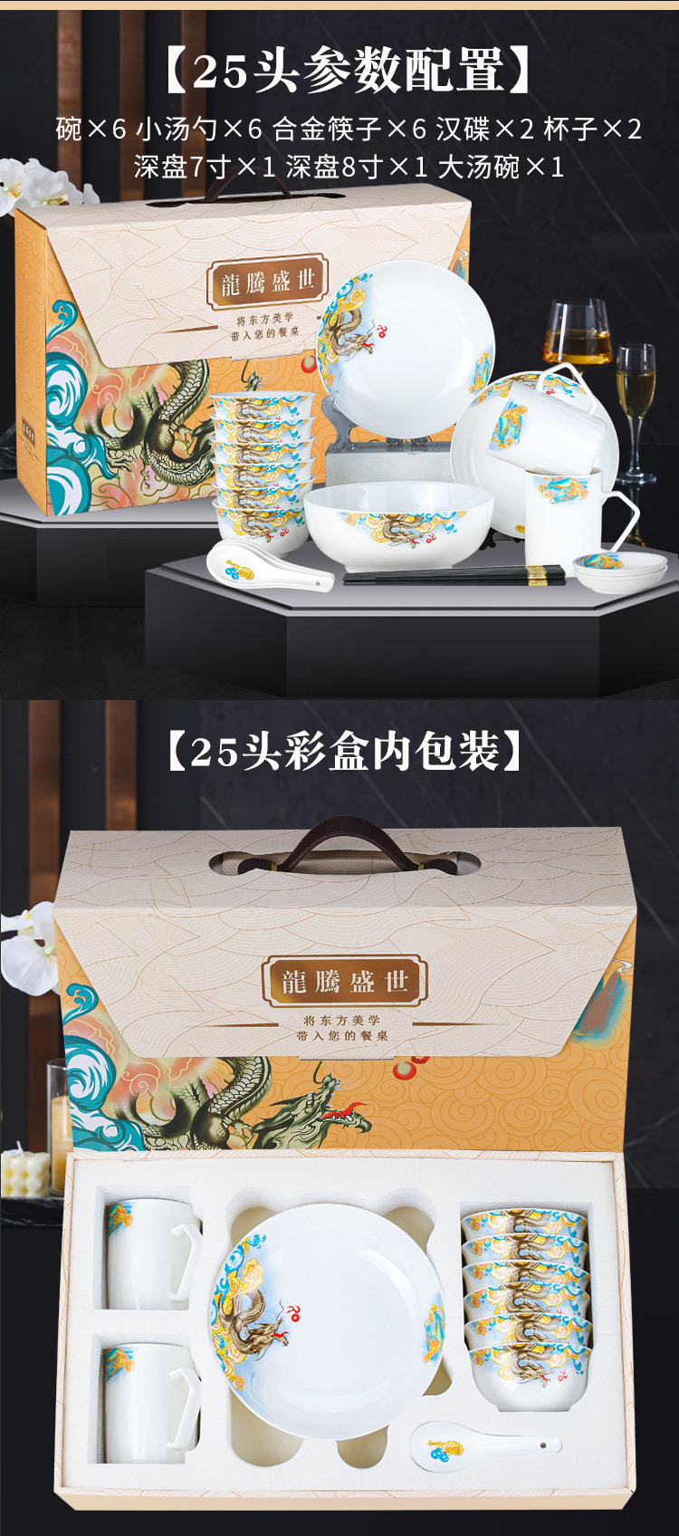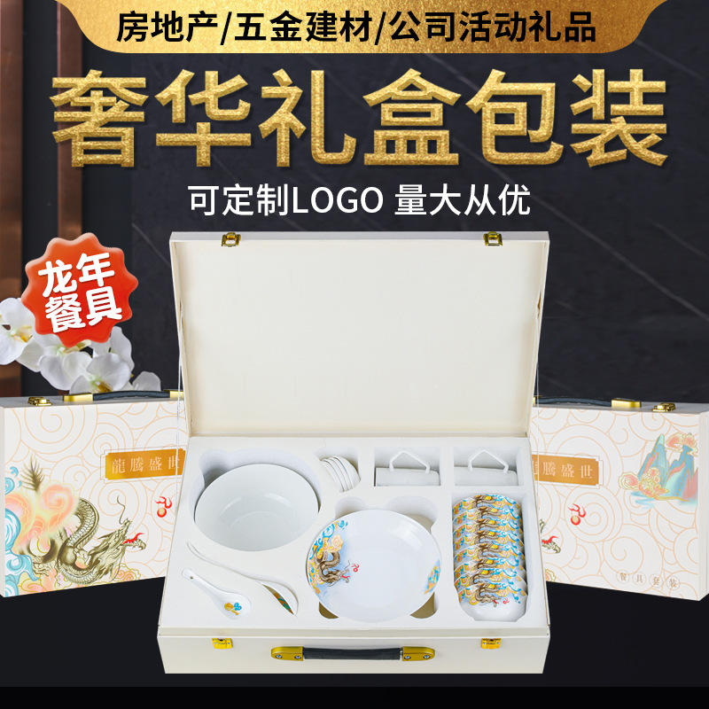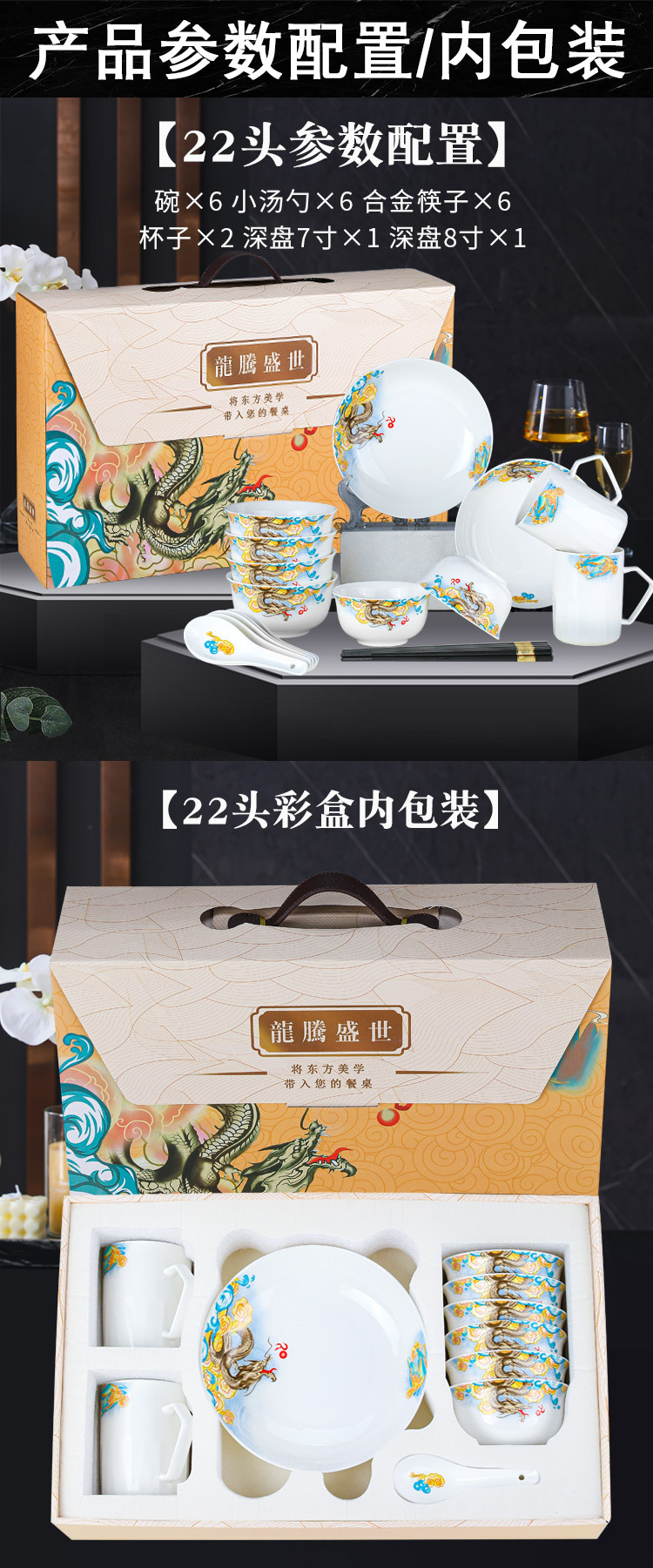 36头骨瓷碗盘碟套装礼盒装龙年礼品陶瓷餐具定logo印字图案年货