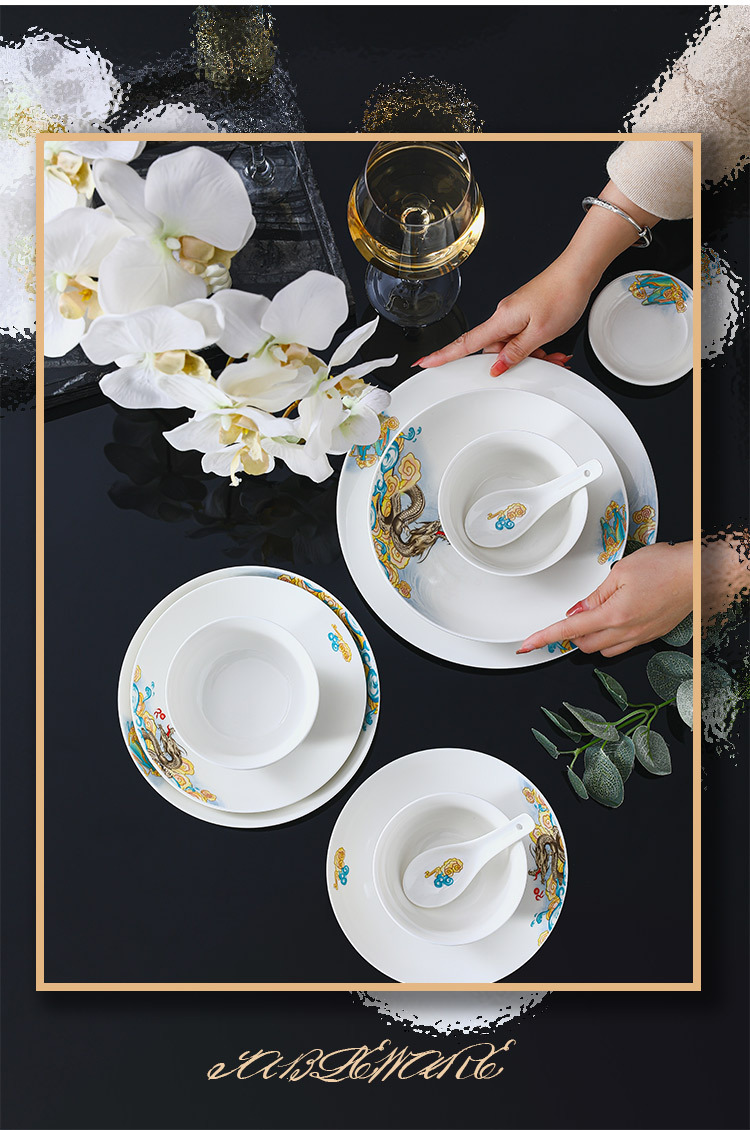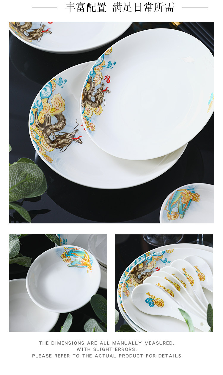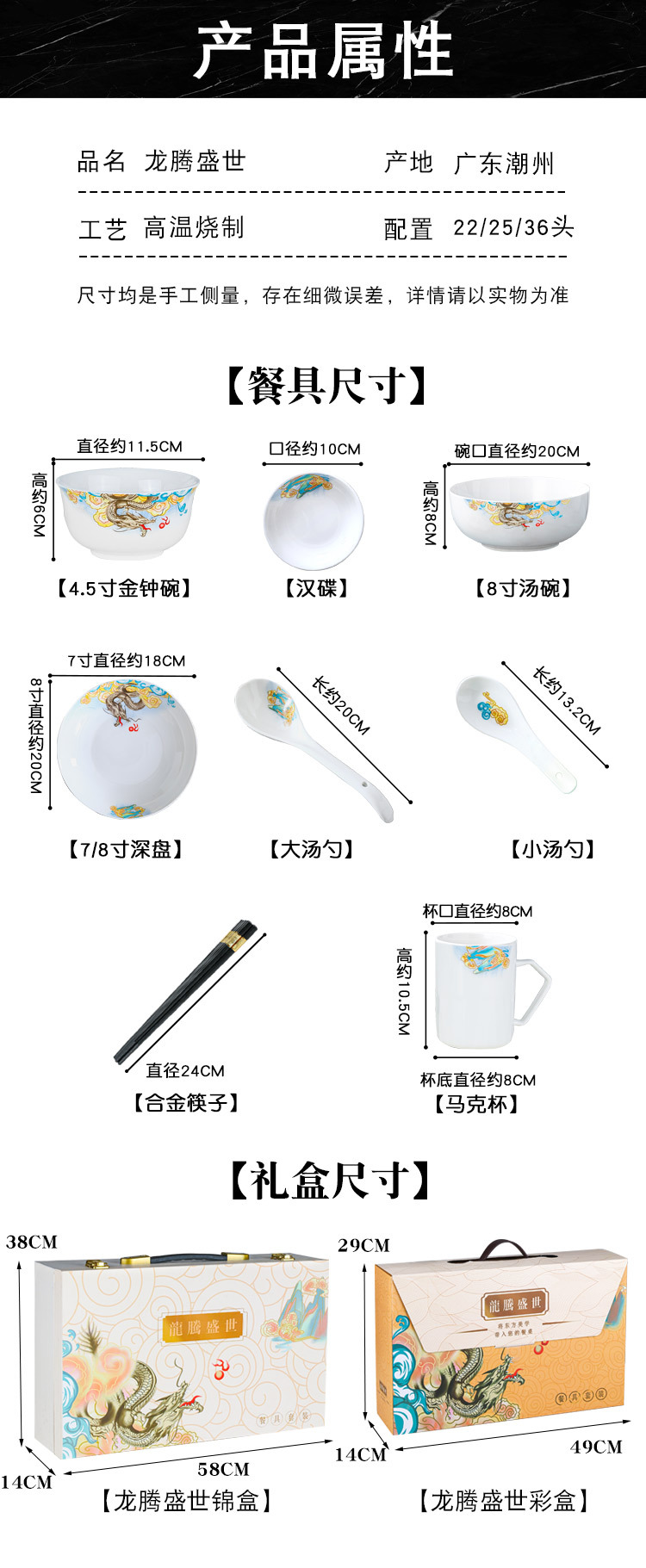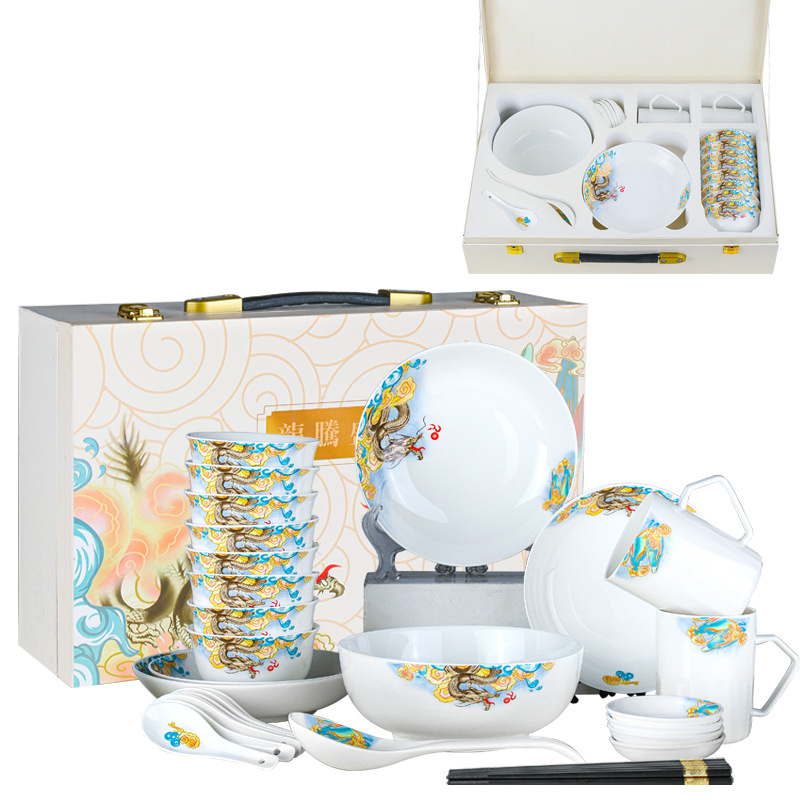 36 pieces bone china bowl dish & plate package gift box dragon year gift ceramic tableware customized logo printing pattern new year goods