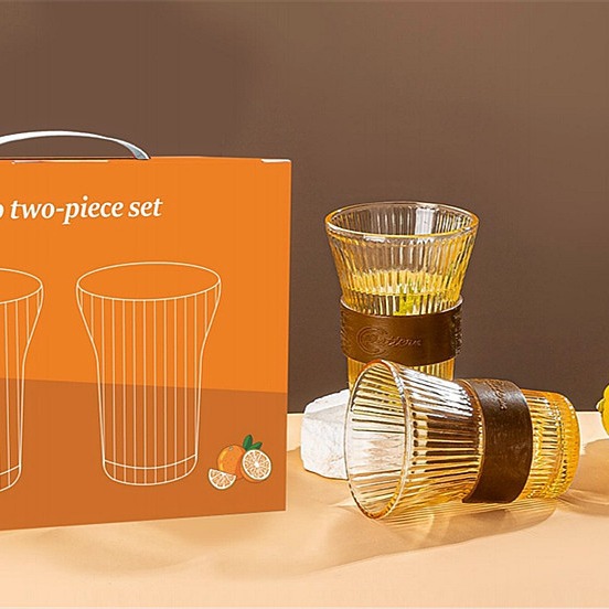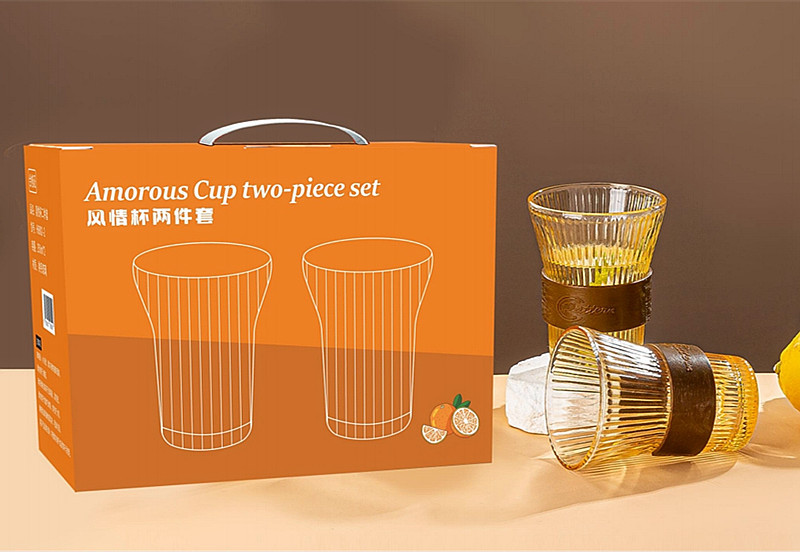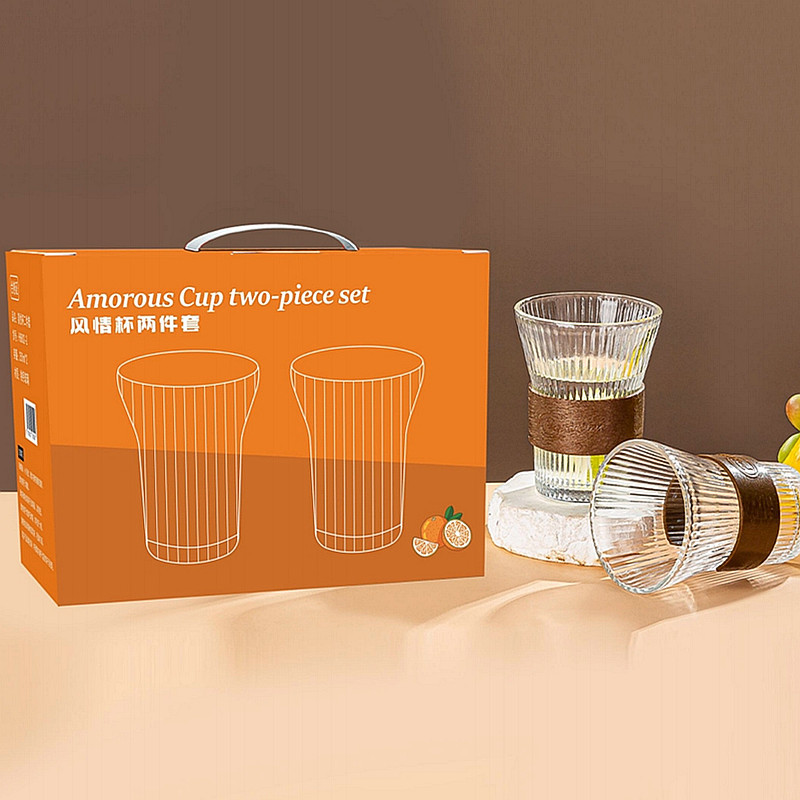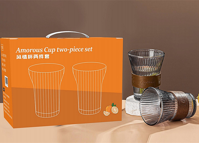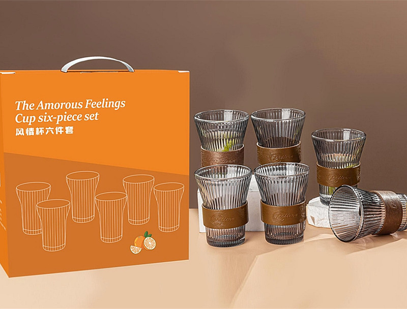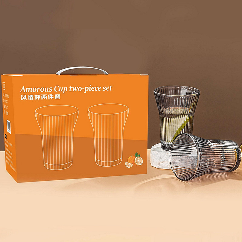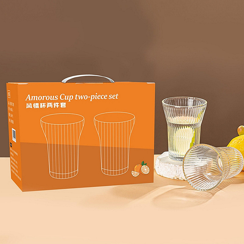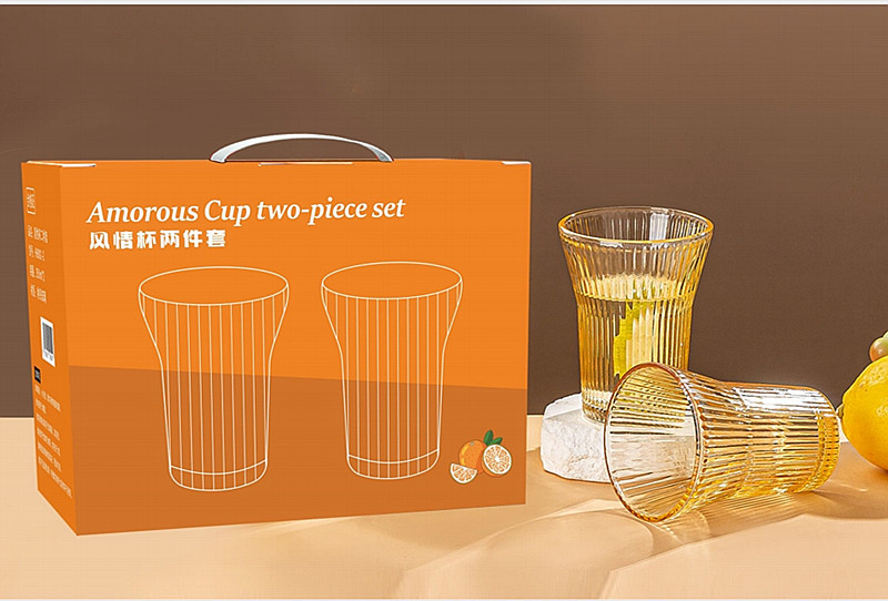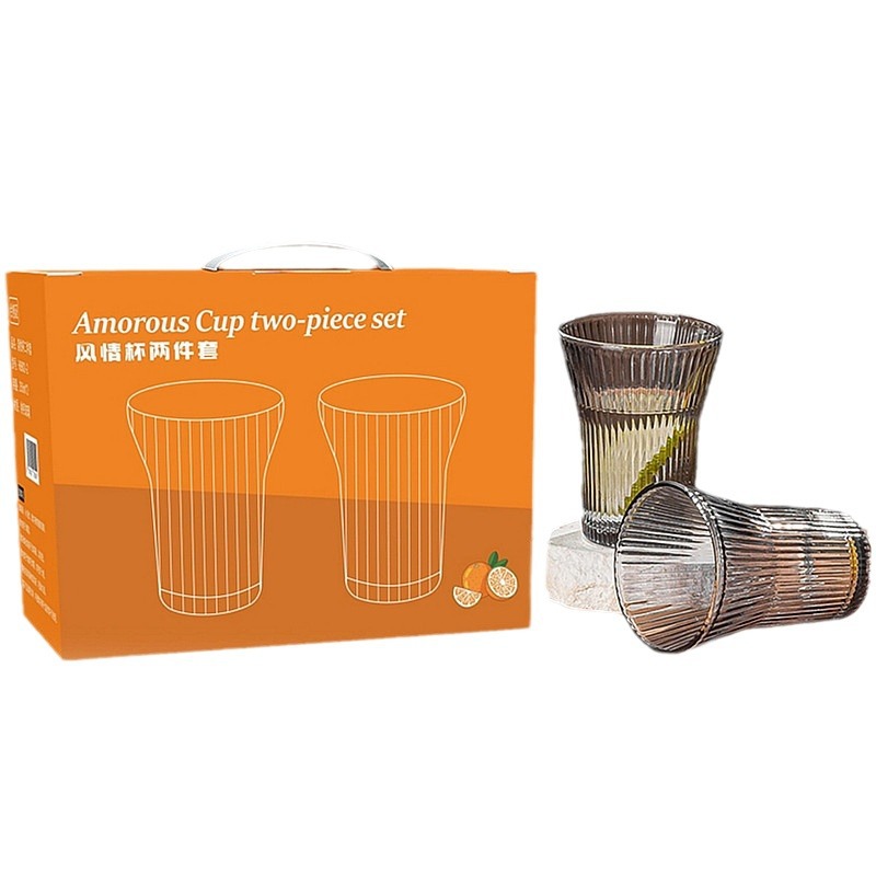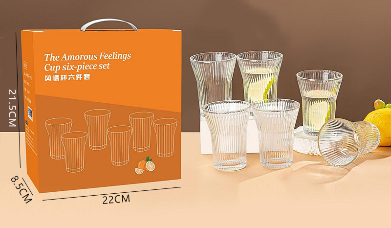 透明竖纹玻璃杯六件套家用果汁水杯6只装风情杯两件套装 促销礼品