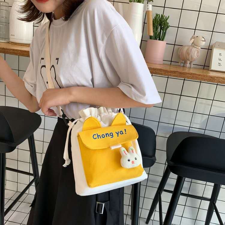 韩版可爱少女学生斜挎包女小包包 日系原宿字母印花软妹帆布包